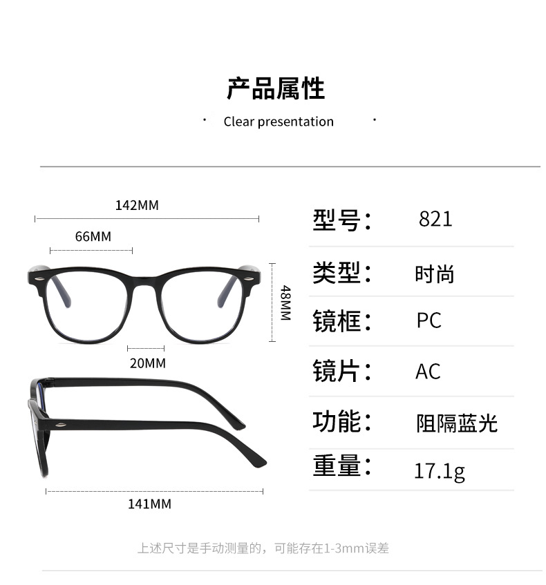 • 밝은 검정색 프레임 안티블루라이트