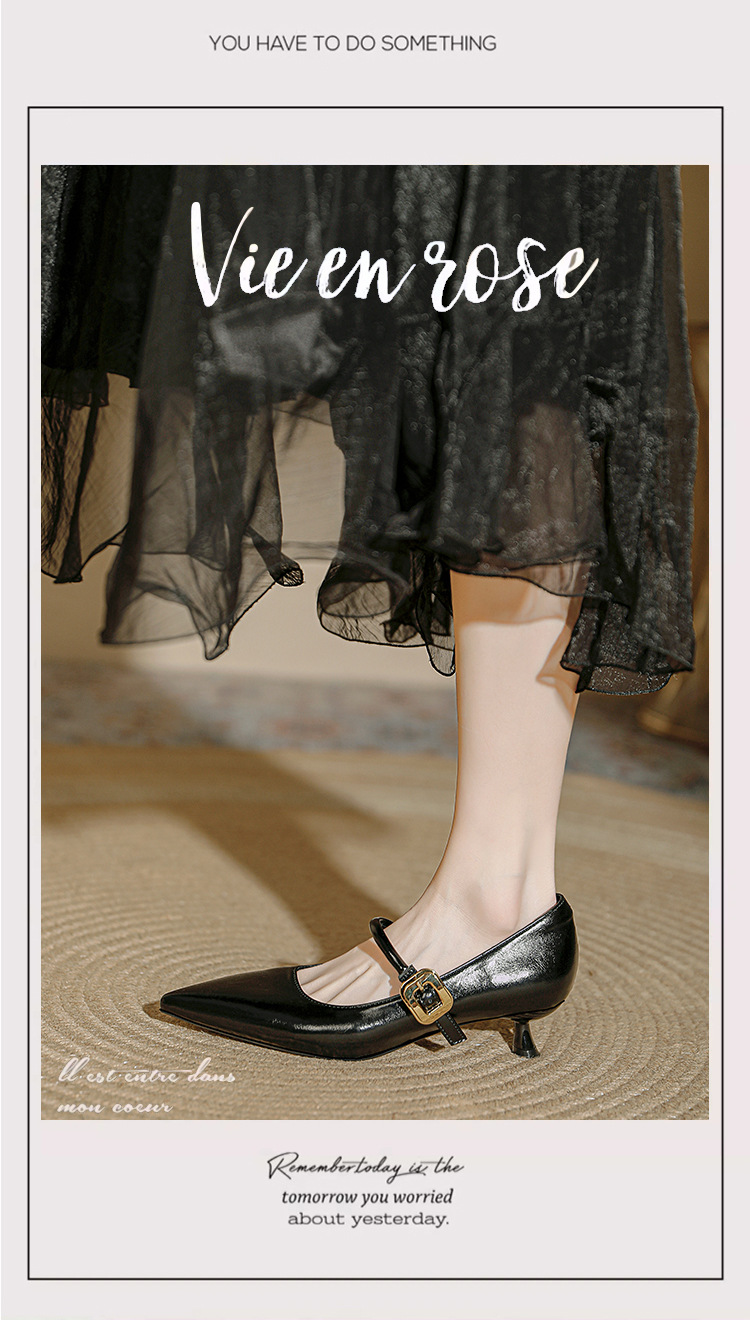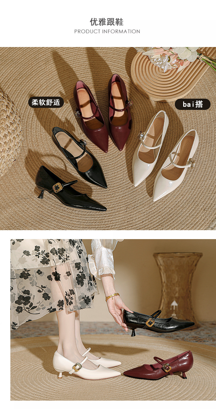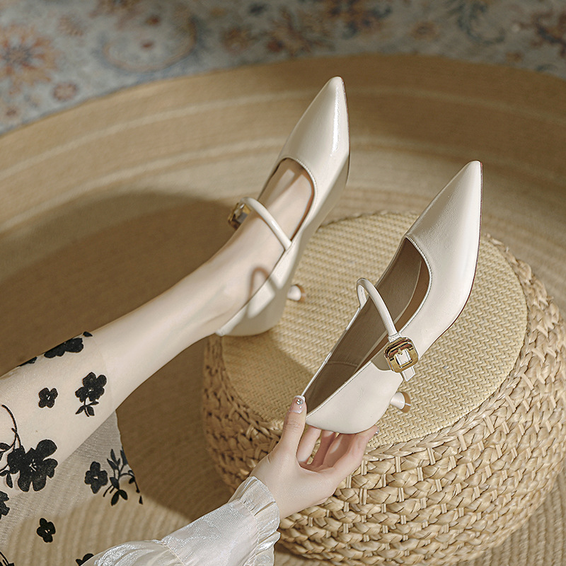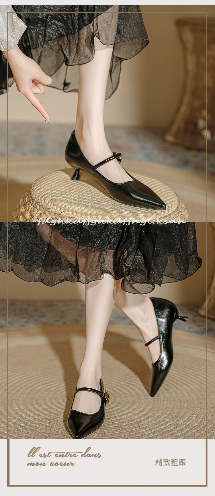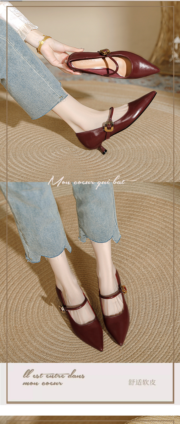 뾰족한 발가락 레트로 싱글 레이어 신발 여성 미드 힐 2024 새로운 도착 하이힐 스틸레토 힐 소프트 가죽 프렌치 스타일 메리 제인 여성 신발스토어 가기