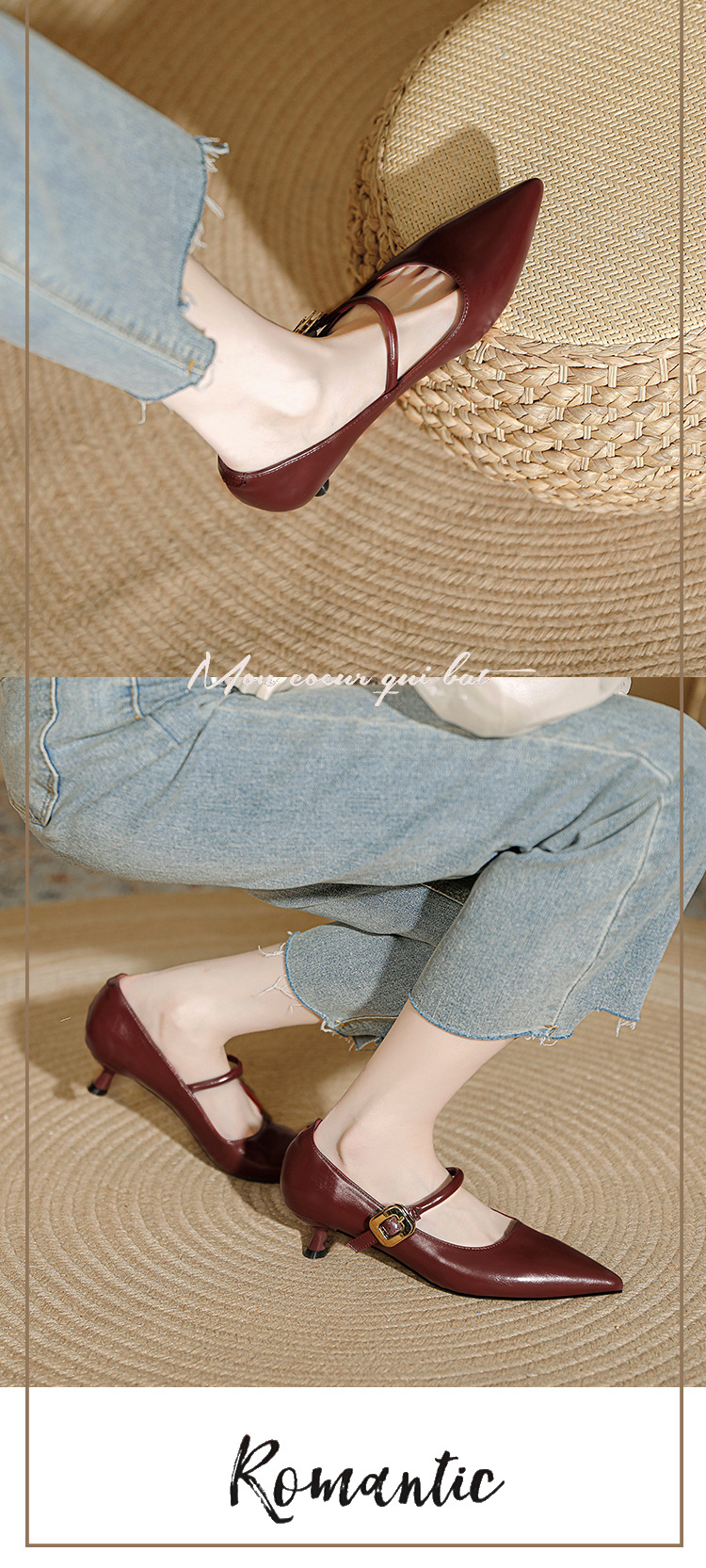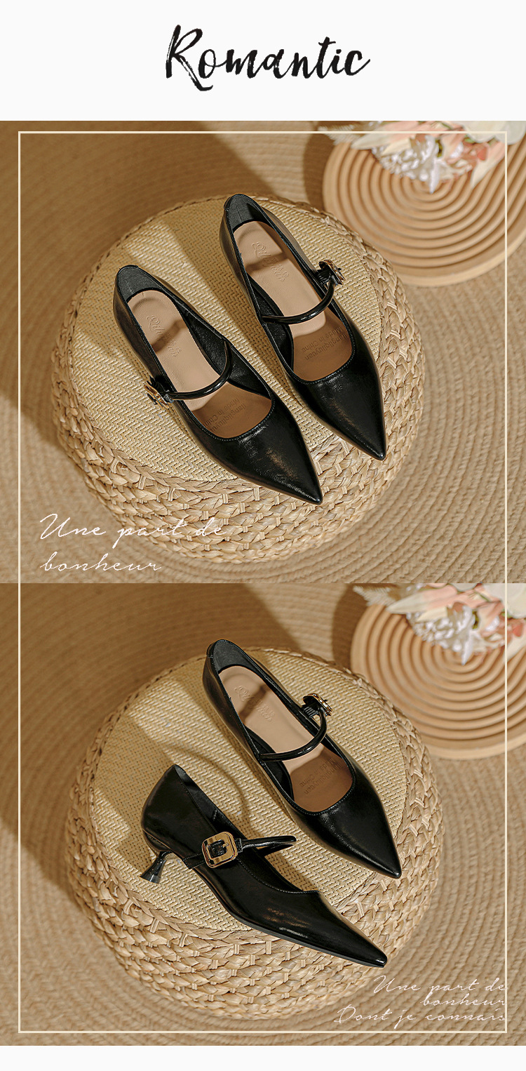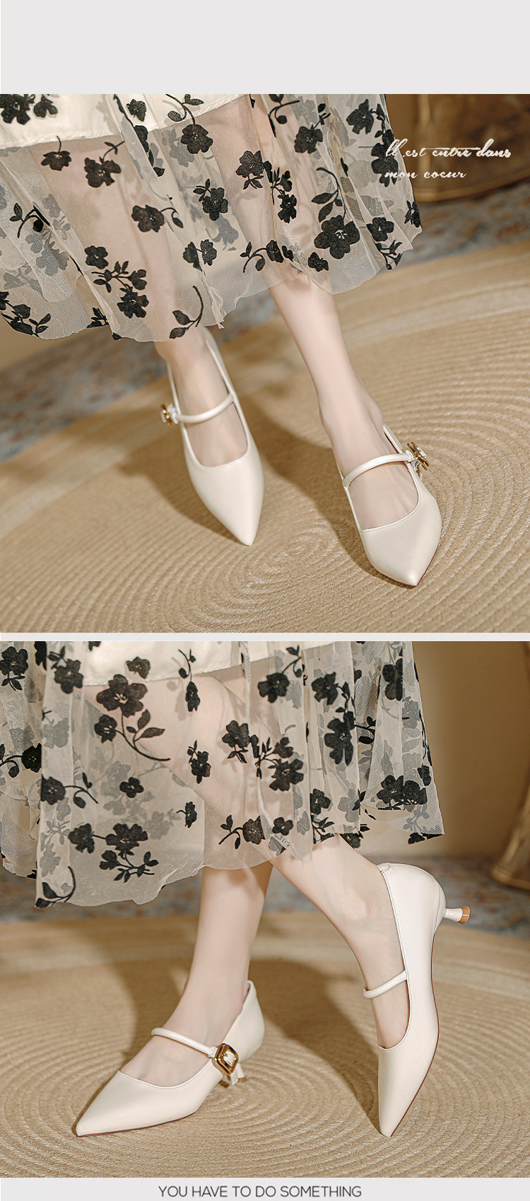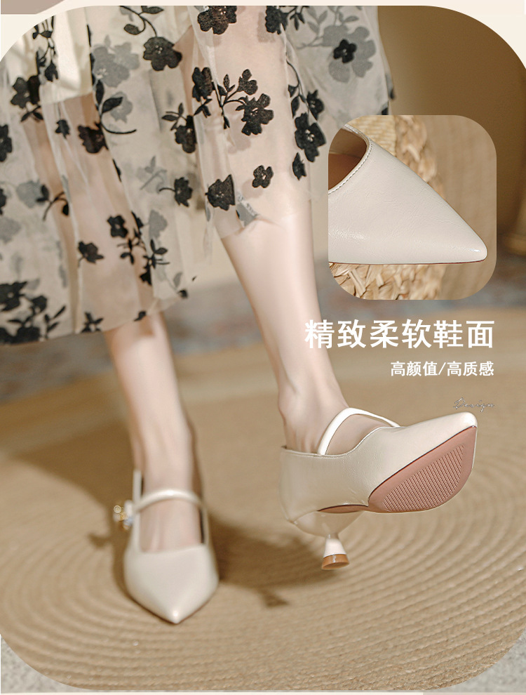 뾰족한 발가락 레트로 싱글 레이어 신발 여성 미드 힐 2024 새로운 도착 하이힐 스틸레토 힐 소프트 가죽 프렌치 스타일 메리 제인 여성 신발스토어 가기