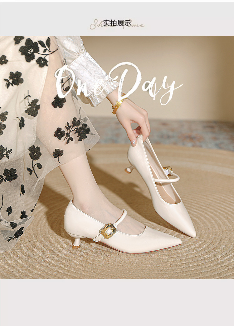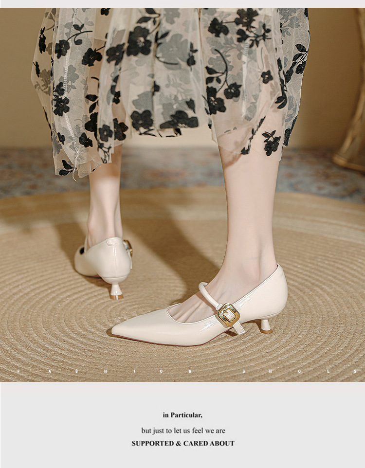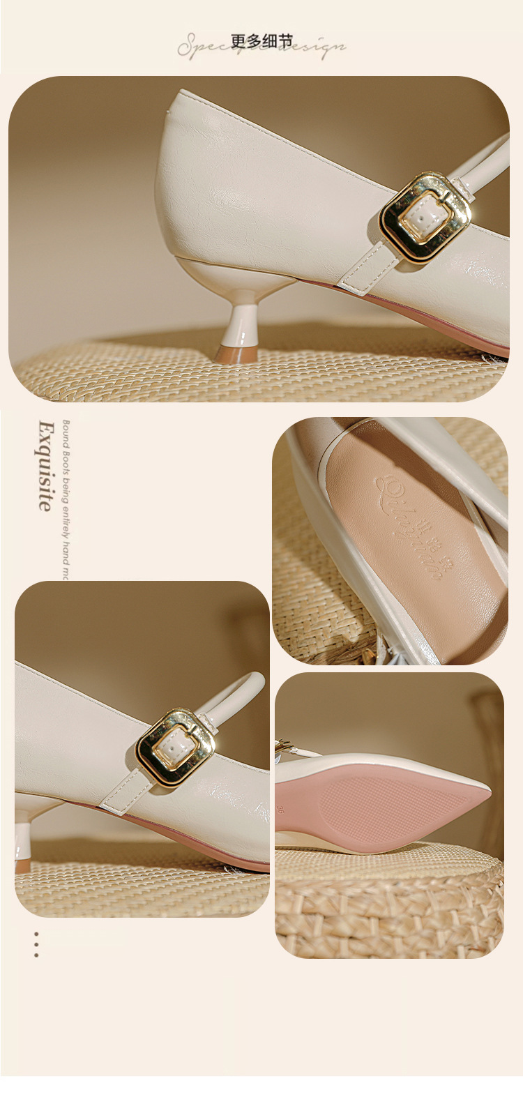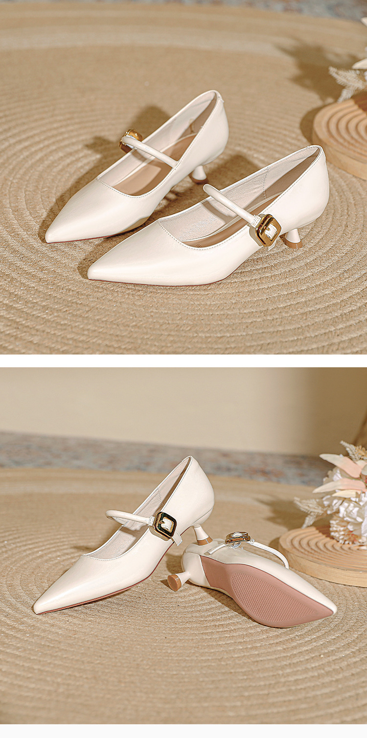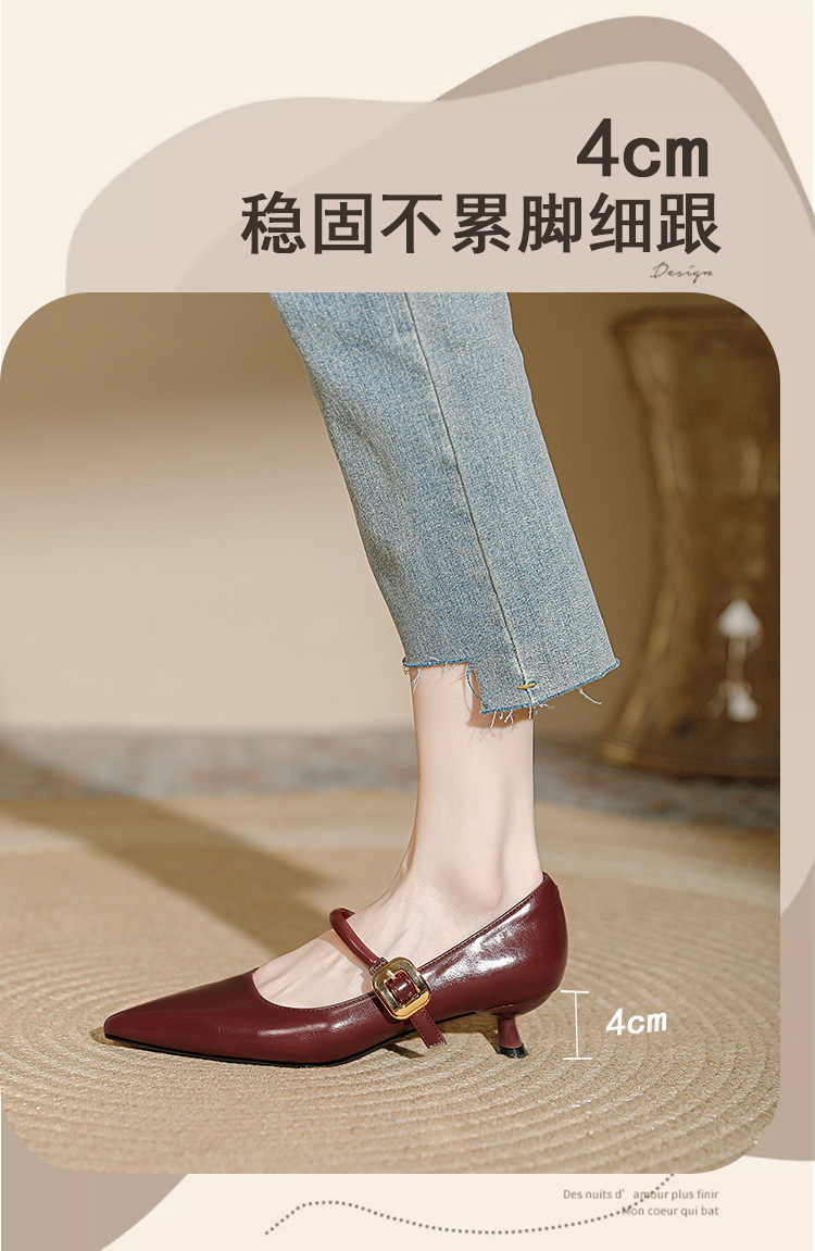 뾰족한 발가락 레트로 싱글 레이어 신발 여성 미드 힐 2024 새로운 도착 하이힐 스틸레토 힐 소프트 가죽 프렌치 스타일 메리 제인 여성 신발스토어 가기