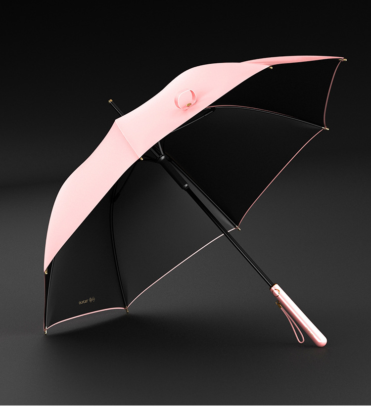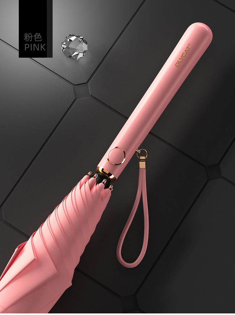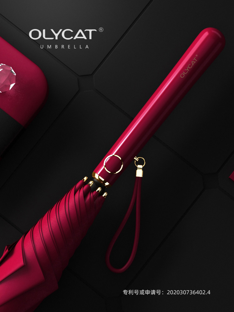 OLYCAT 자동 긴 손잡이 우산 직선 우산 검은 접착제 태양 우산 비 이중 사용 태양 우산 여성 선물 신부 우산