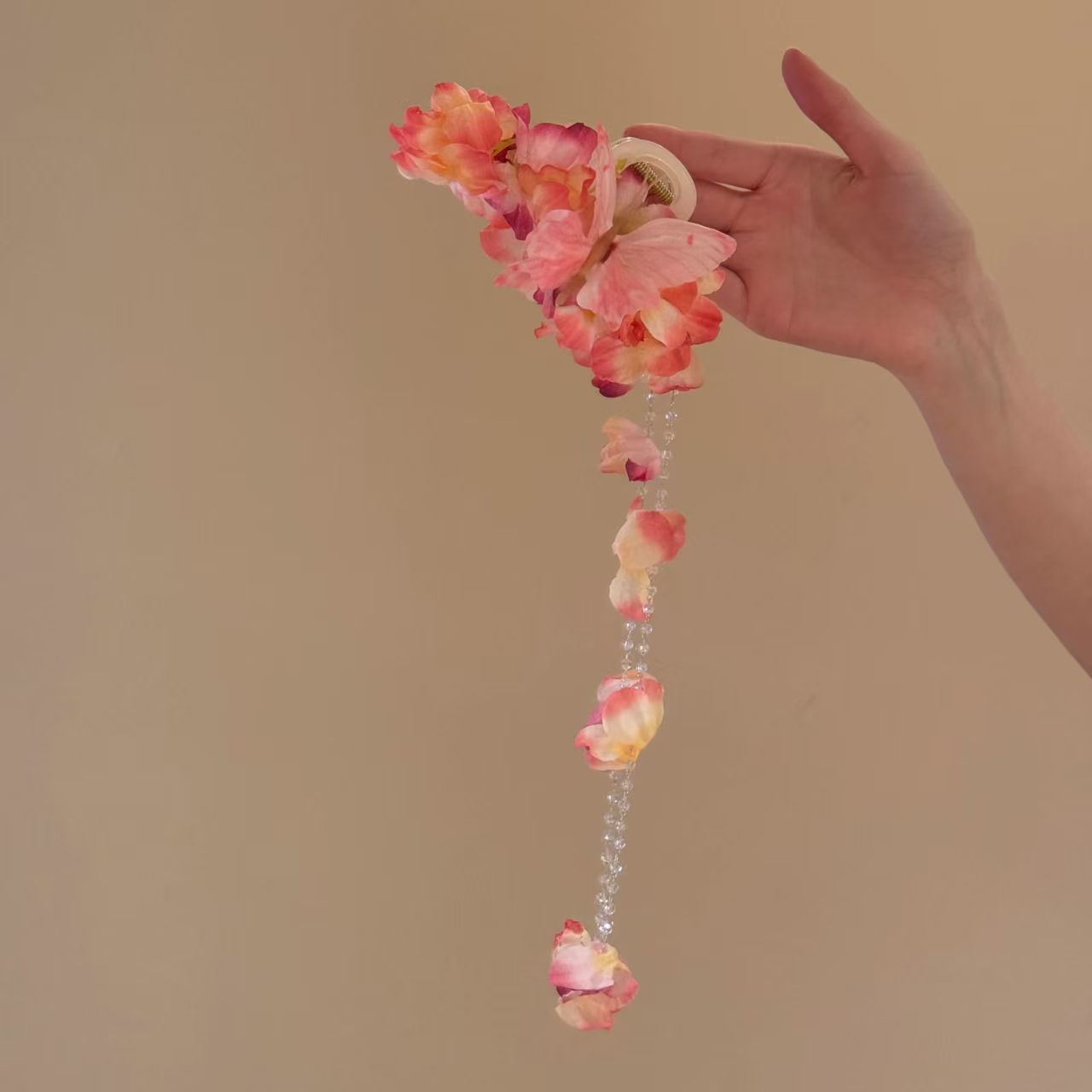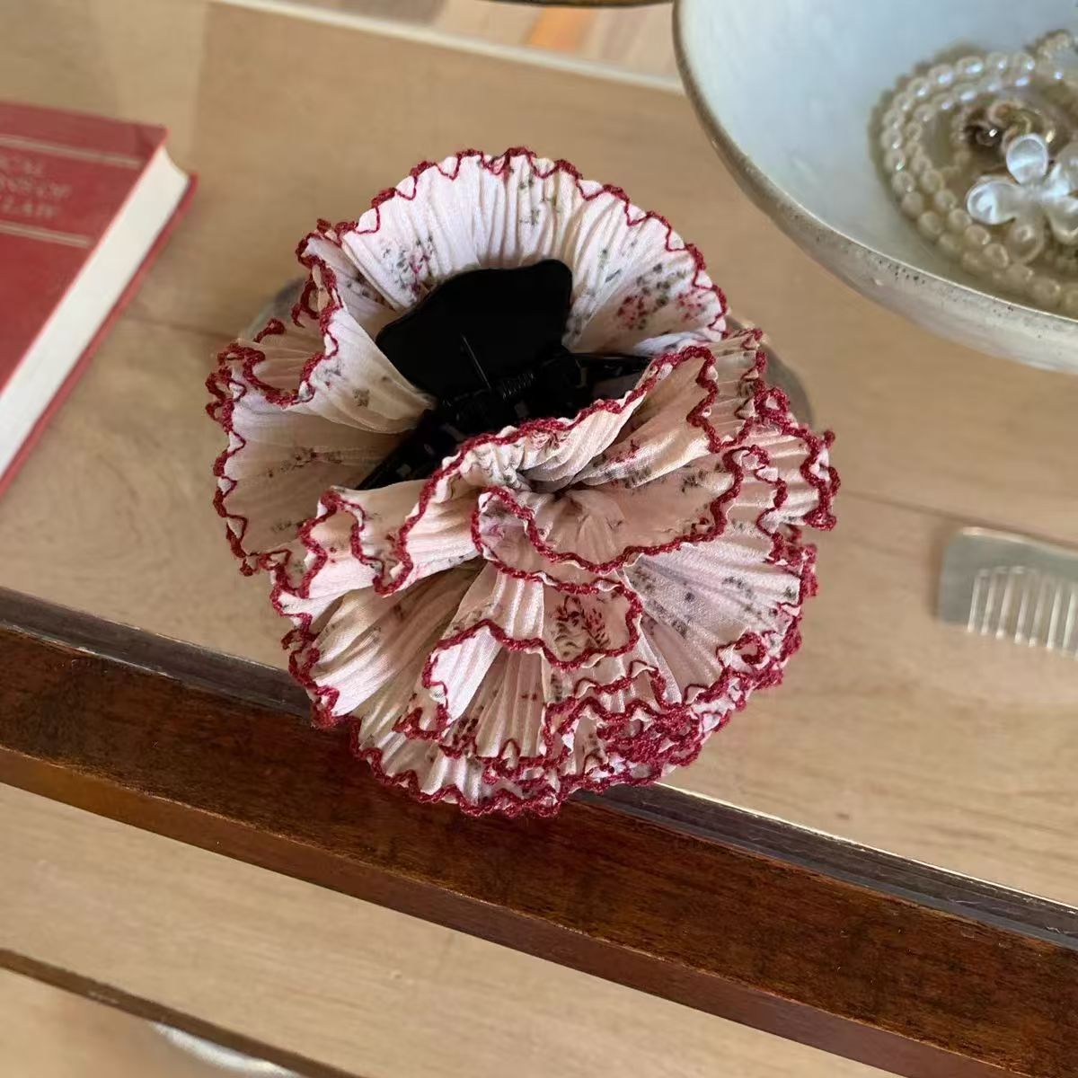 • 작은 꽃무늬 포니테일 클립 핑크