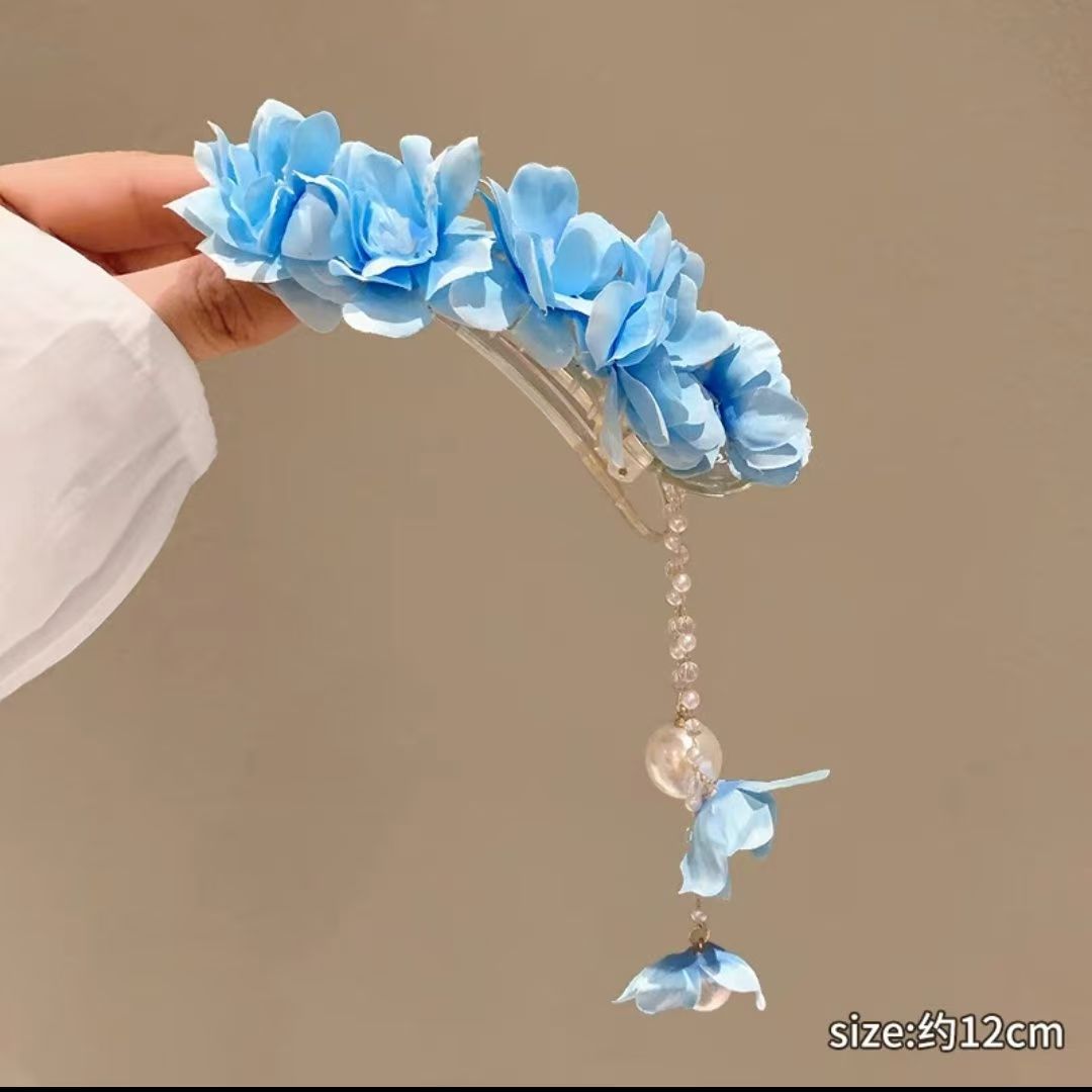 • 동백 진주 태슬 덕빌 클립 블루