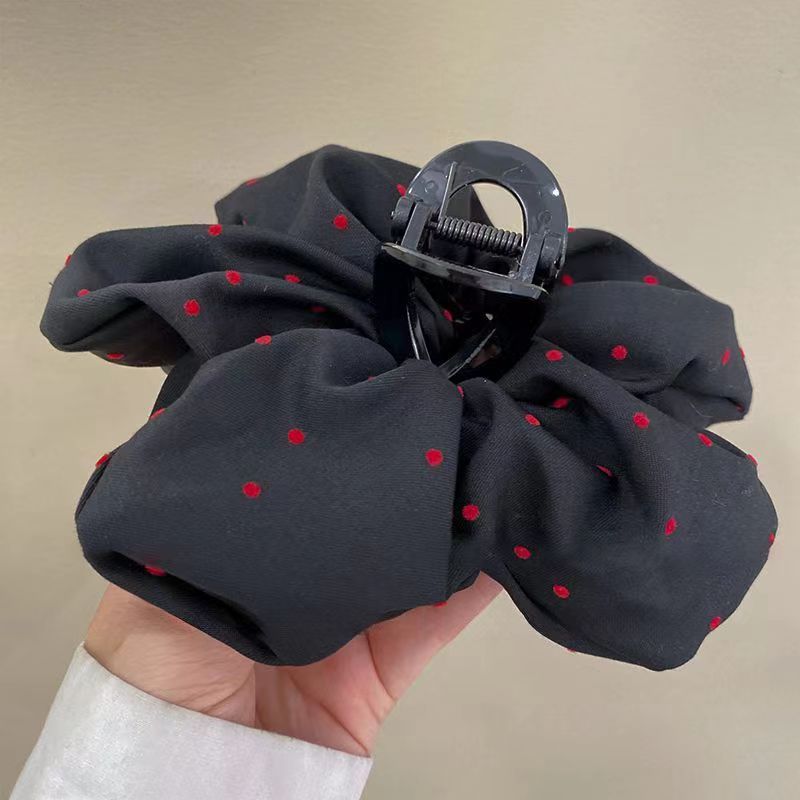 • 블랙 폴카 도트 플라워 클립