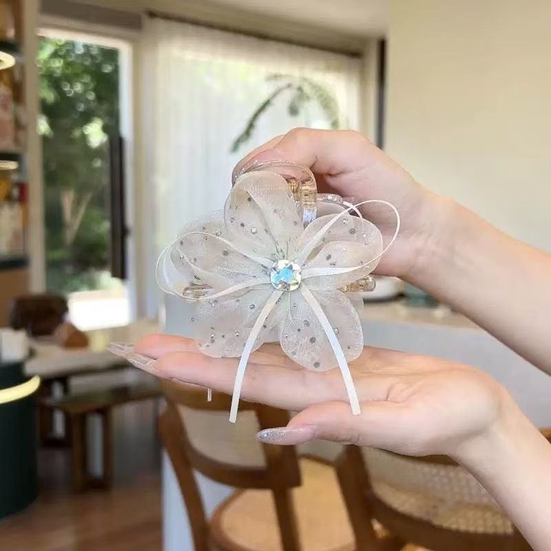 활 플래시 다이아몬드 메쉬 그립 새로운 우아한 서양식 올 매치 백 헤드 아름다운 상어 팬 클립 헤드 헤어 액세서리스토어 가기