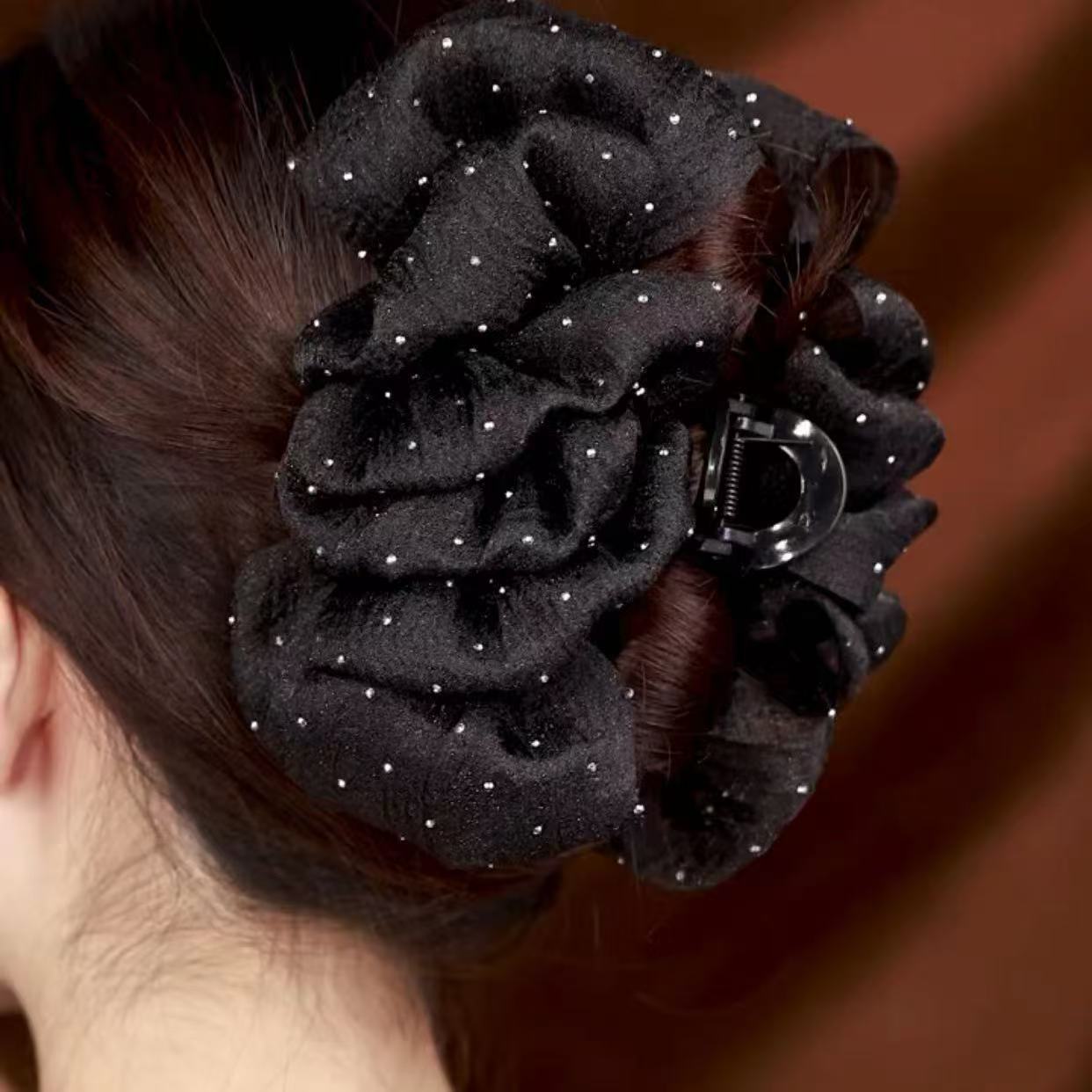 • 안개꽃 꽃 라인스톤 클립 블랙