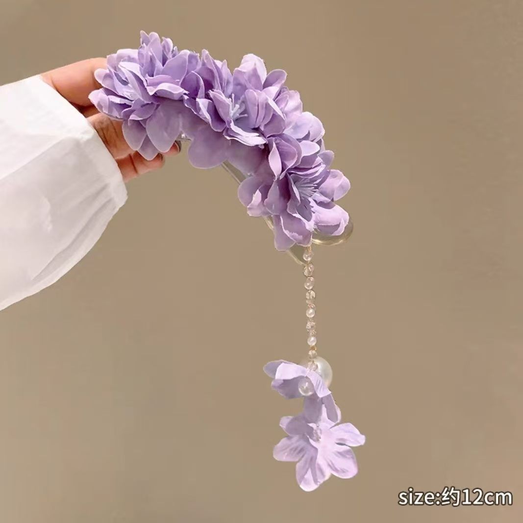 • 동백 진주 태슬 덕빌 클립 퍼플