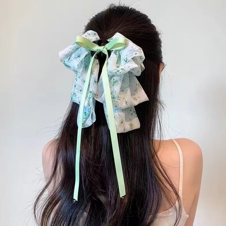 • 작은 꽃무늬 포니테일 클립 그린