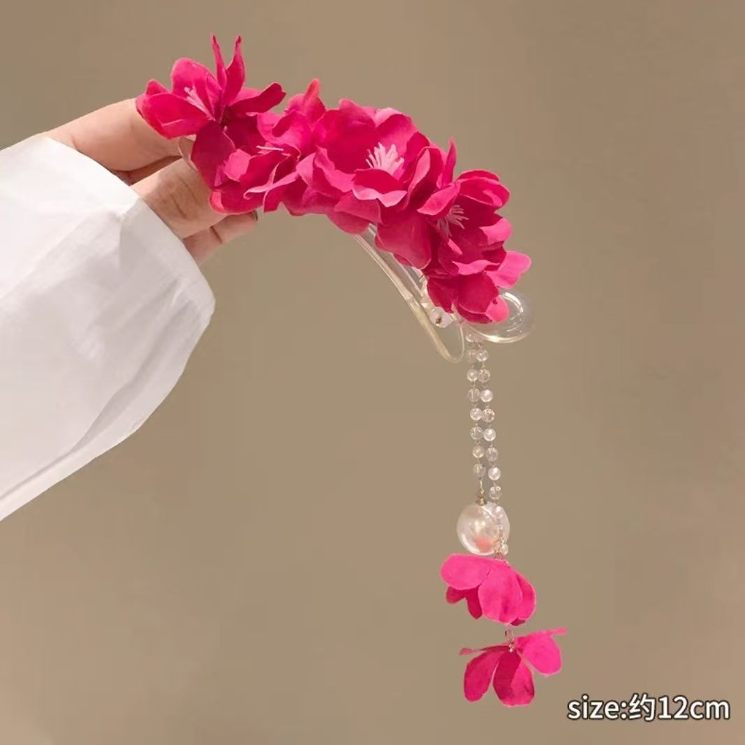 • 동백 진주 태슬 덕빌 클립 레드