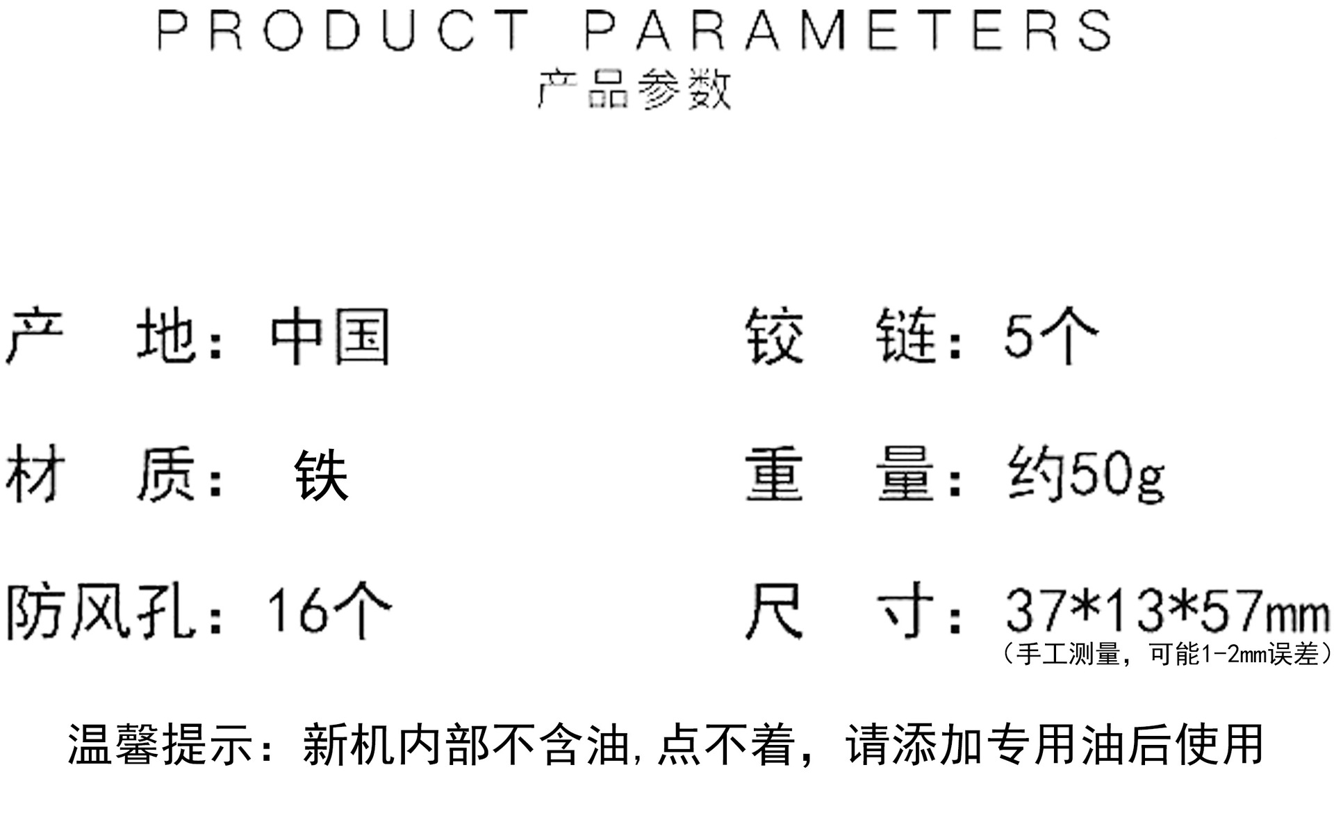 • 양면 패턴 - 불을 붙일 수 없음 - 별도의 라이터 - 등유를 직접 지참하세요