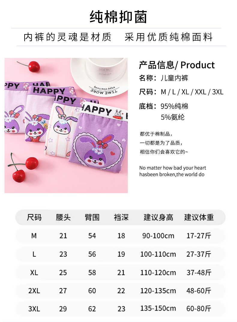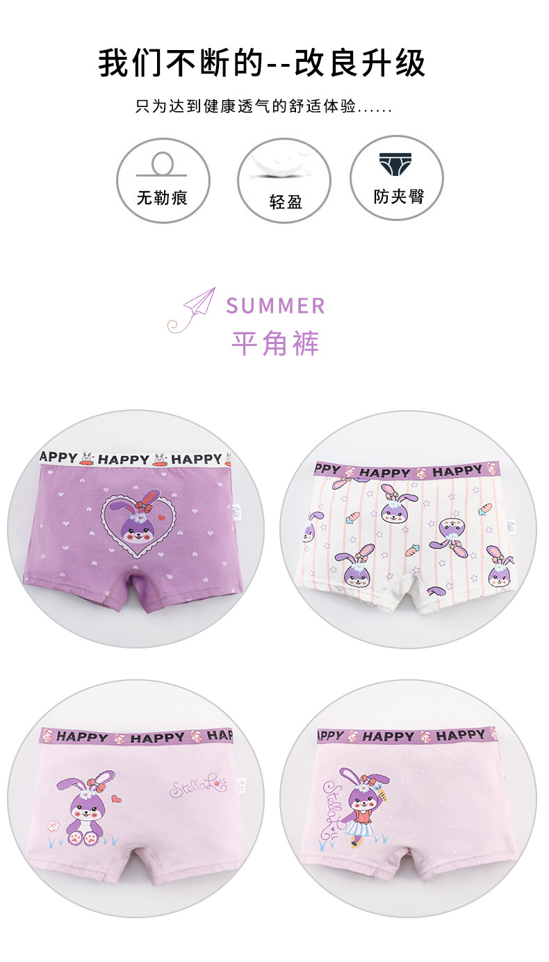 보라색 토끼 클래스 A 어린이 속옷 복서 순면 삼각형 반바지 아기 소녀 작은 중학생 복서 바지스토어 가기