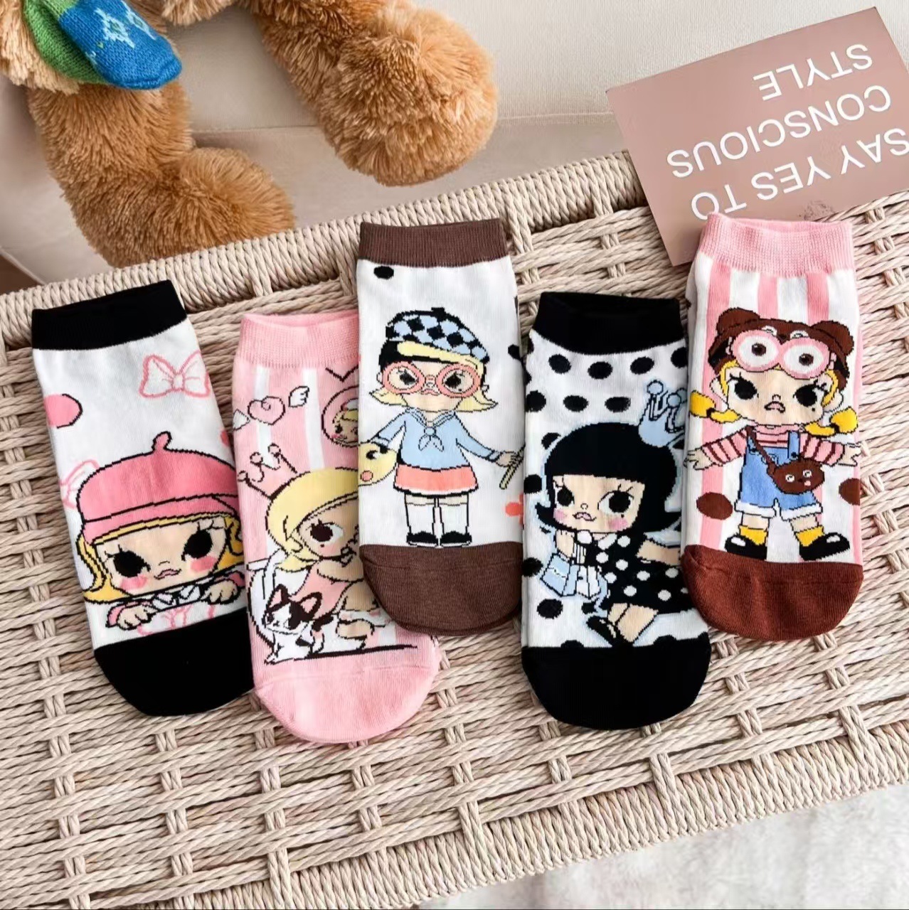 일본의 새로운 만화 양말 어린이 보라색 귀여운 양말 200N 여성 보트 양말면 양말 도매 머리카락 세대스토어 가기