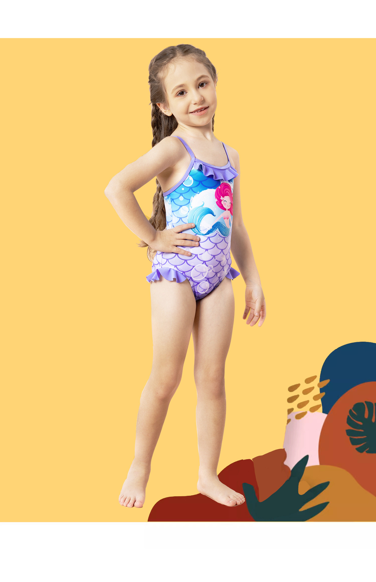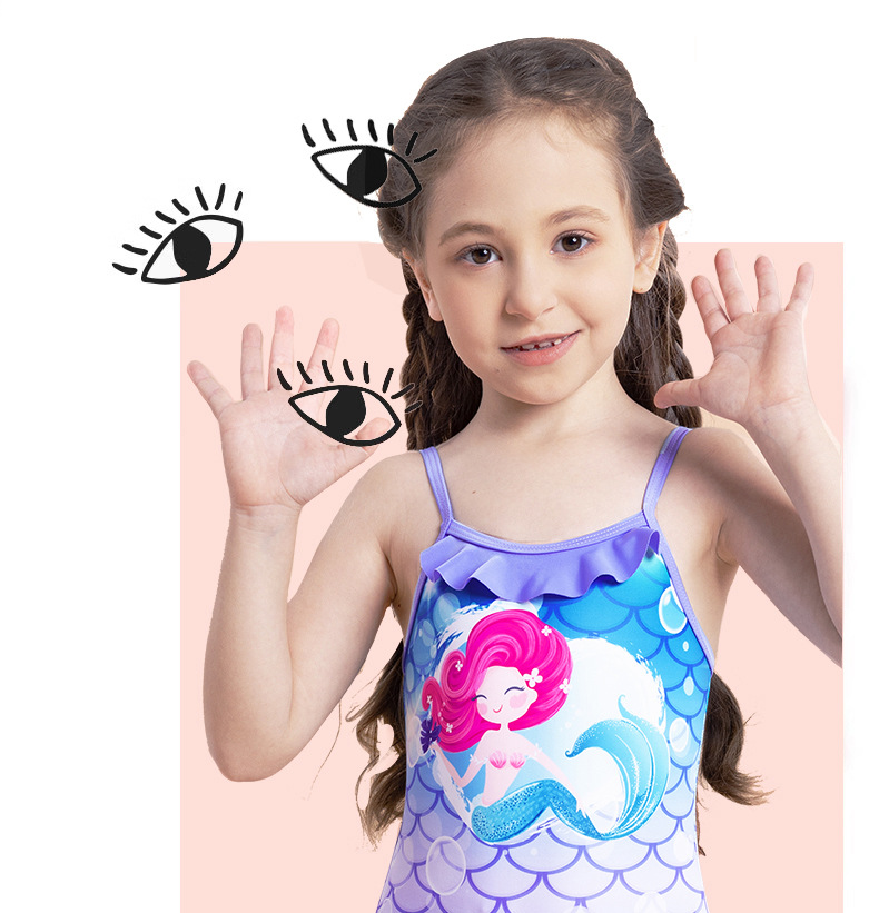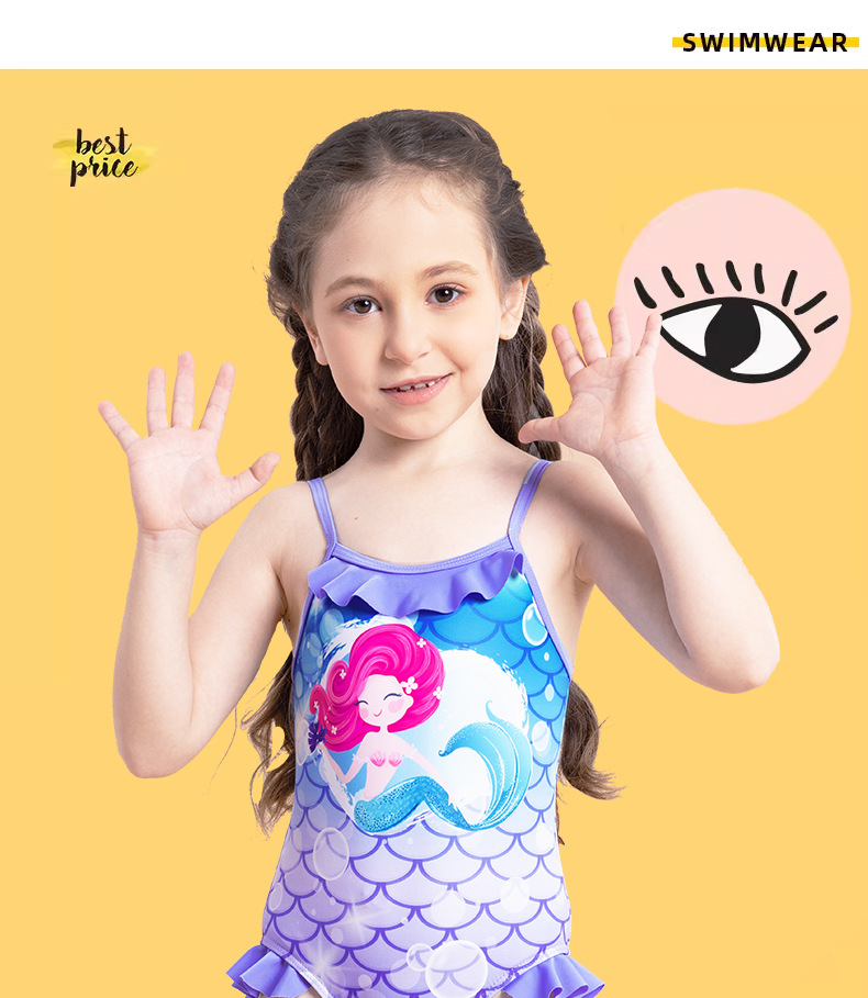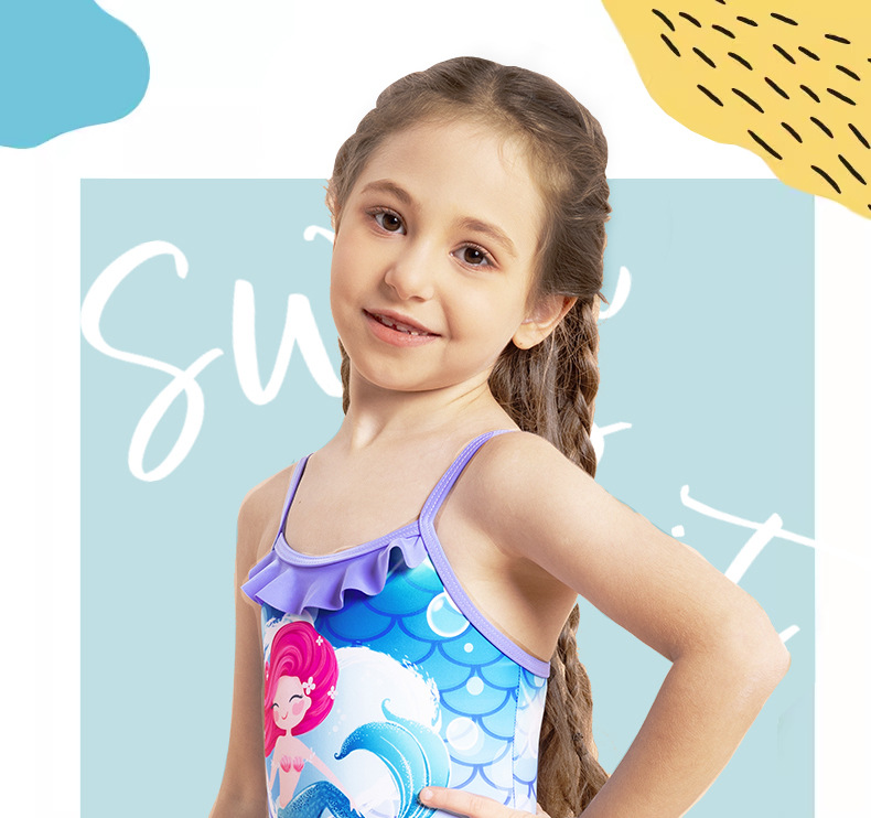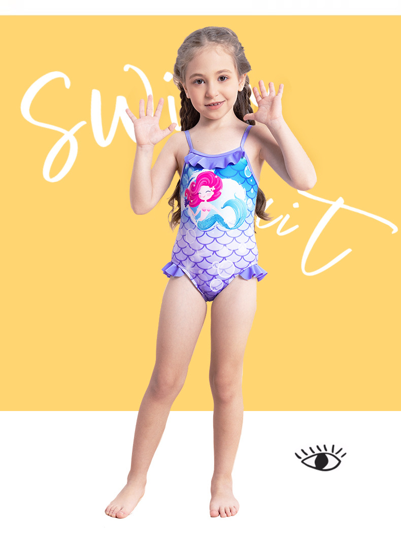 어린이 수영복 여아 수영복 2025 신상 스트랩 머메이드 비늘 무늬 러플 원피스 여아 수영복스토어 가기