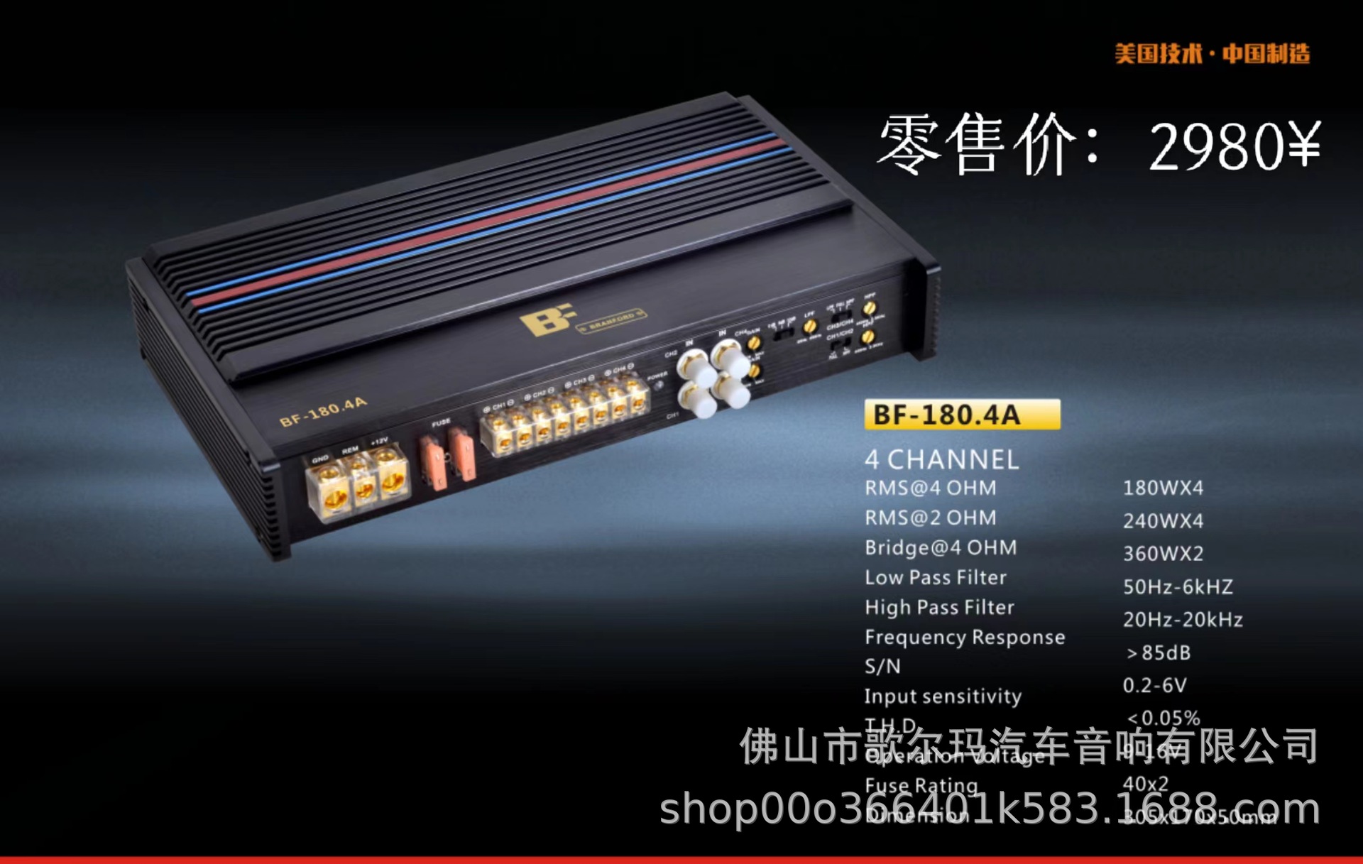 2026년형 AB급 4x180W 차량용 오디오 앰프/4채널 앰프/차량용 앰프 4채널 고출력스토어 가기