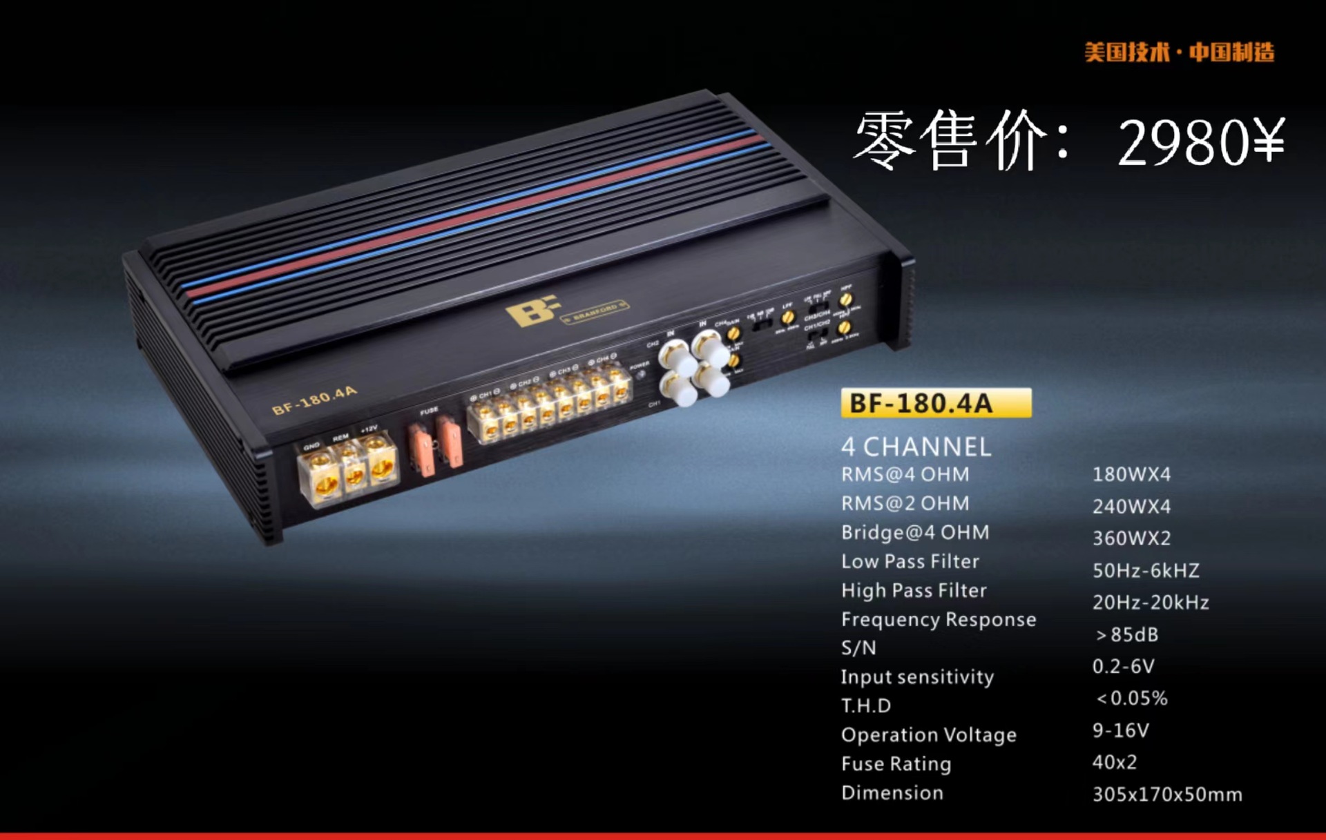 2026년형 AB급 4x180W 차량용 오디오 앰프/4채널 앰프/차량용 앰프 4채널 고출력