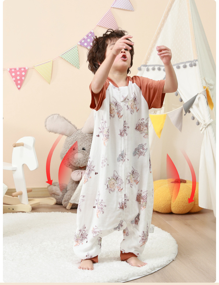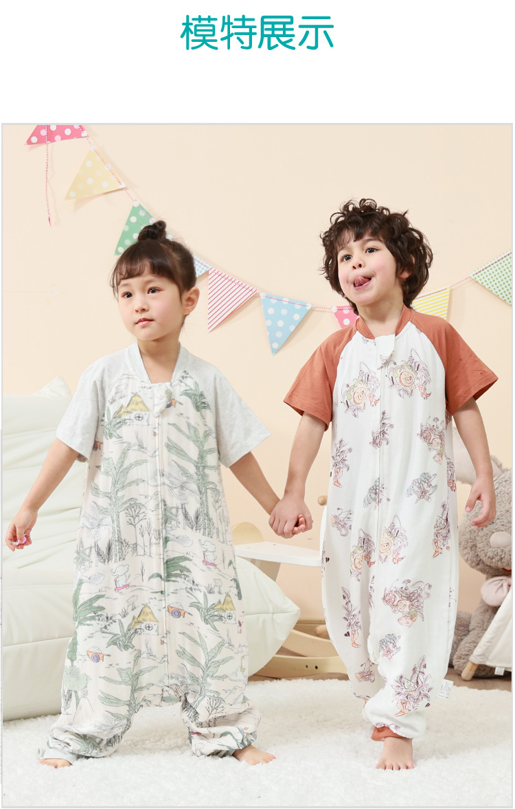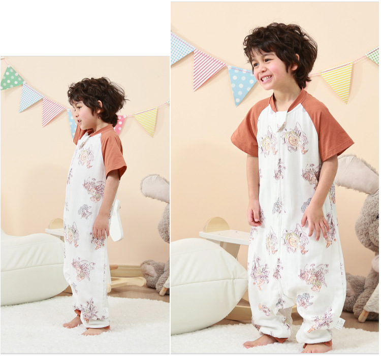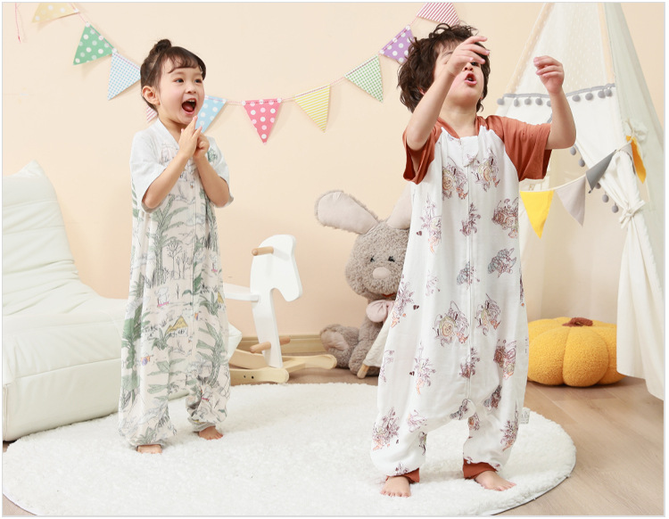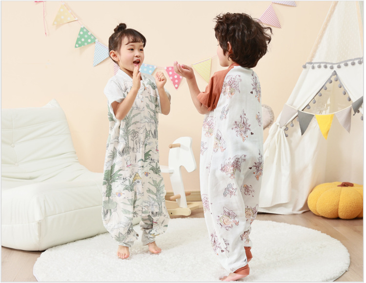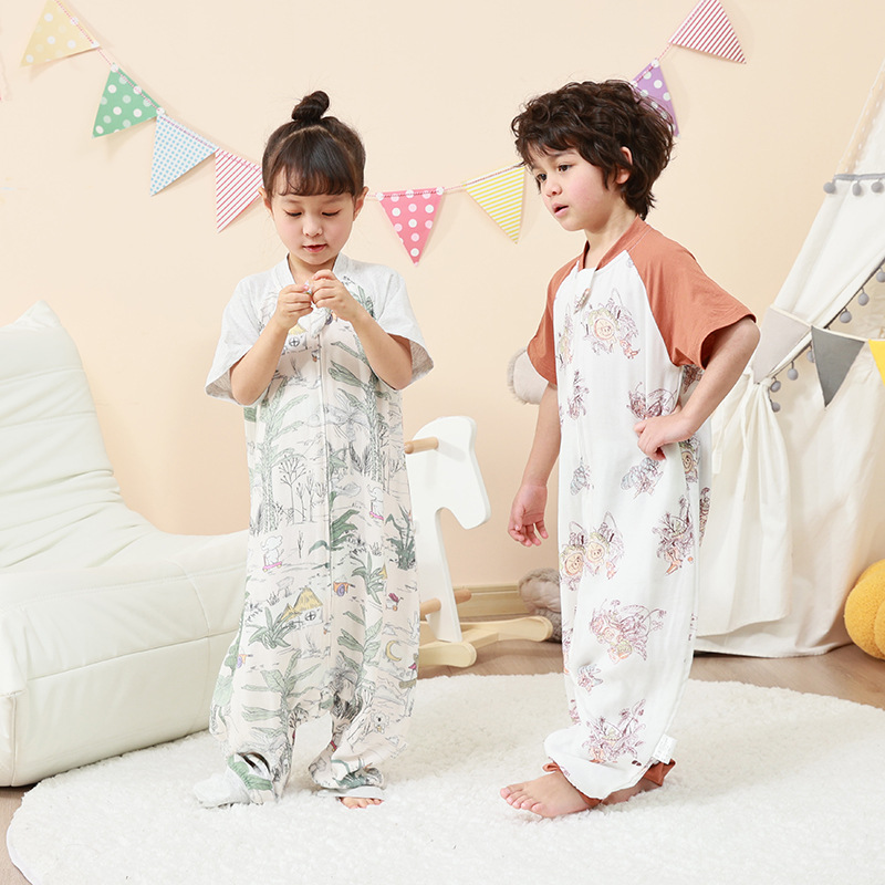 아기 수면조끼, 대나무 면 거즈, 앞4뒤2 분리형 수면조끼, 2024 봄여름 디지털 프린트, 발차기 방지, 에어컨 의류스토어 가기