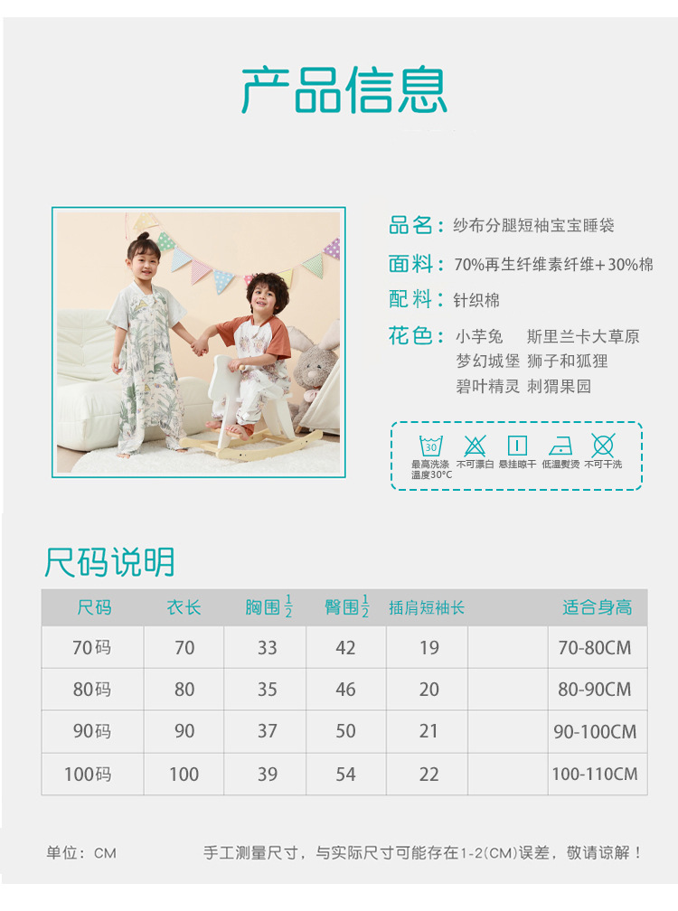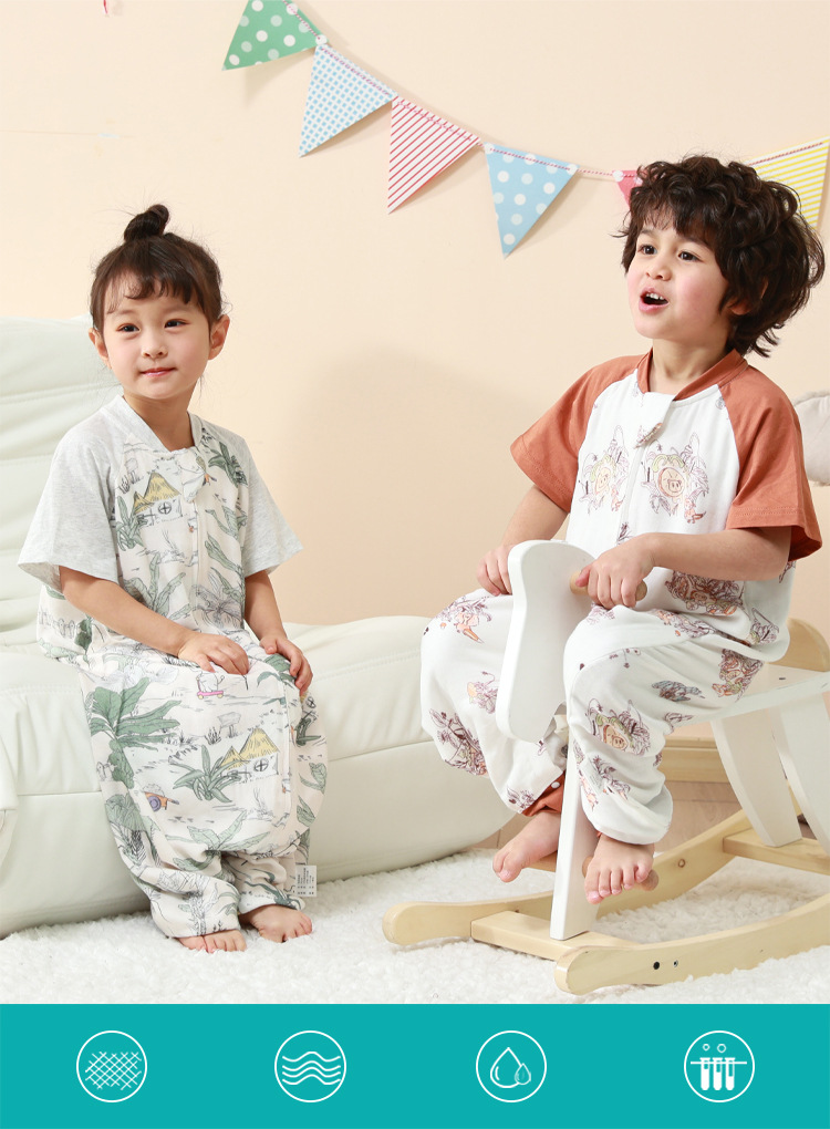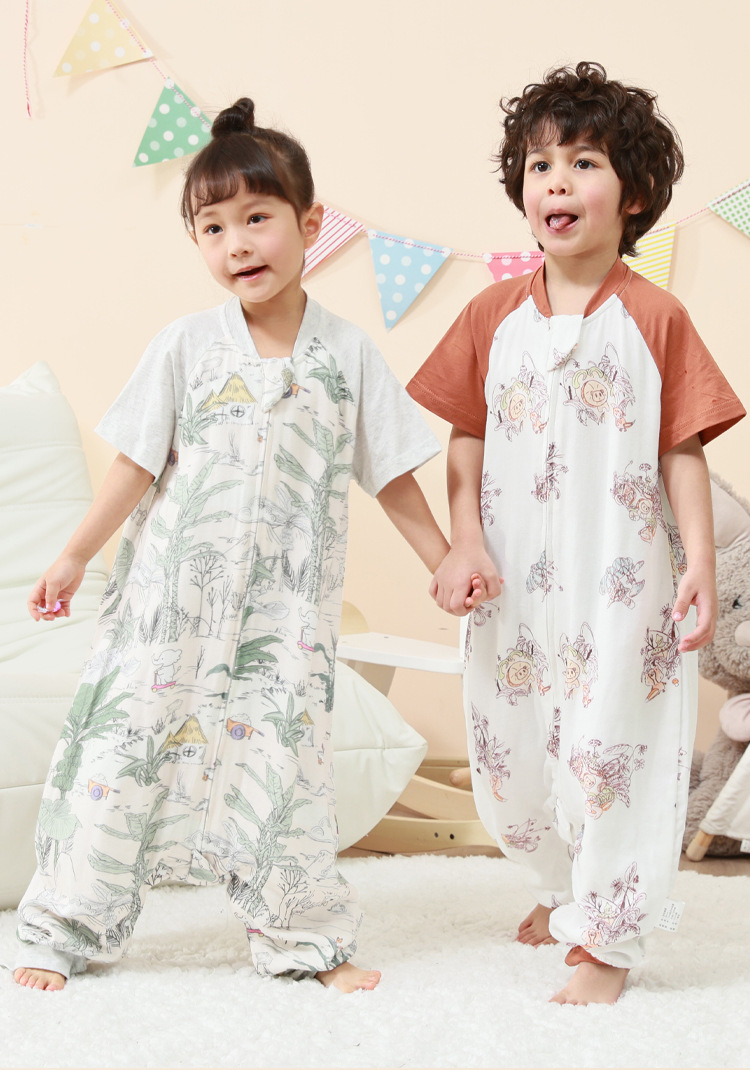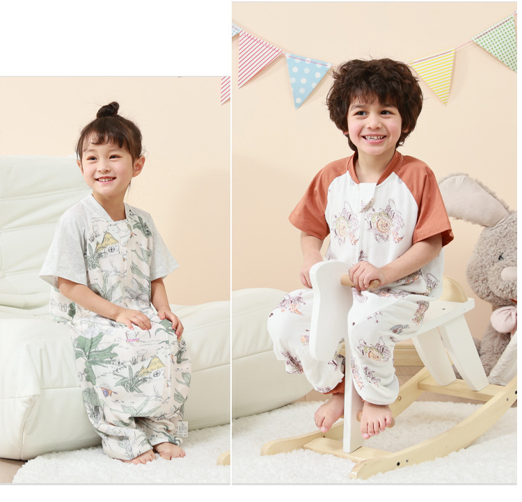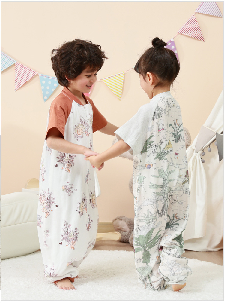 아기 수면조끼, 대나무 면 거즈, 앞4뒤2 분리형 수면조끼, 2024 봄여름 디지털 프린트, 발차기 방지, 에어컨 의류스토어 가기