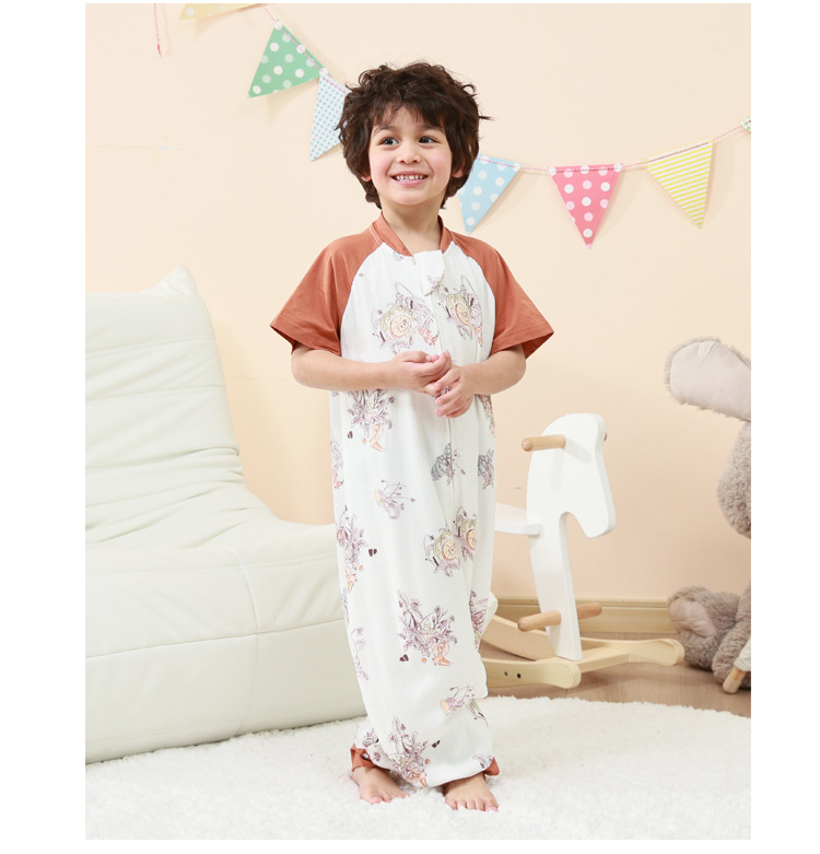 아기 수면조끼, 대나무 면 거즈, 앞4뒤2 분리형 수면조끼, 2024 봄여름 디지털 프린트, 발차기 방지, 에어컨 의류