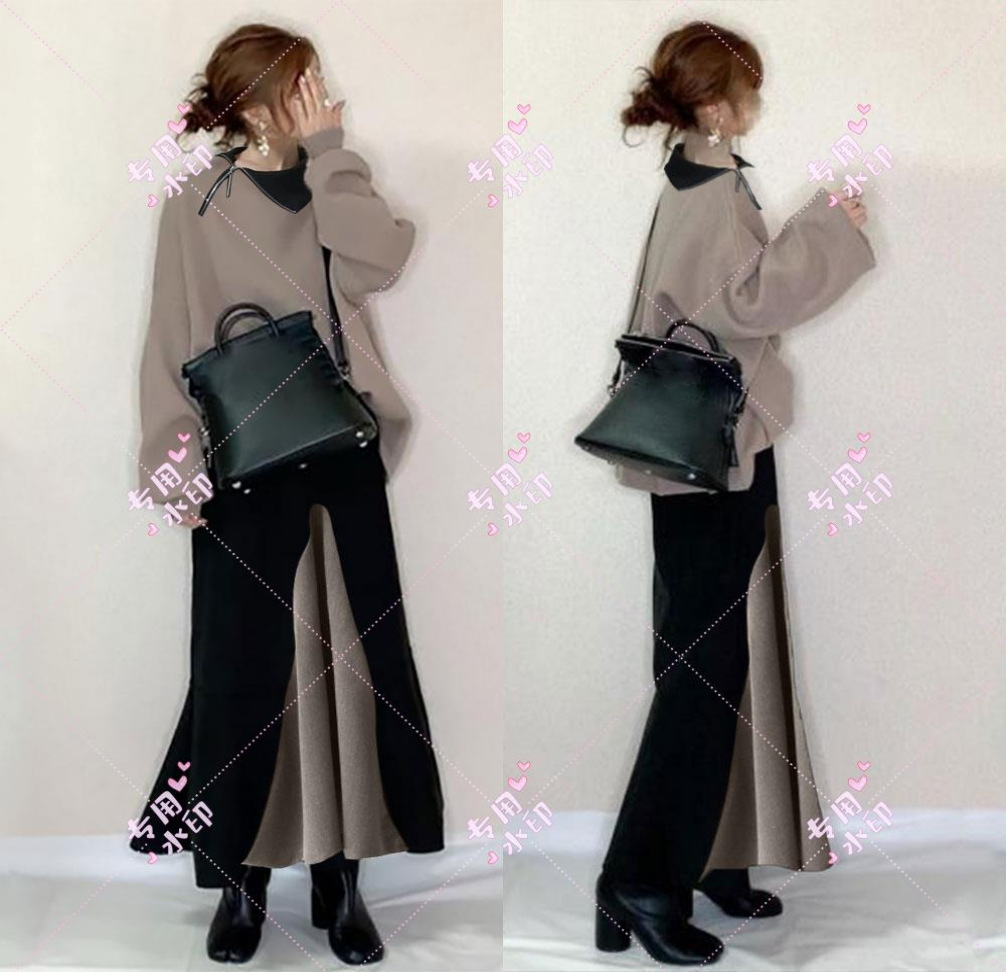 • 터틀넥 스웨트셔츠 + 컬러블록 스커트