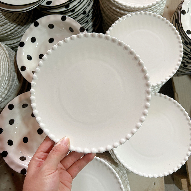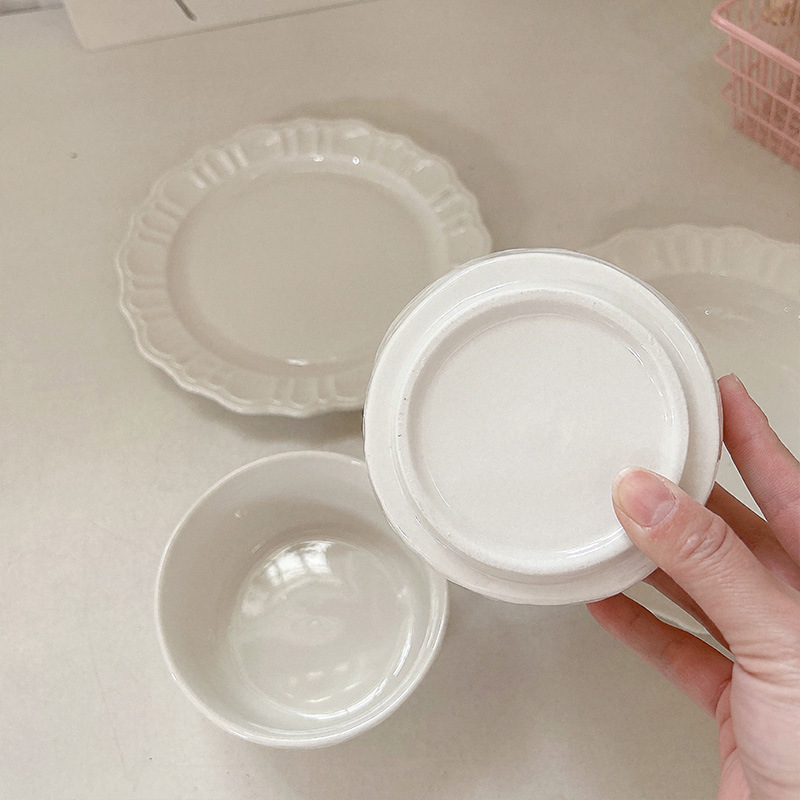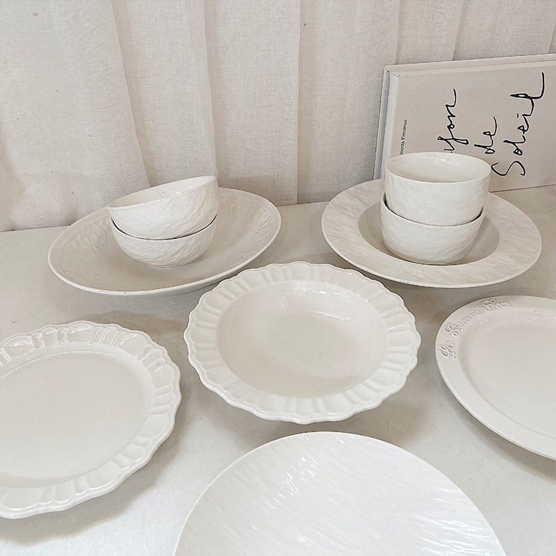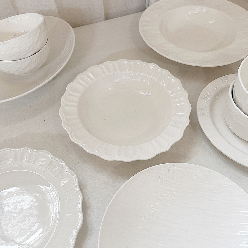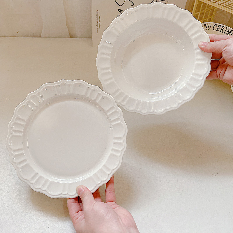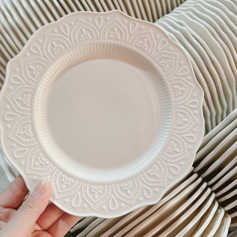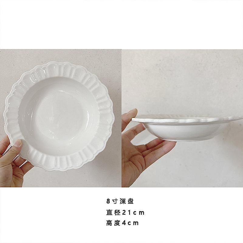 프렌치 플레이트 간단한 디너 플레이트 인 스타일 플레이트 밥 그릇 디저트 플레이트 양각 접시 홈 수프 플레이트 도매