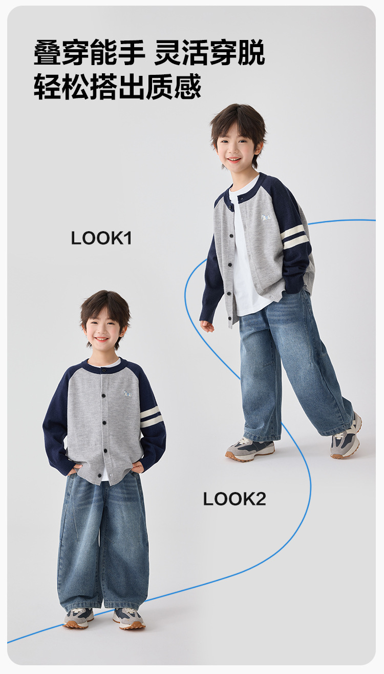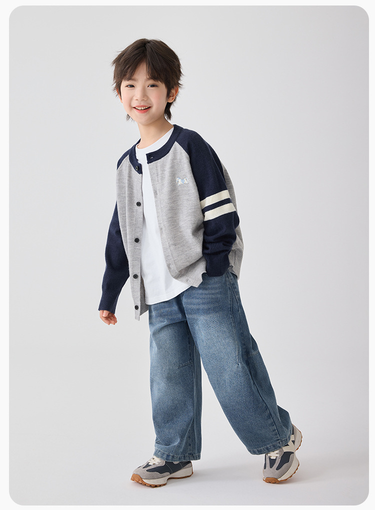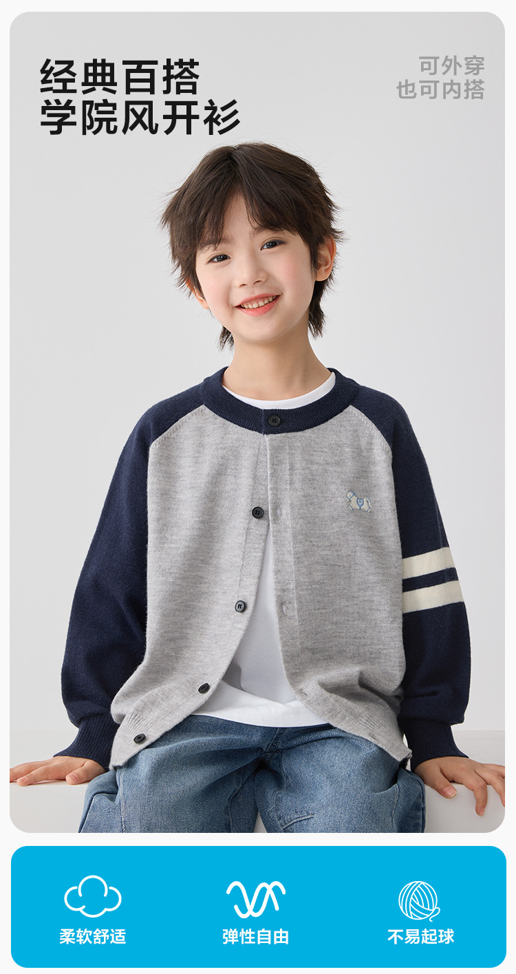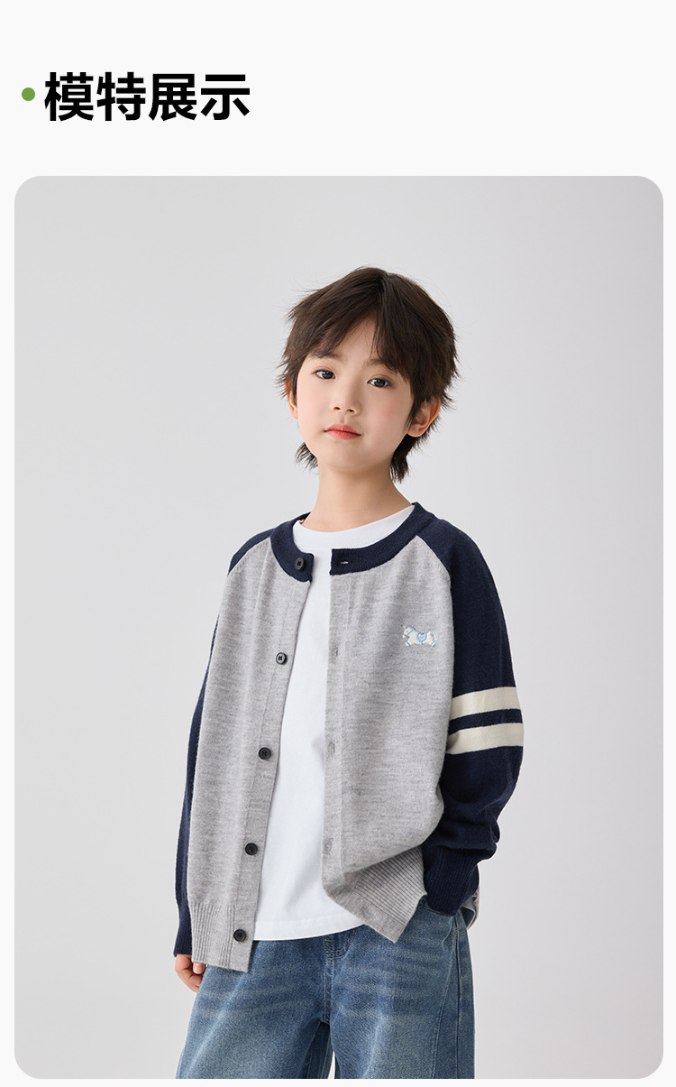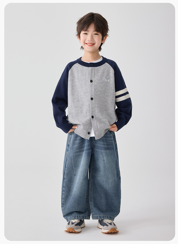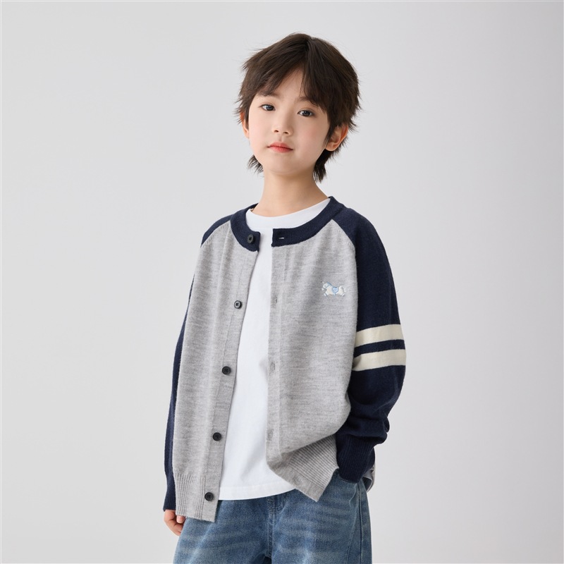 하이마아의 남아용 2026년 봄 신상 한국 스타일 세련된 가디건 코트 트렌디한 니트 스웨터 대학 스타일 의류스토어 가기
