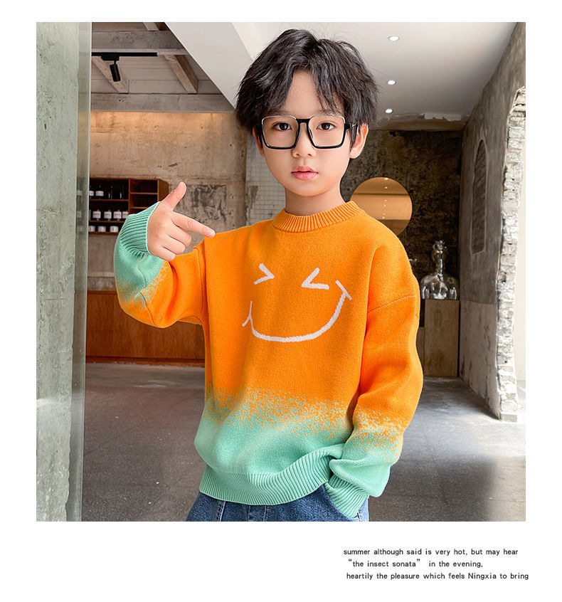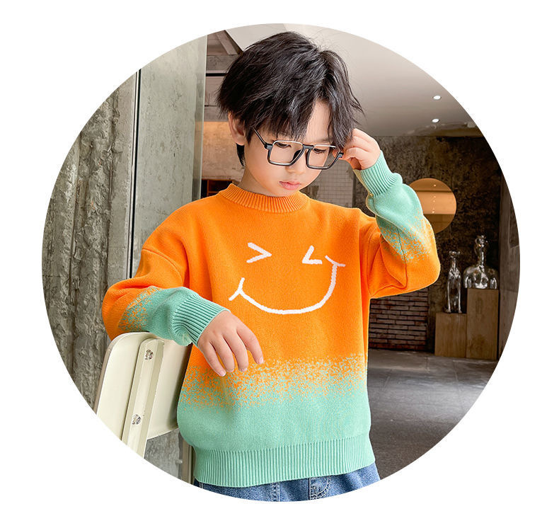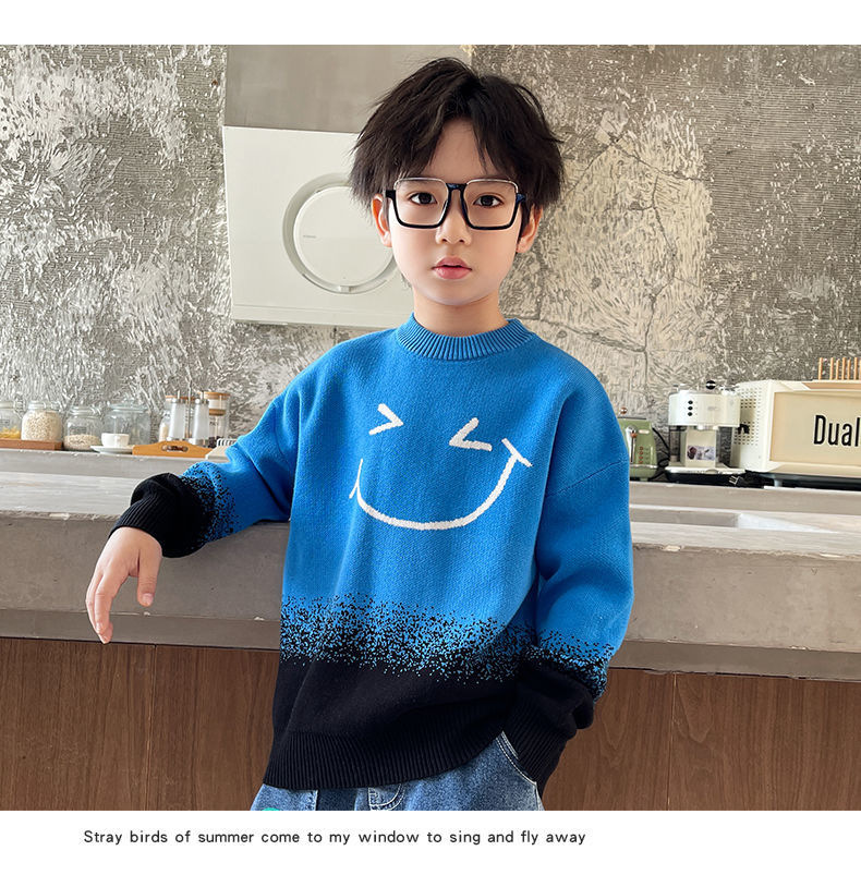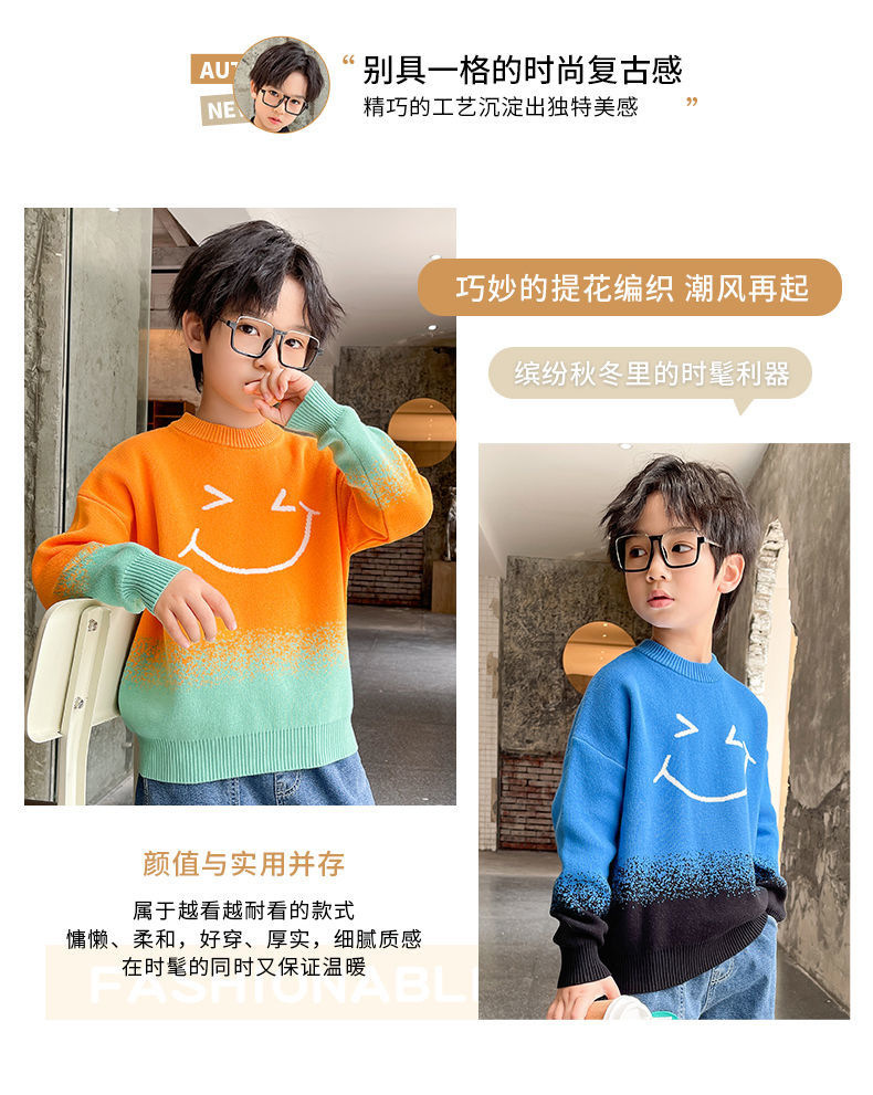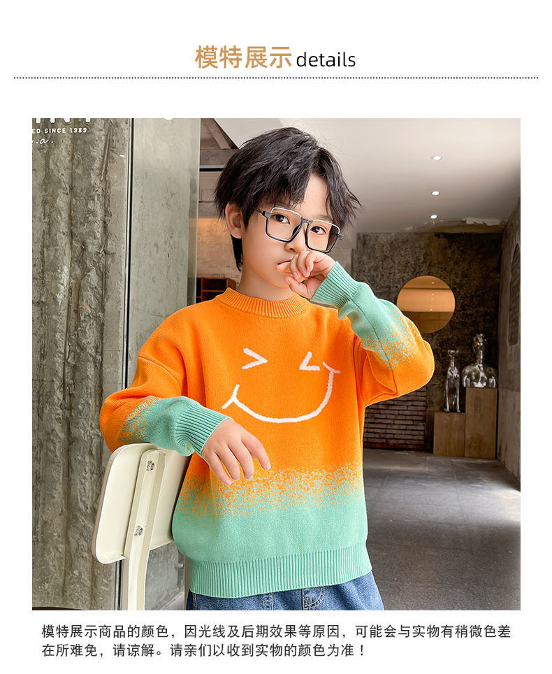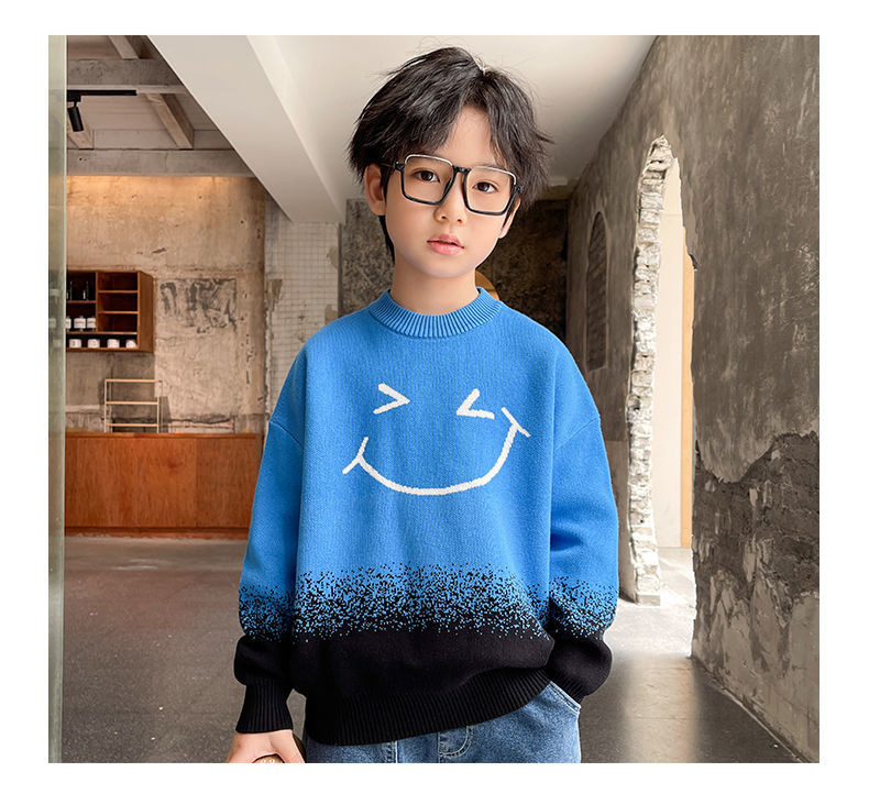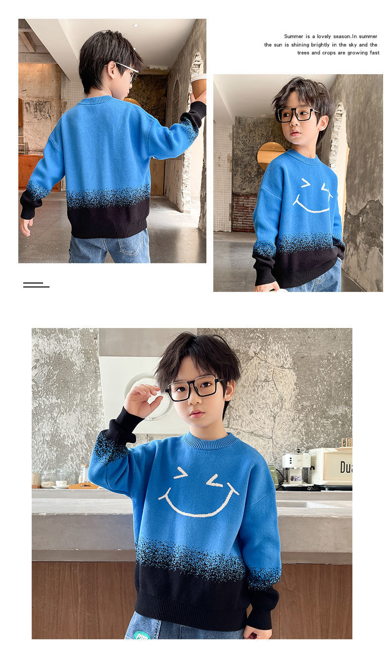 어린이 의류 소년 가을과 겨울 2024 새로운 중형 및 대형 어린이 한국 스타일 유행 한국 스타일 세련된 잘 생긴 탑 스웨터 패션스토어 가기