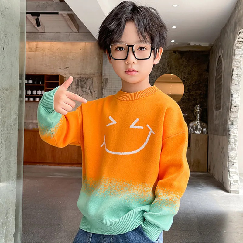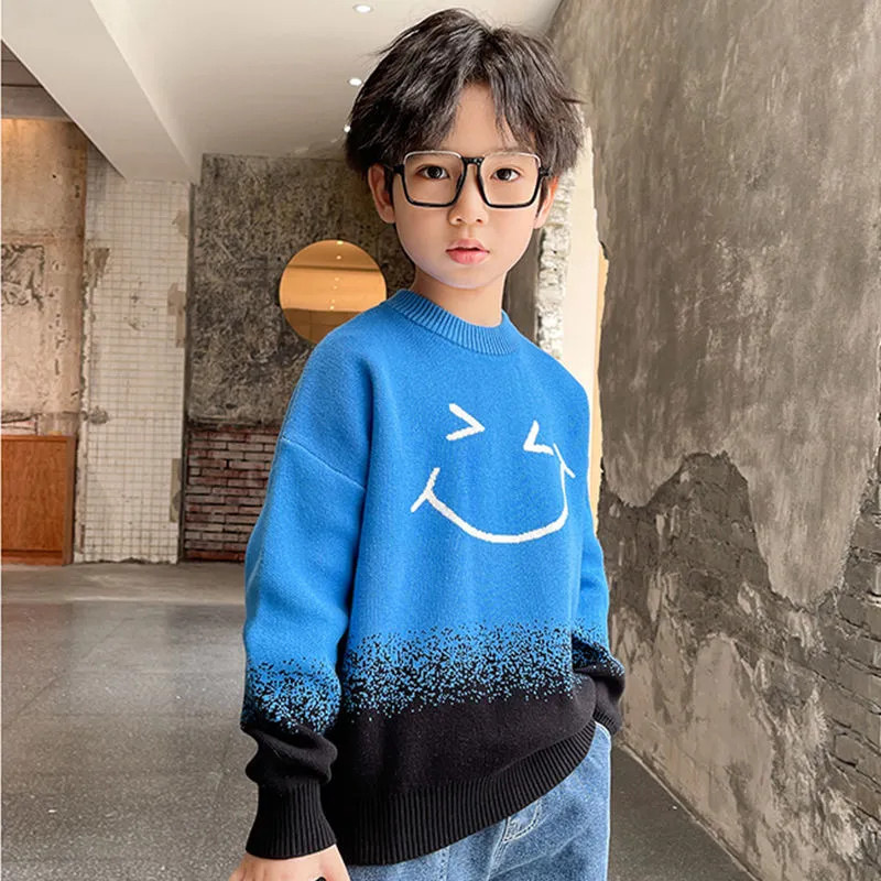 어린이 의류 소년 가을과 겨울 2024 새로운 중형 및 대형 어린이 한국 스타일 유행 한국 스타일 세련된 잘 생긴 탑 스웨터 패션