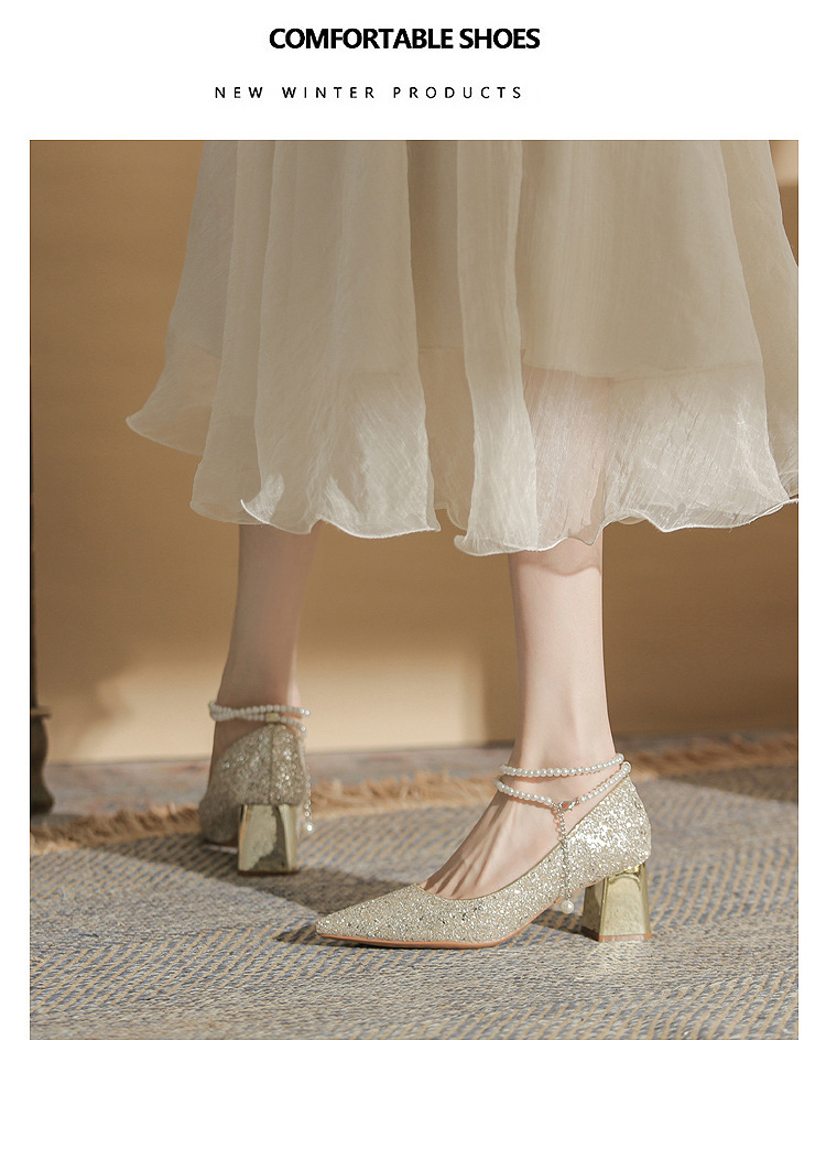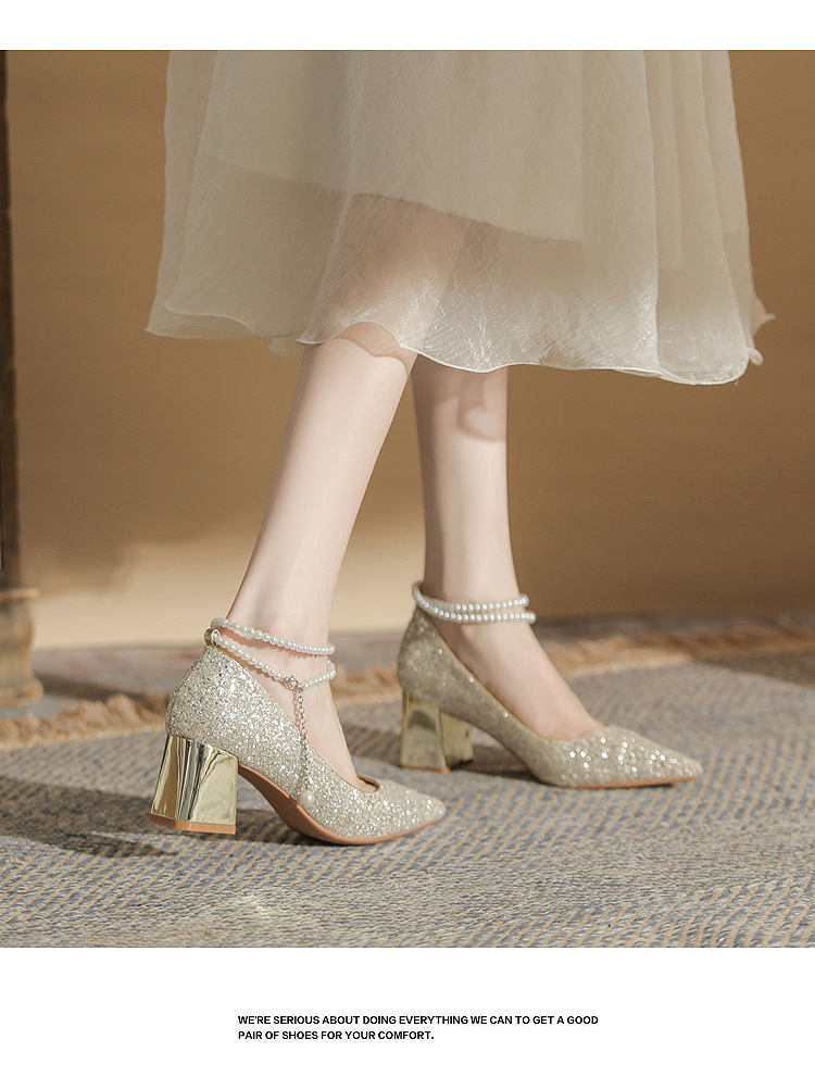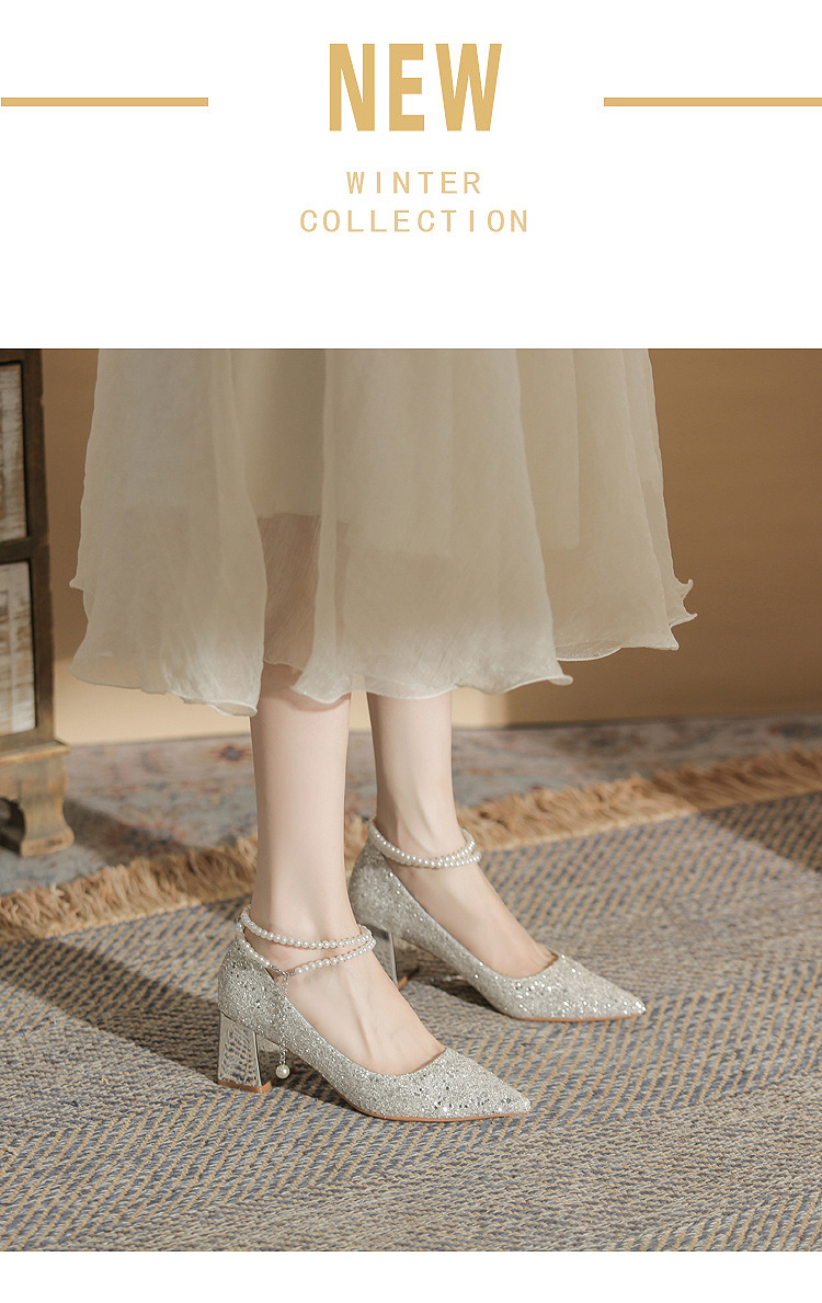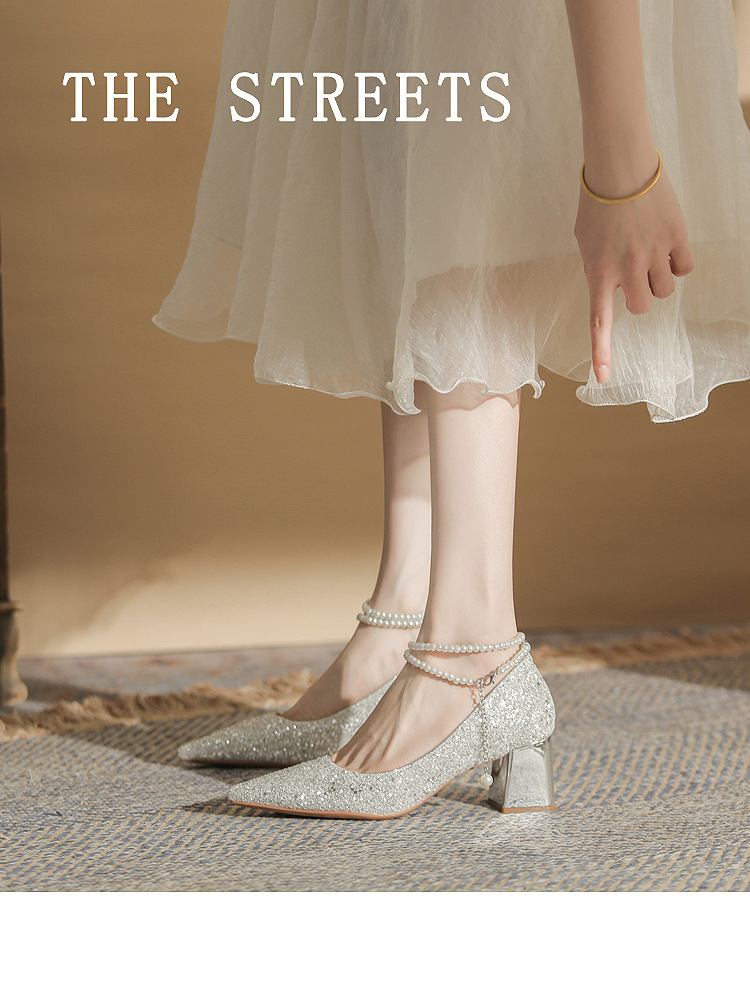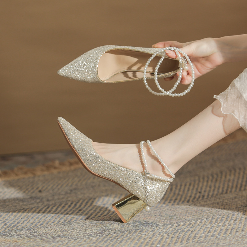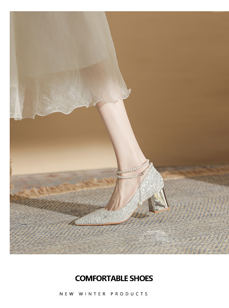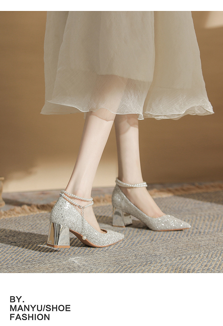 여성을위한 새로운 봄과 가을 섹시한 패션 하이힐을 2024 여성을위한 Jinqi CG6036 청키 힐 뾰족한 싱글 레이어 신발스토어 가기