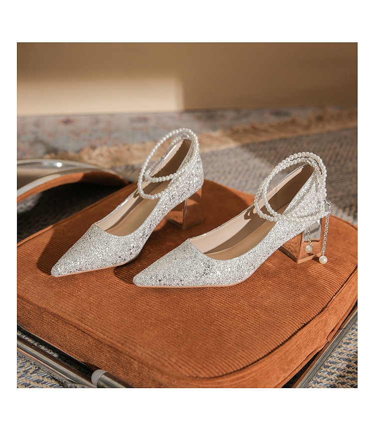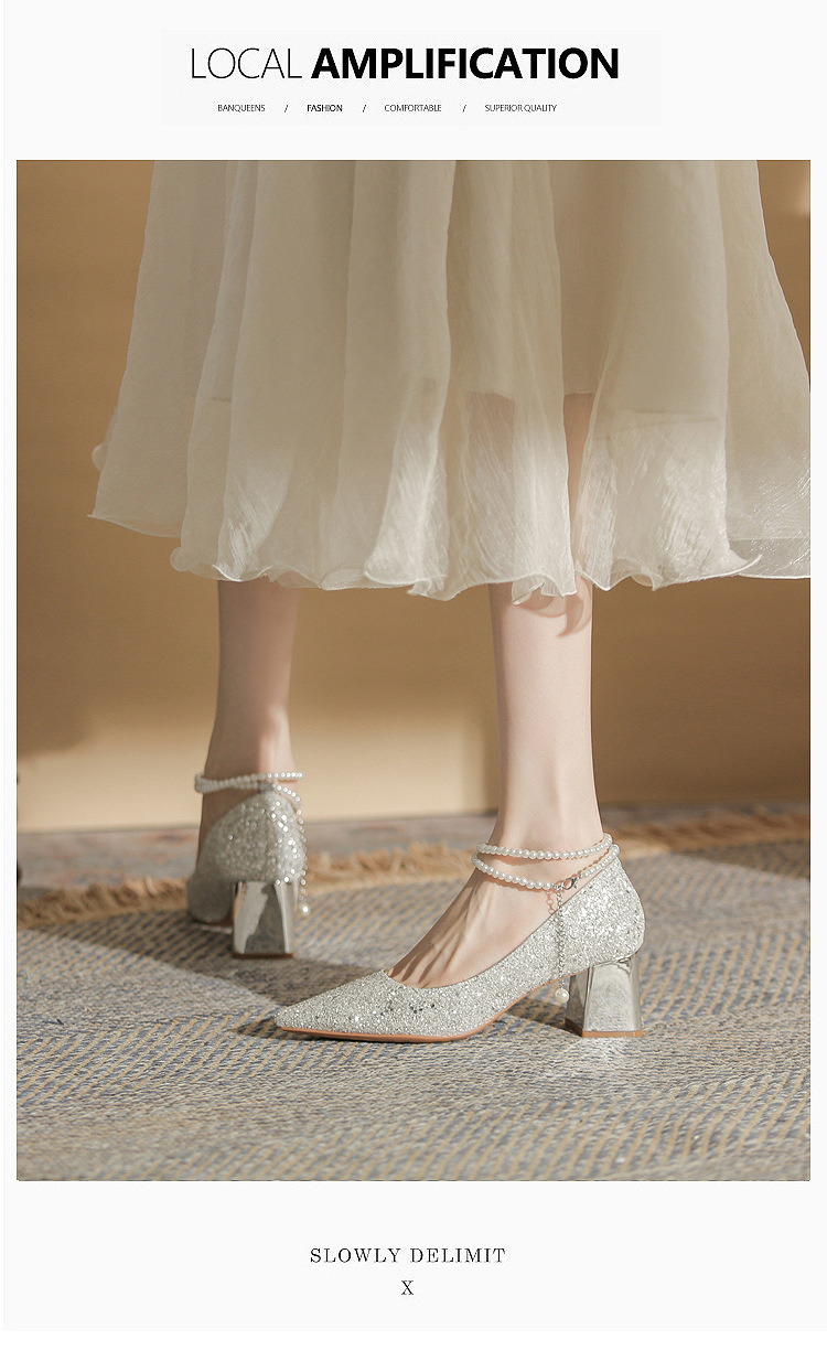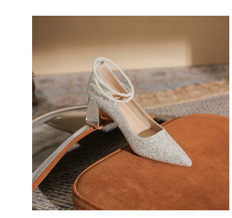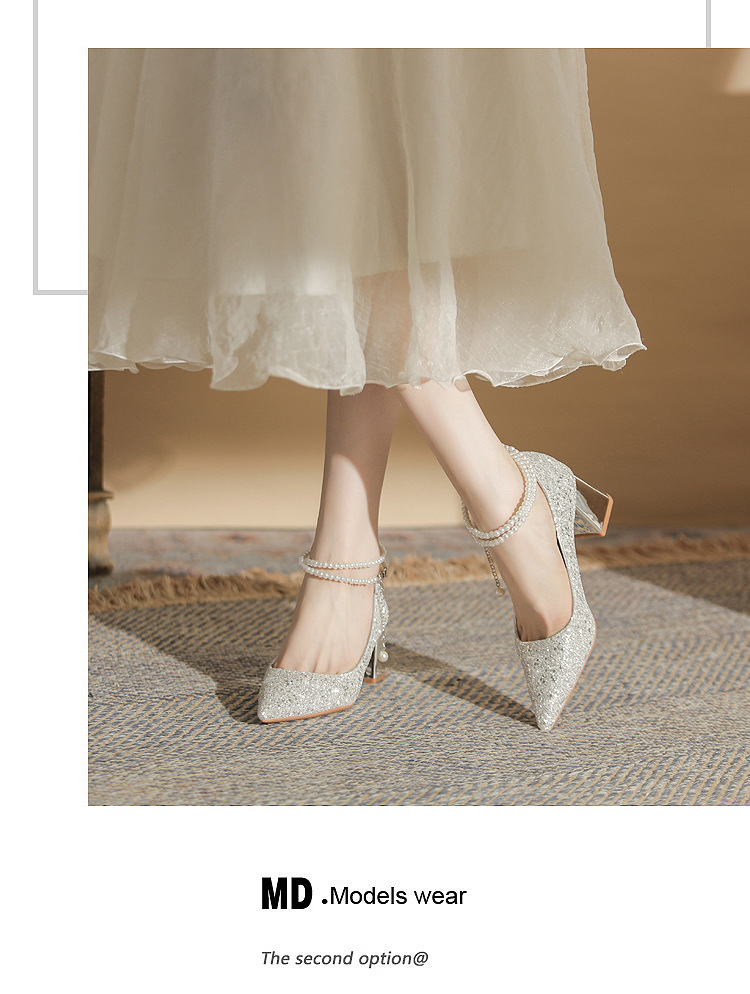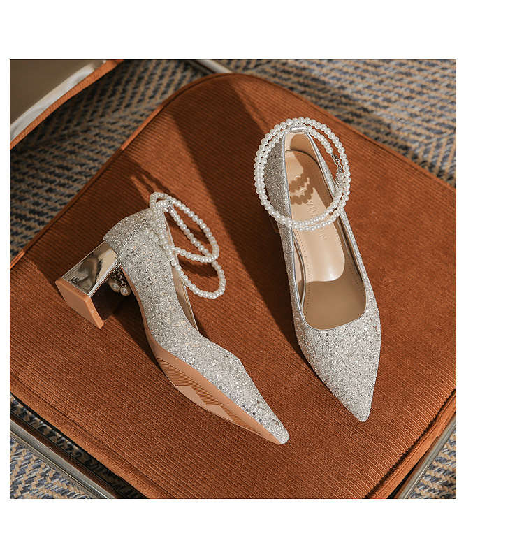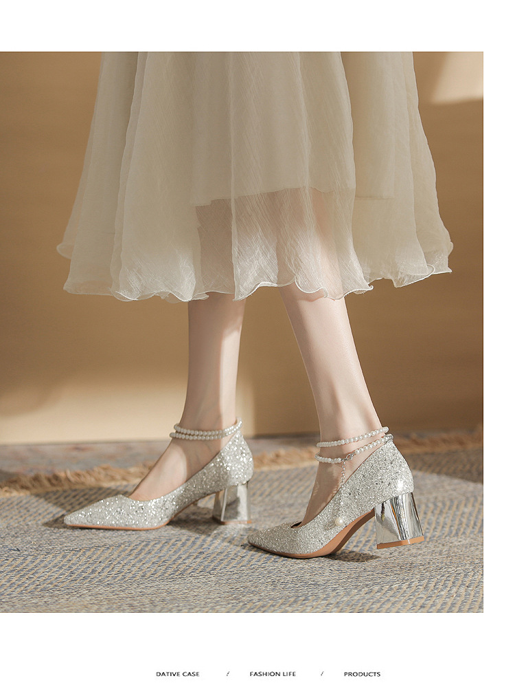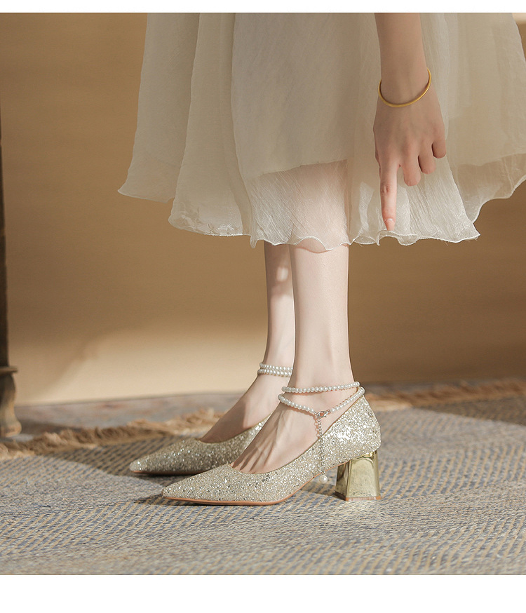 여성을위한 새로운 봄과 가을 섹시한 패션 하이힐을 2024 여성을위한 Jinqi CG6036 청키 힐 뾰족한 싱글 레이어 신발스토어 가기