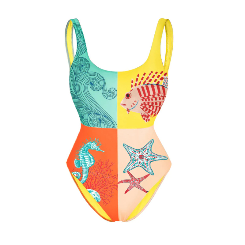 2024 유럽과 미국의 새로운 스타일 Siaman 수영복 불가사리 인쇄 대조 백리스 수영복 세트 여성스토어 가기