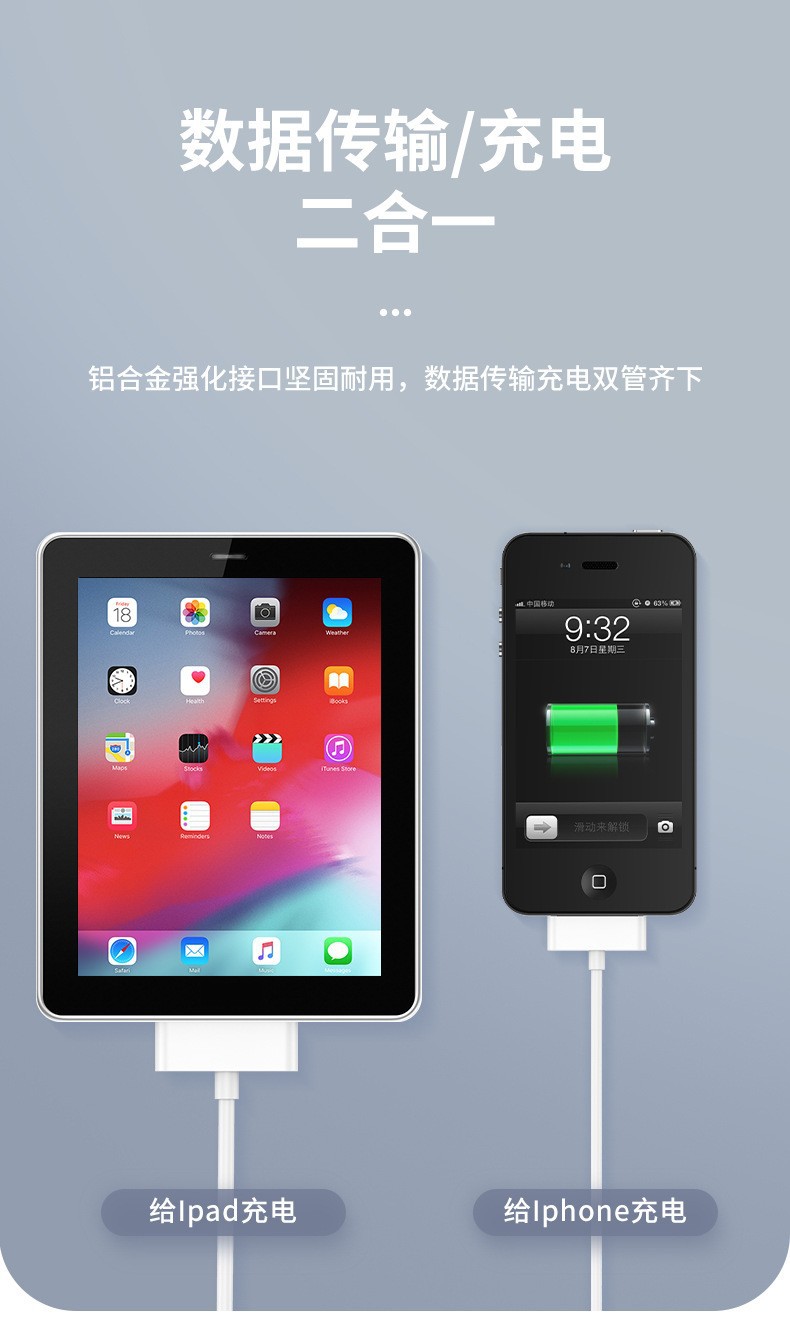 애플 4 휴대 전화 충전 케이블 iPhone4/4S, iphone3G/3Gs,ipad3/2/1 데이터 케이블에 적용 가능스토어 가기