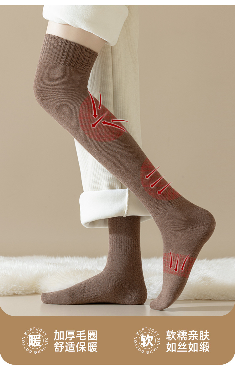 여성의 겨울이 두꺼워 진 무릎 위 양말 단색 내마모성면 양말 안티 필링 캐주얼 올 매치 스타킹 도매