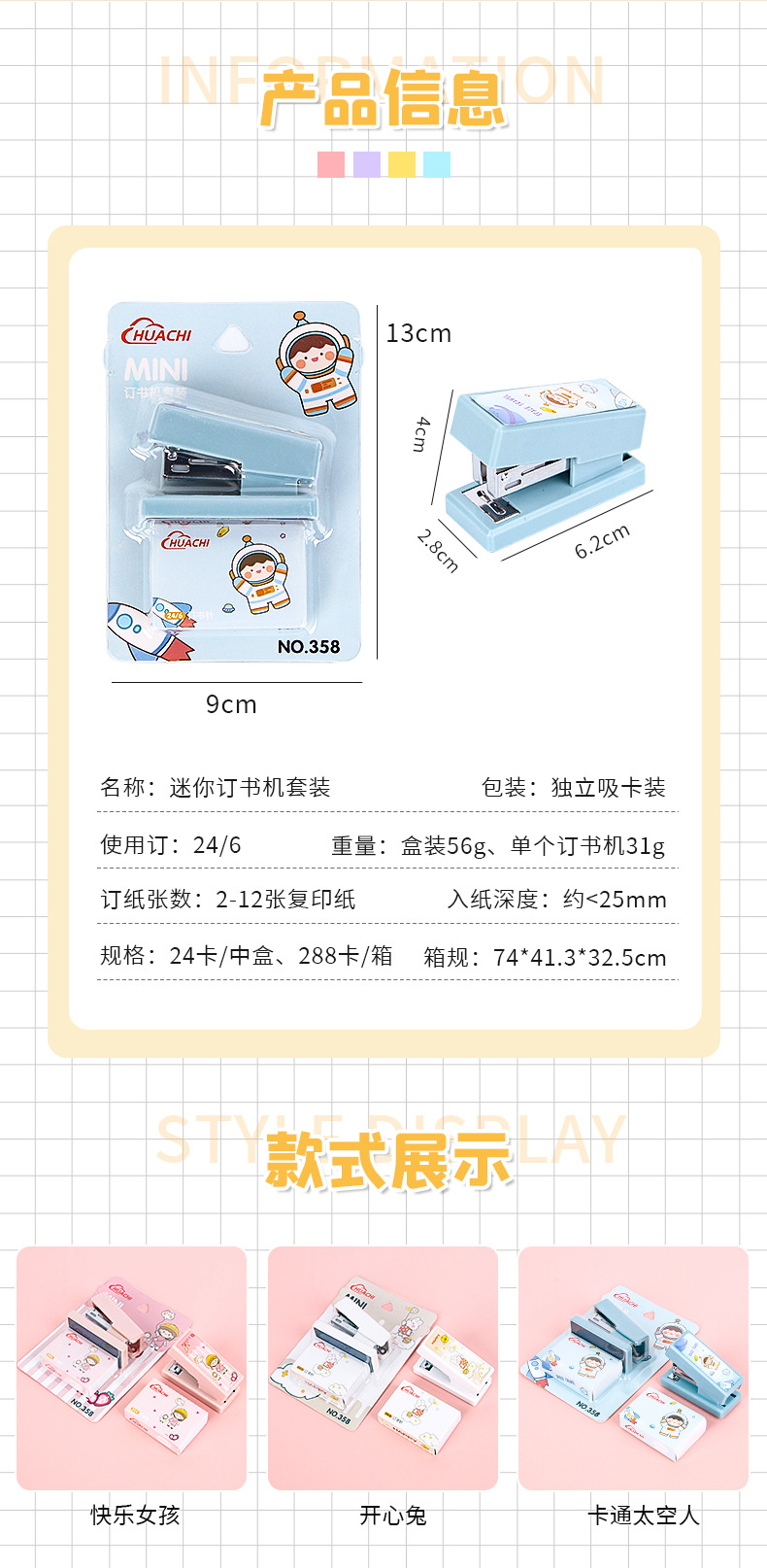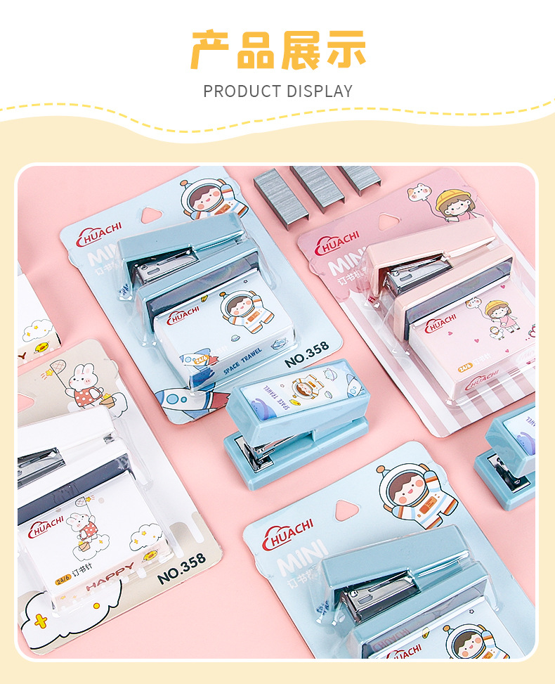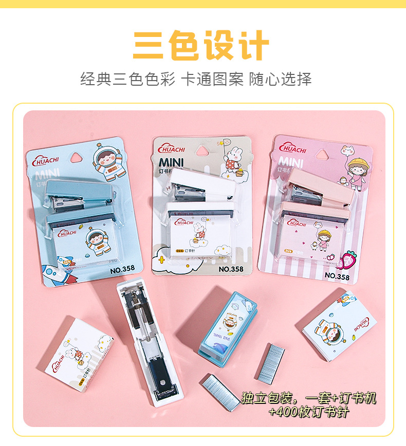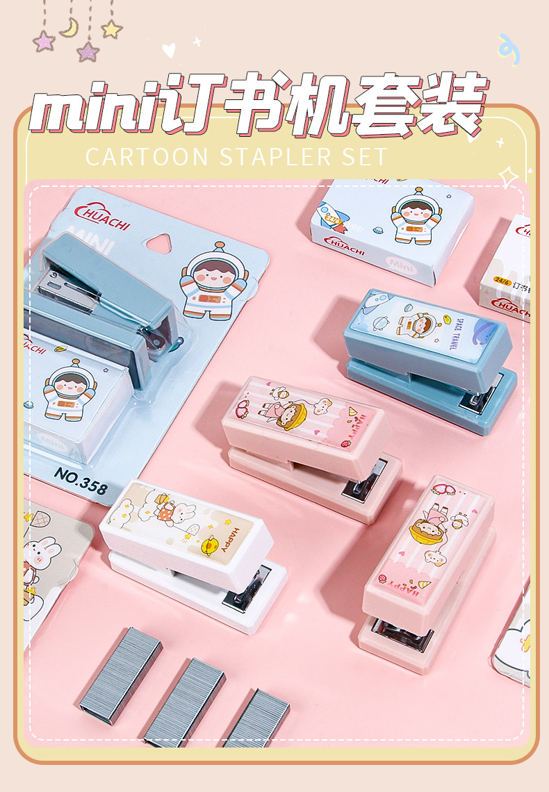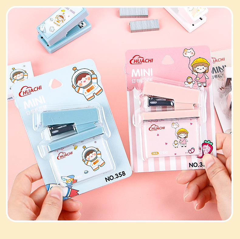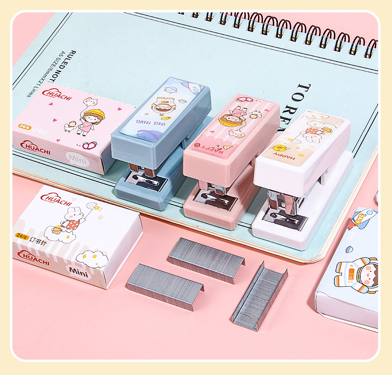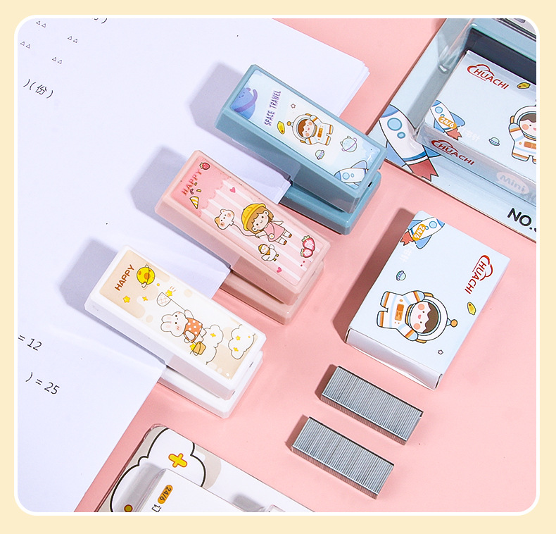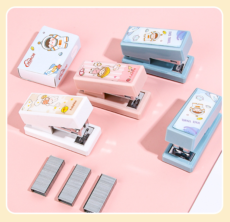 휴대용 귀여운 만화 미니 스몰 사이즈 스테이플러 창조적 인 학생 사무실 작은 스테이플러 문구 용품