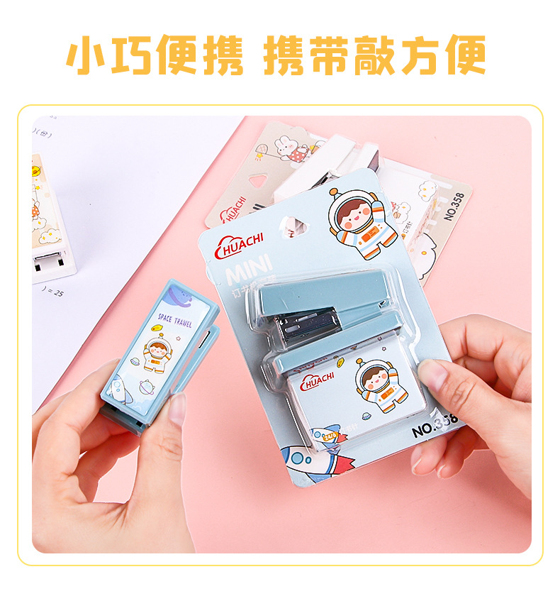 휴대용 귀여운 만화 미니 스몰 사이즈 스테이플러 창조적 인 학생 사무실 작은 스테이플러 문구 용품스토어 가기