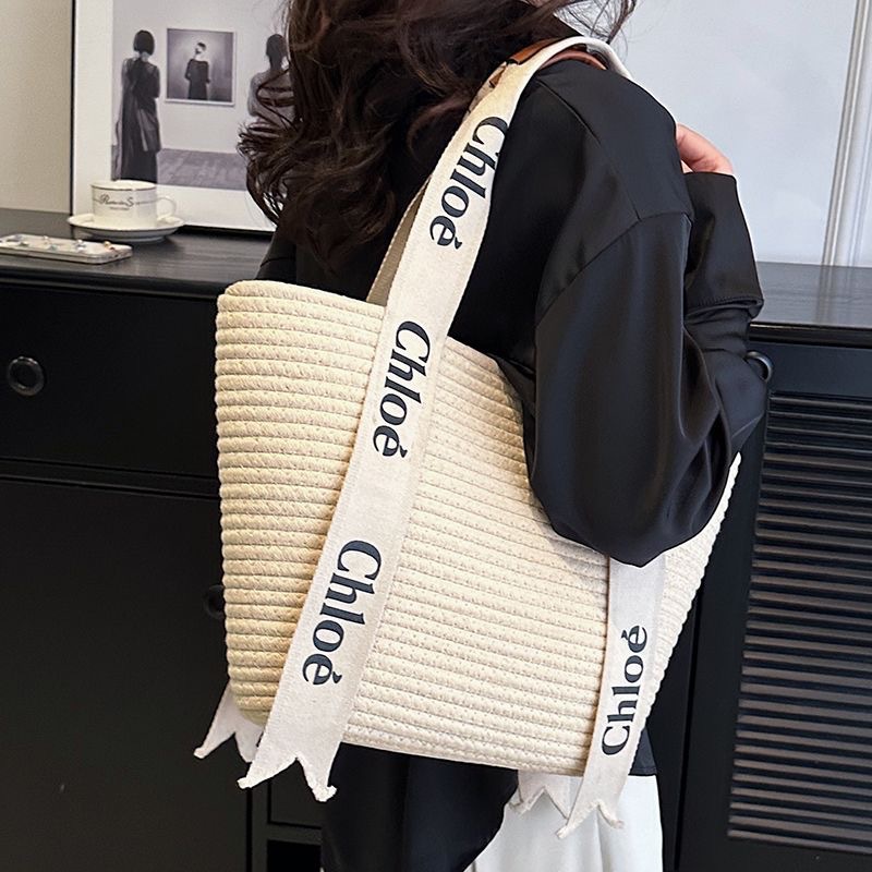 도매 휴일 로프 토트 백 2025 새로운 나가는 대용량 캐주얼 짠 핸드백 어깨 가방 여성스토어 가기