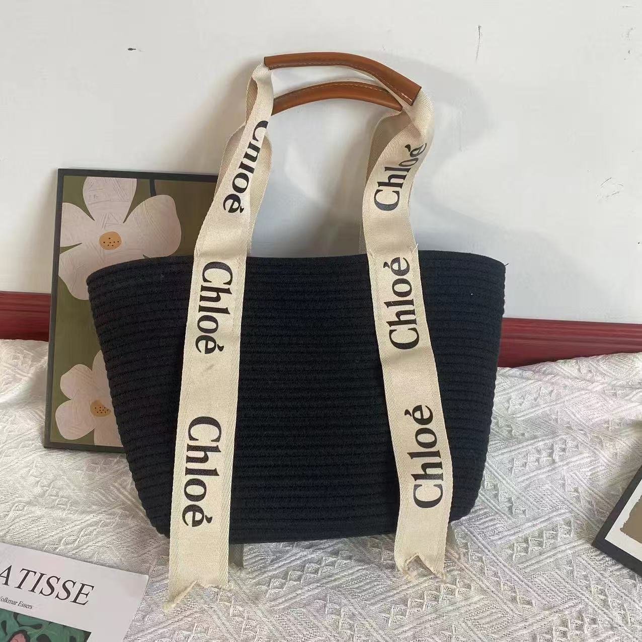 도매 휴일 로프 토트 백 2025 새로운 나가는 대용량 캐주얼 짠 핸드백 어깨 가방 여성