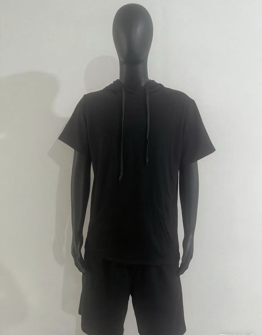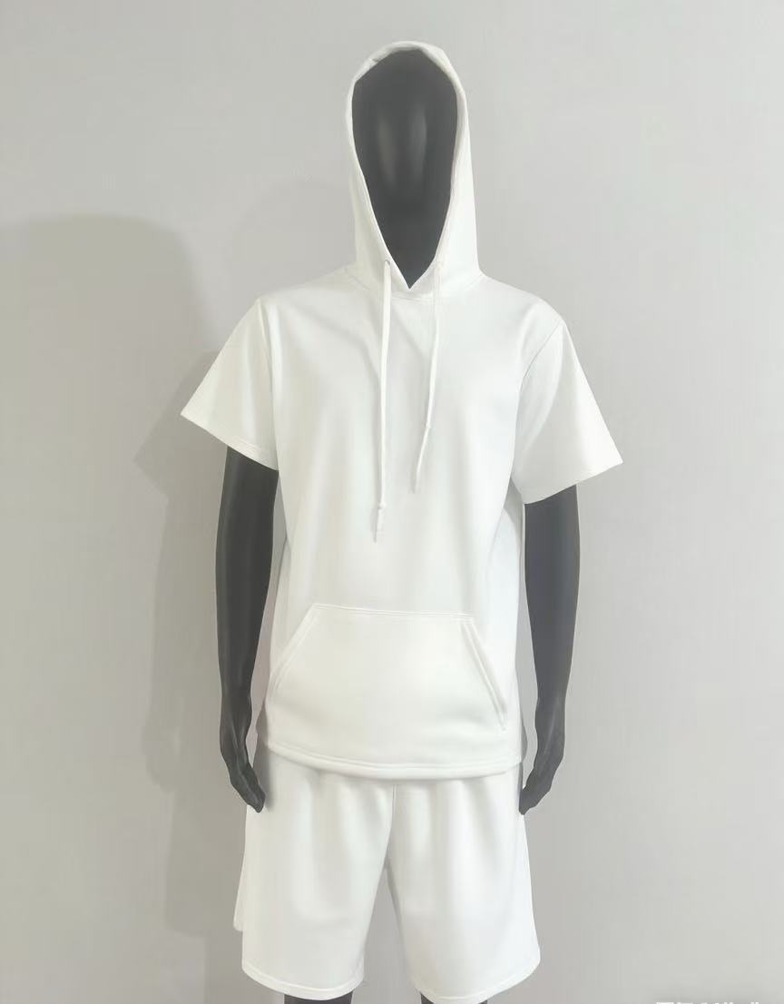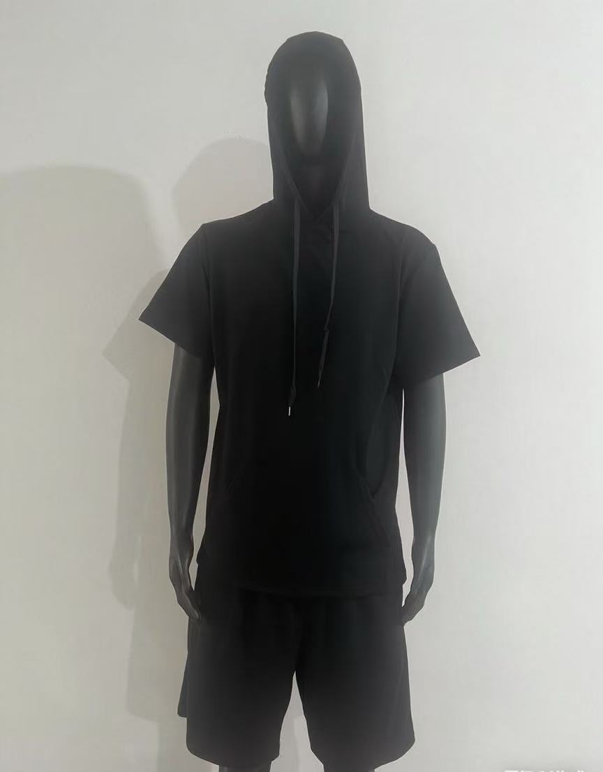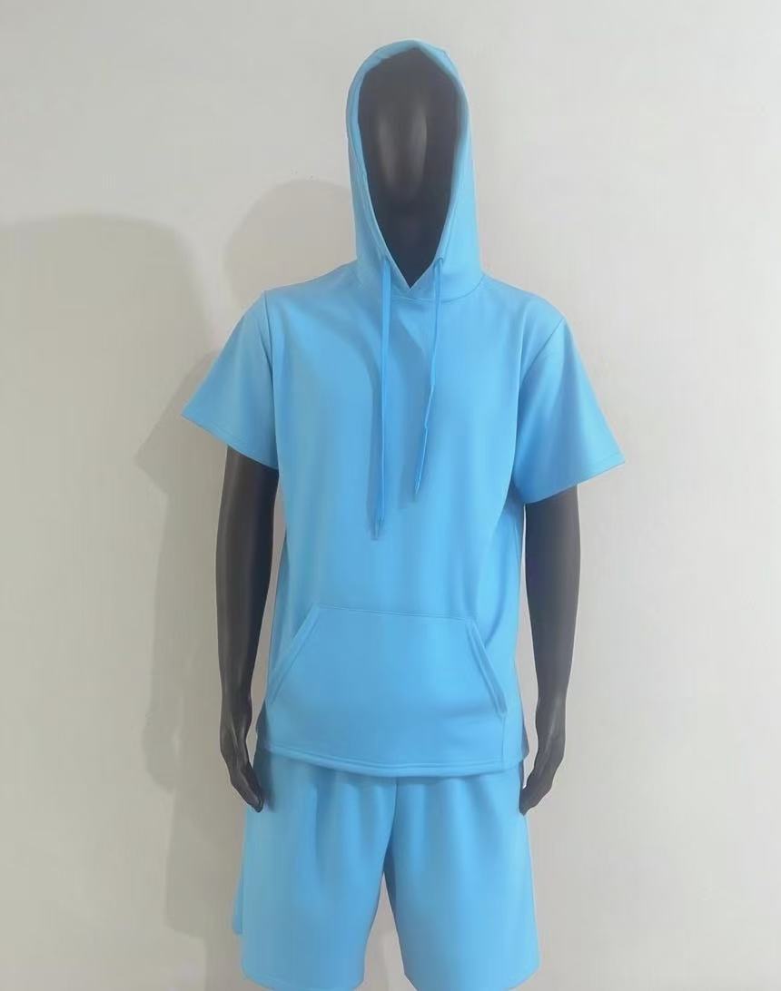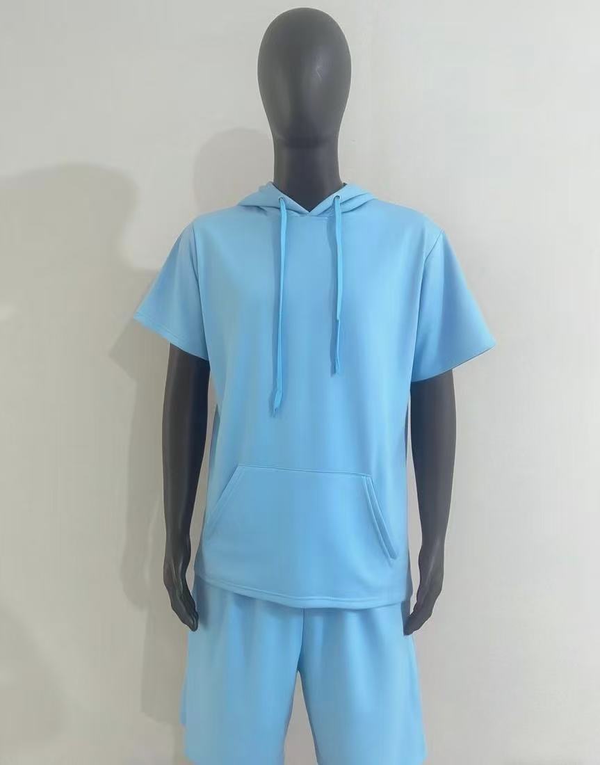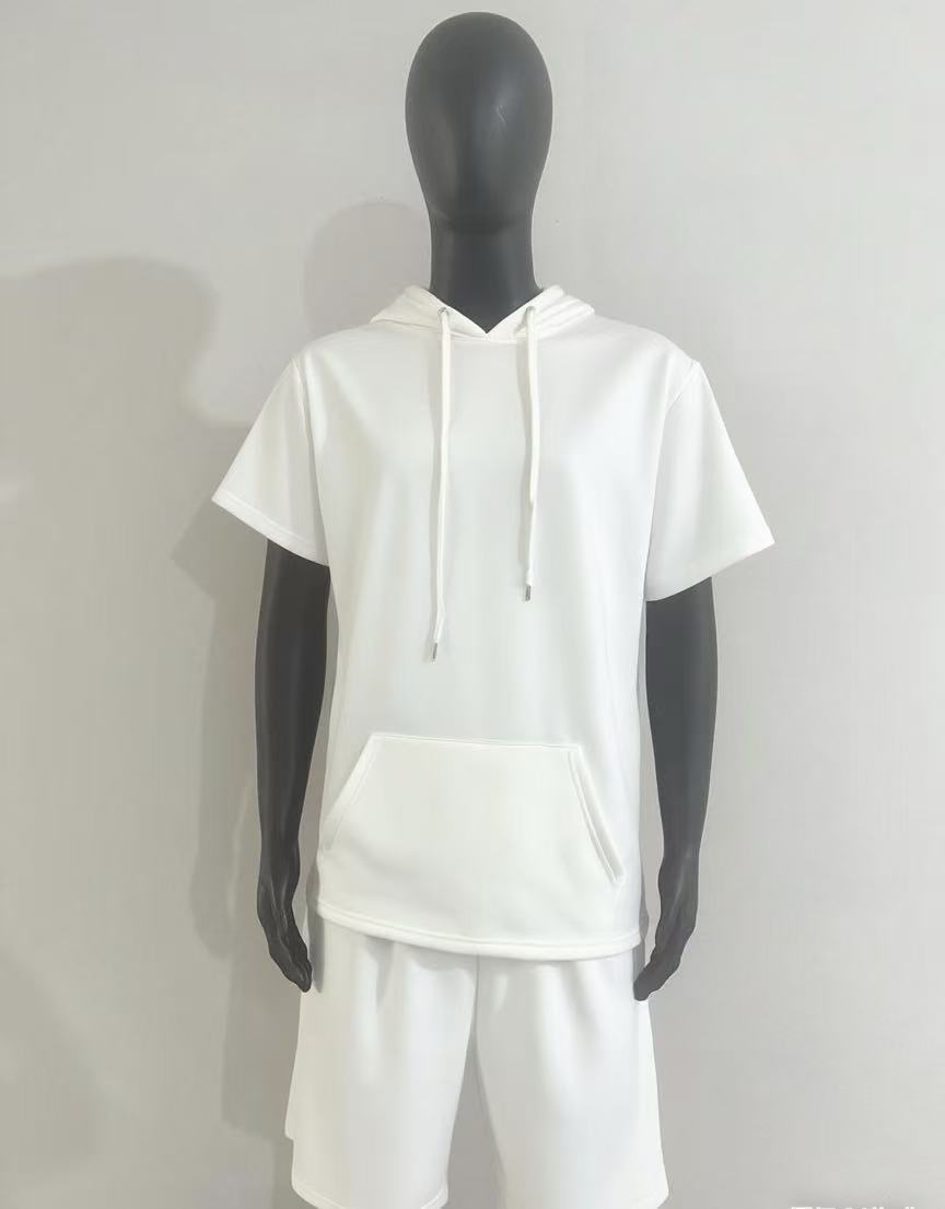 2024 국경 남성 여름 새로운 후드 스포츠 반팔 티셔츠 느슨한 플러스 사이즈 스트레이트 캐주얼 반바지 세트
