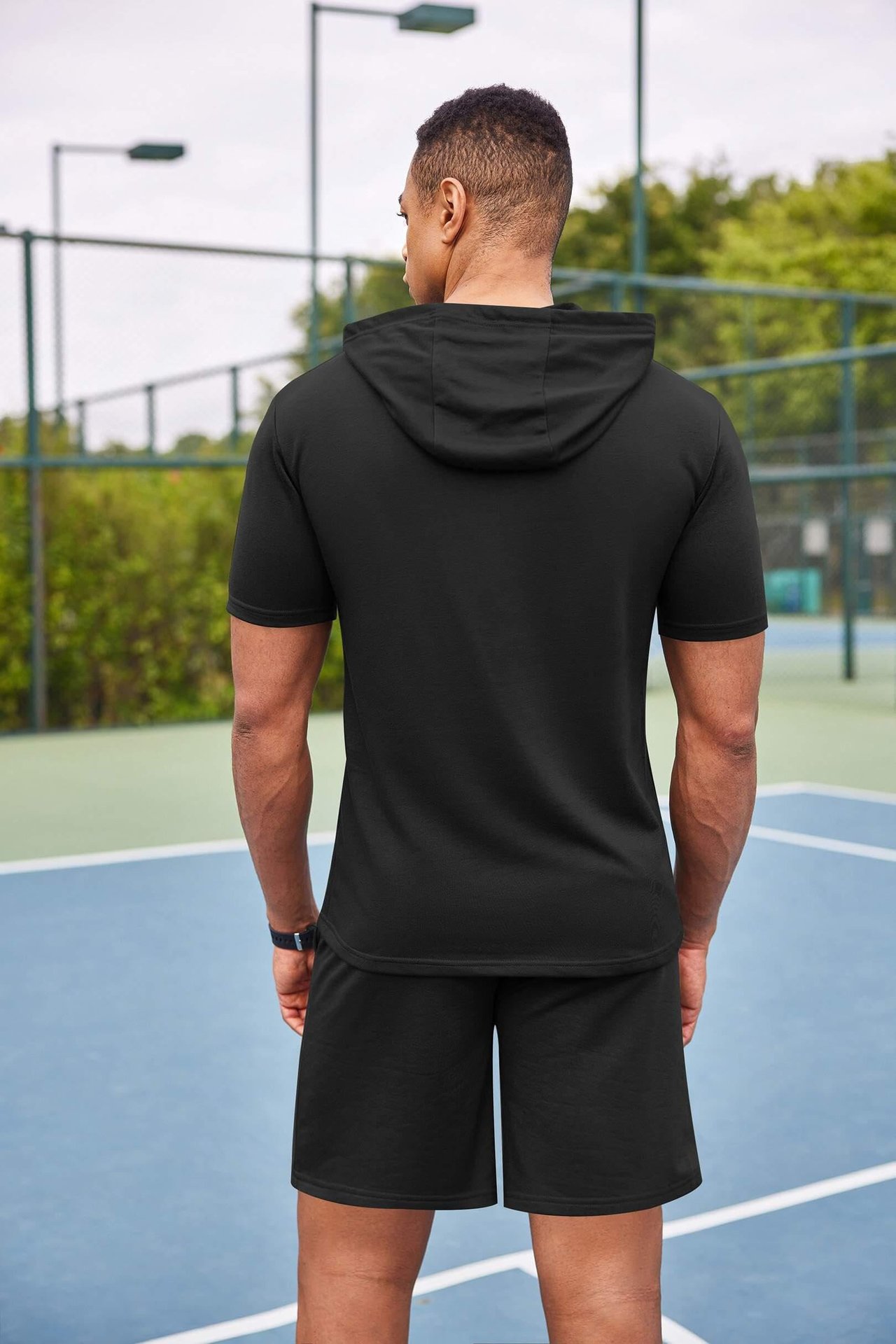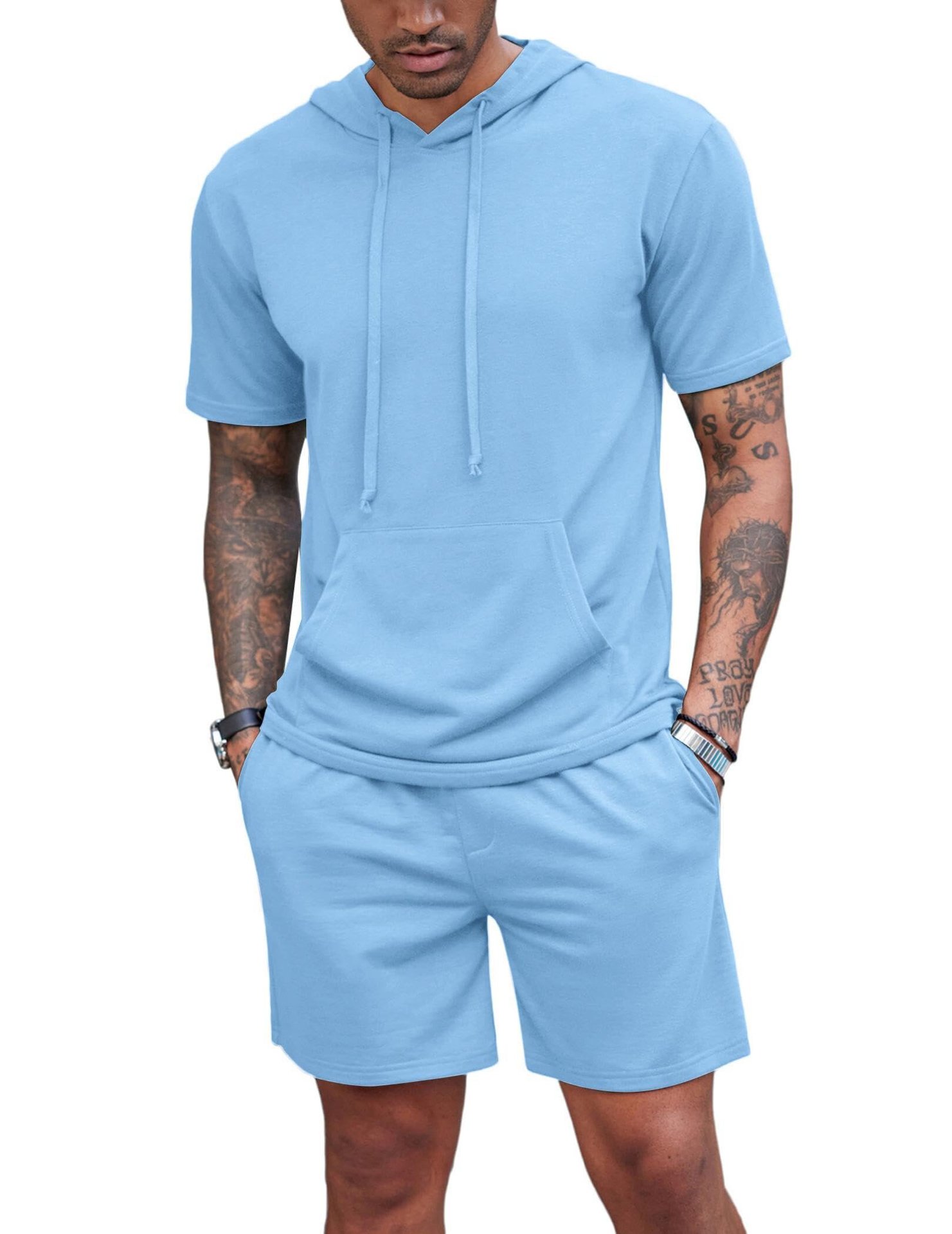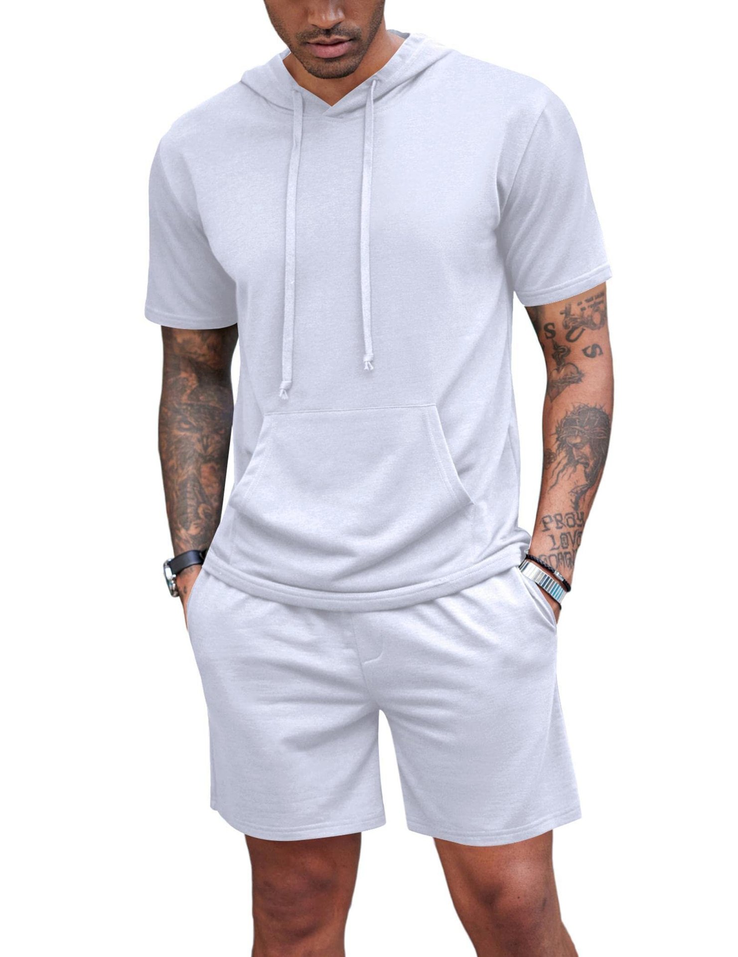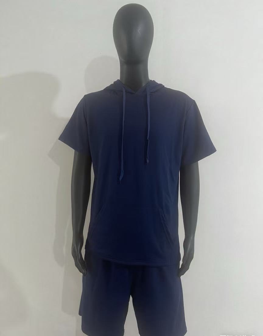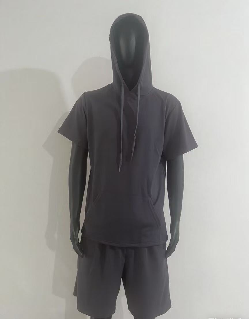 2024 국경 남성 여름 새로운 후드 스포츠 반팔 티셔츠 느슨한 플러스 사이즈 스트레이트 캐주얼 반바지 세트