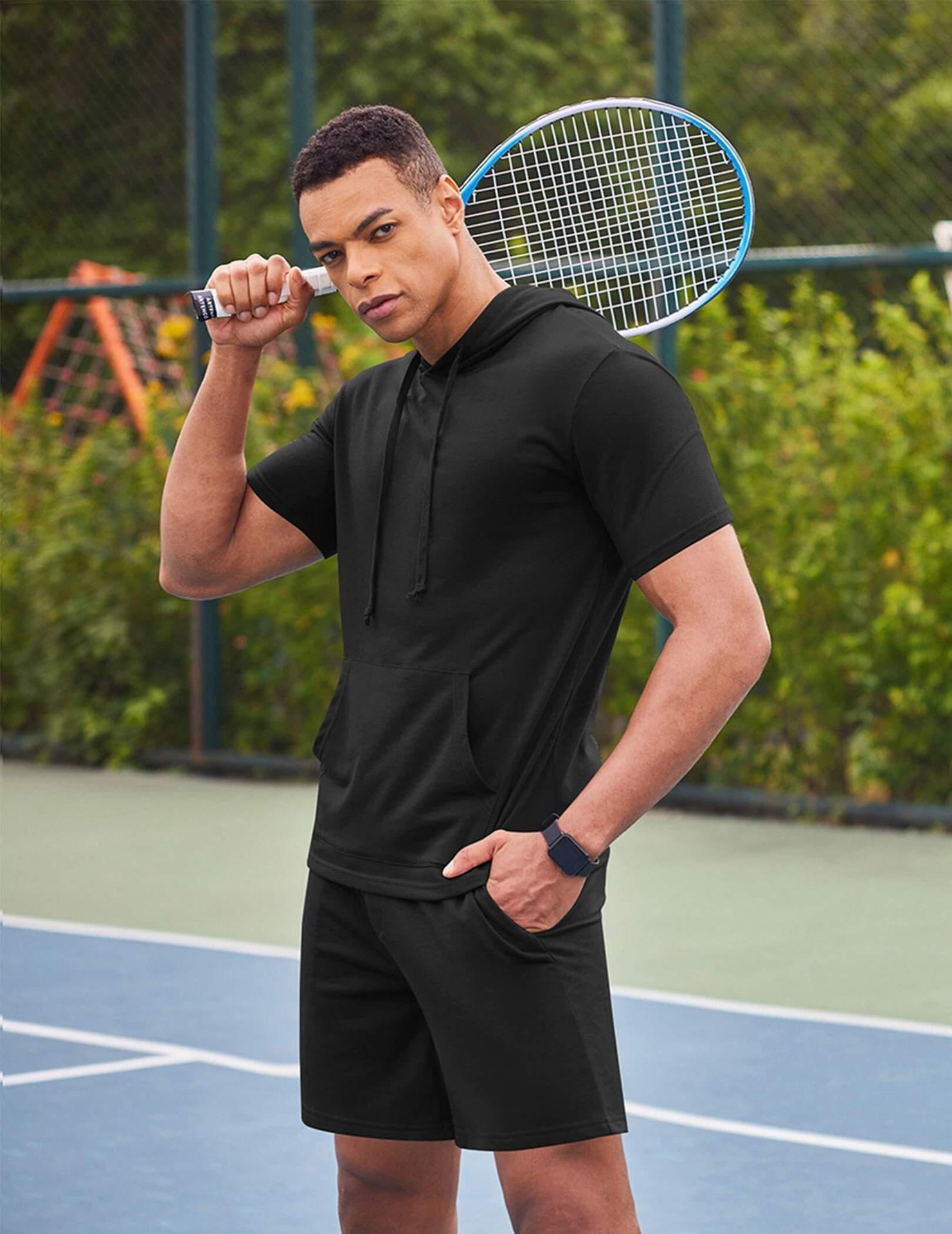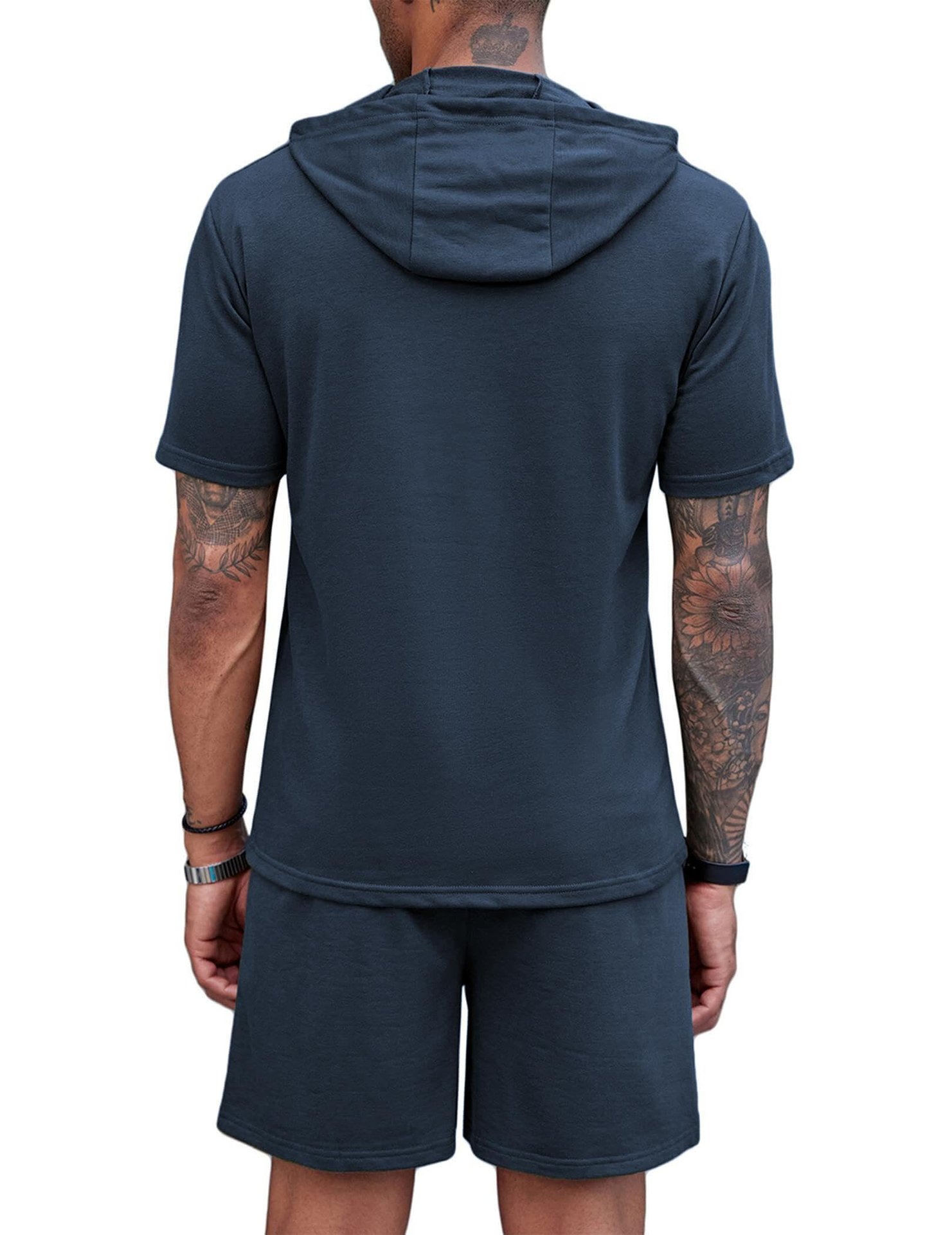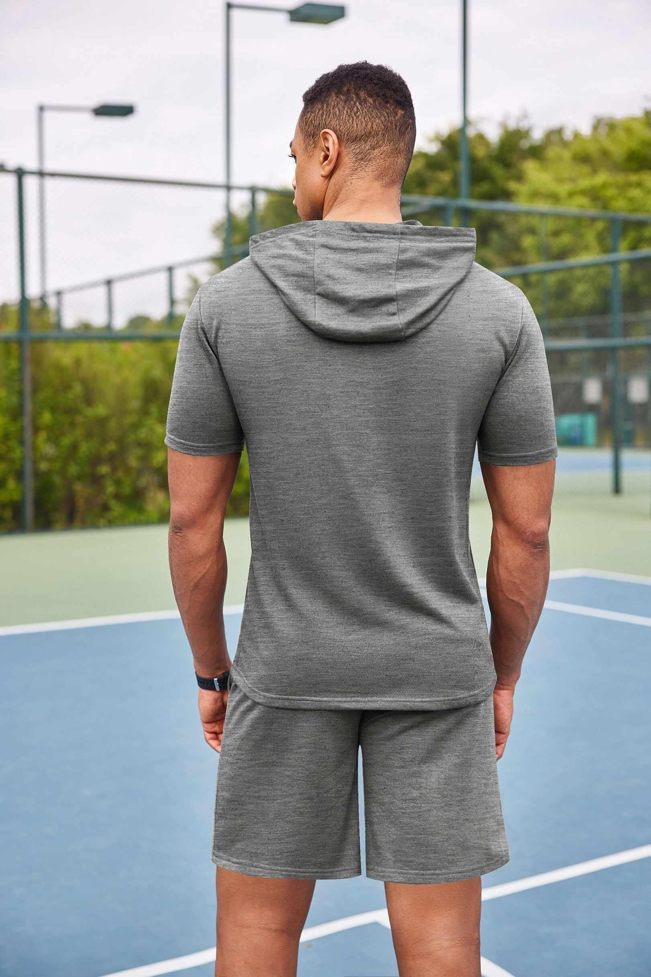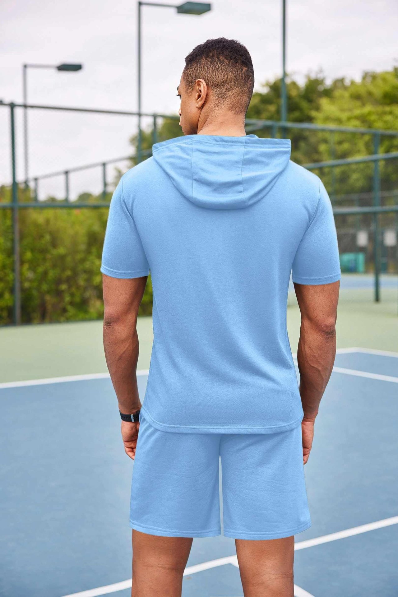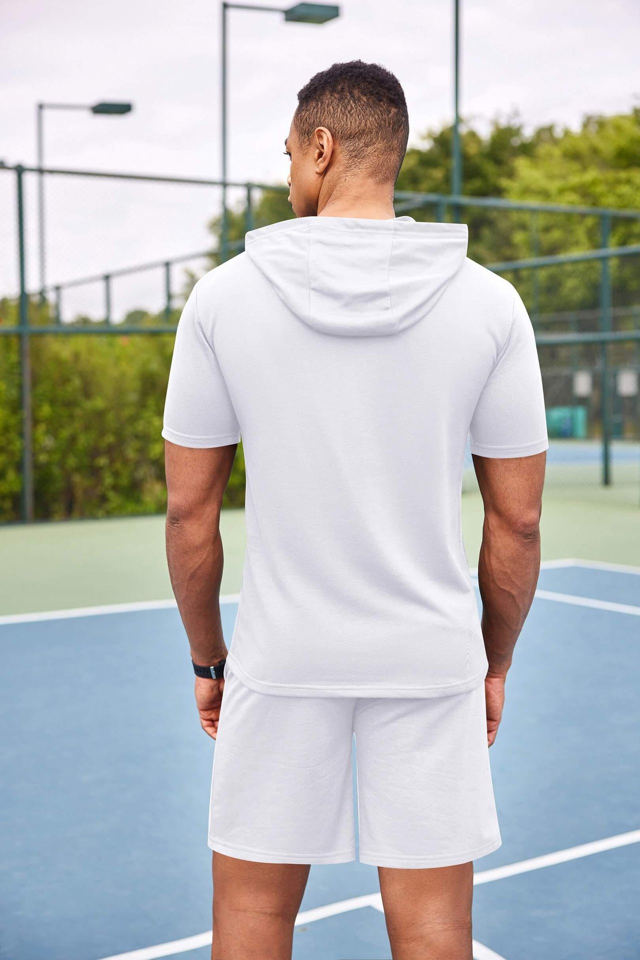 2024 국경 남성 여름 새로운 후드 스포츠 반팔 티셔츠 느슨한 플러스 사이즈 스트레이트 캐주얼 반바지 세트