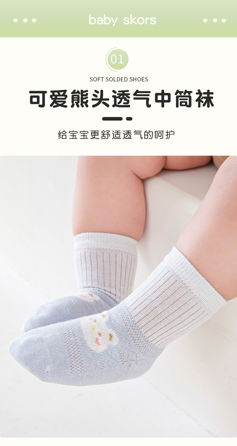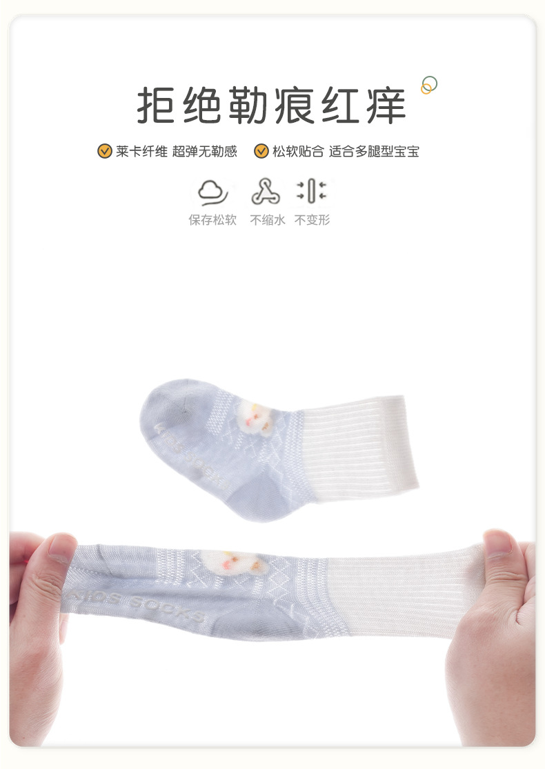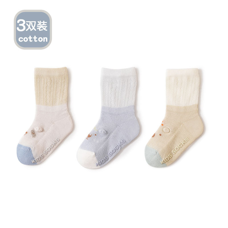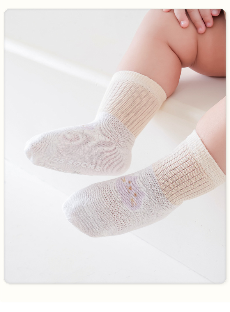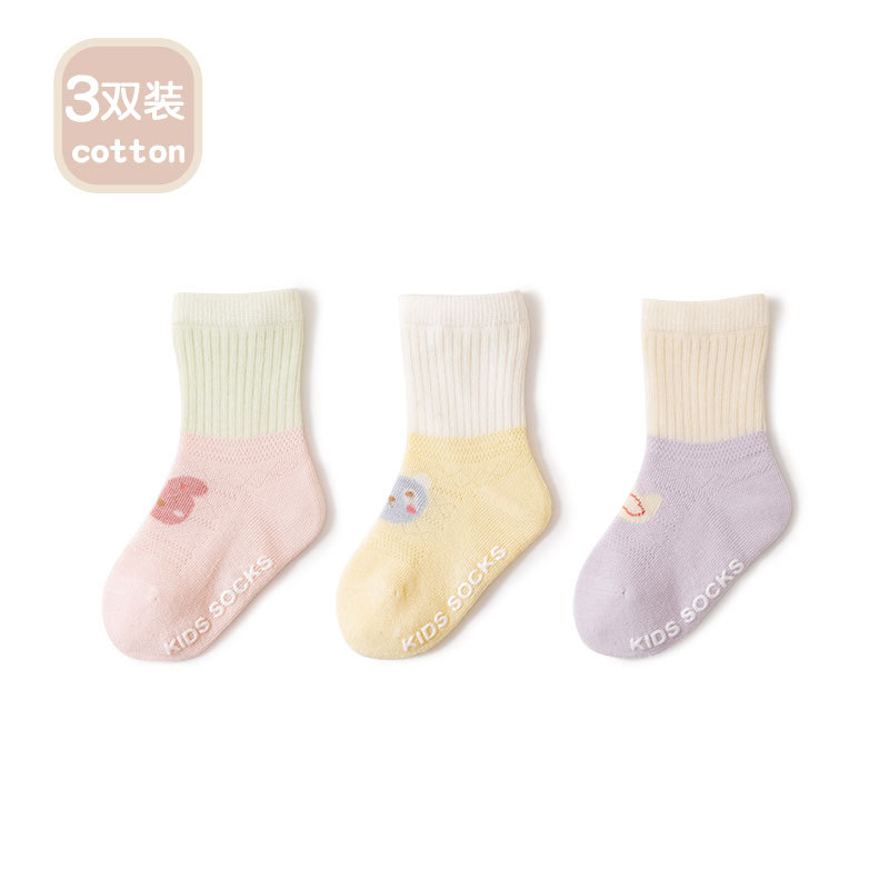 Liu Chengxing 봄/여름 얇은 아기 유아 양말 만화 컬러 매칭 통기성 메쉬 유아 중반 송아지 미끄럼 방지 바닥 양말스토어 가기