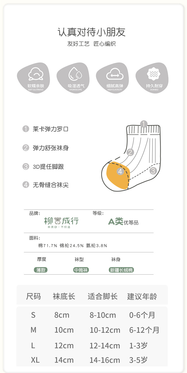 • S 크기 양말 바닥 길이 8cm (권장 0-6 개월)