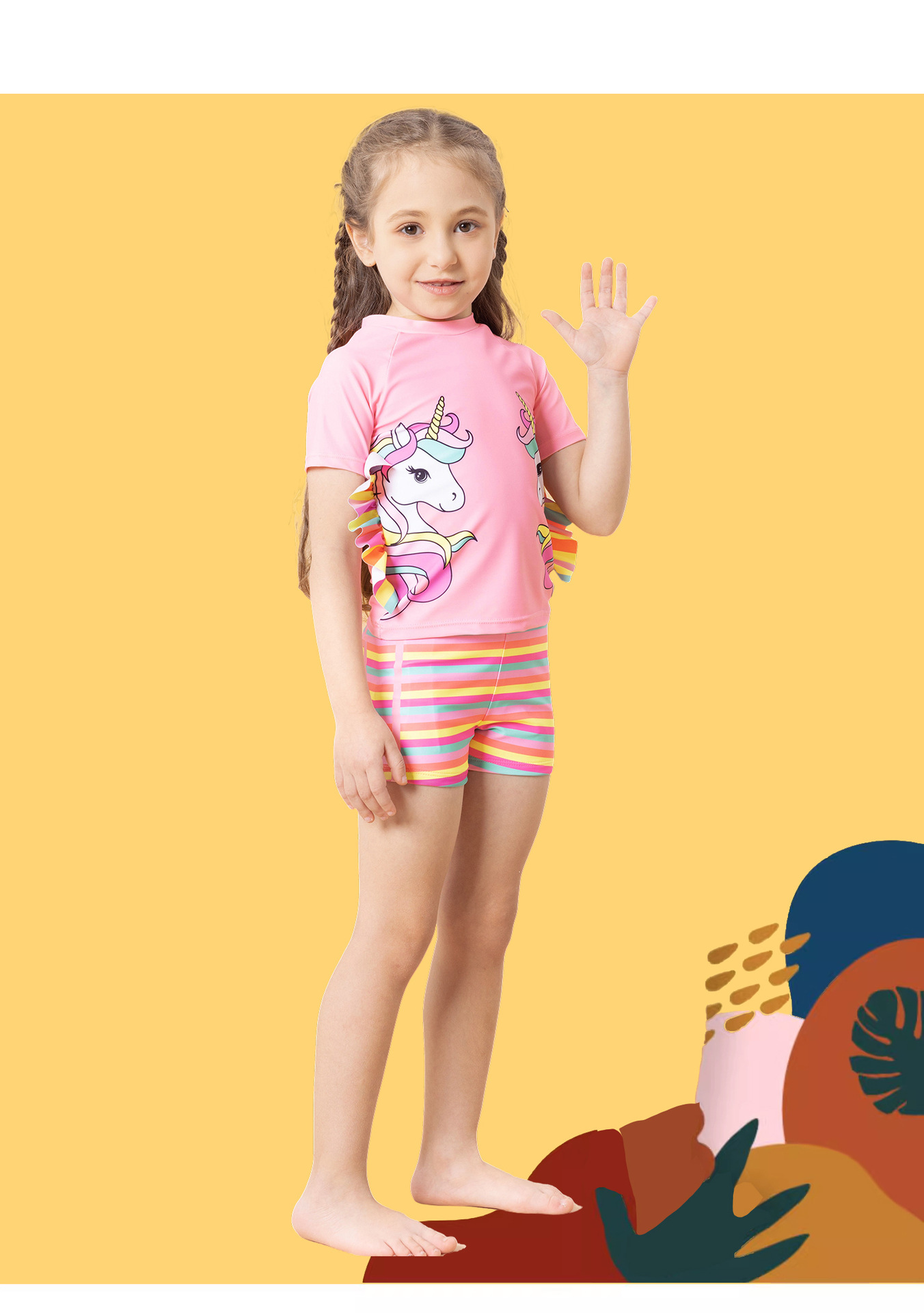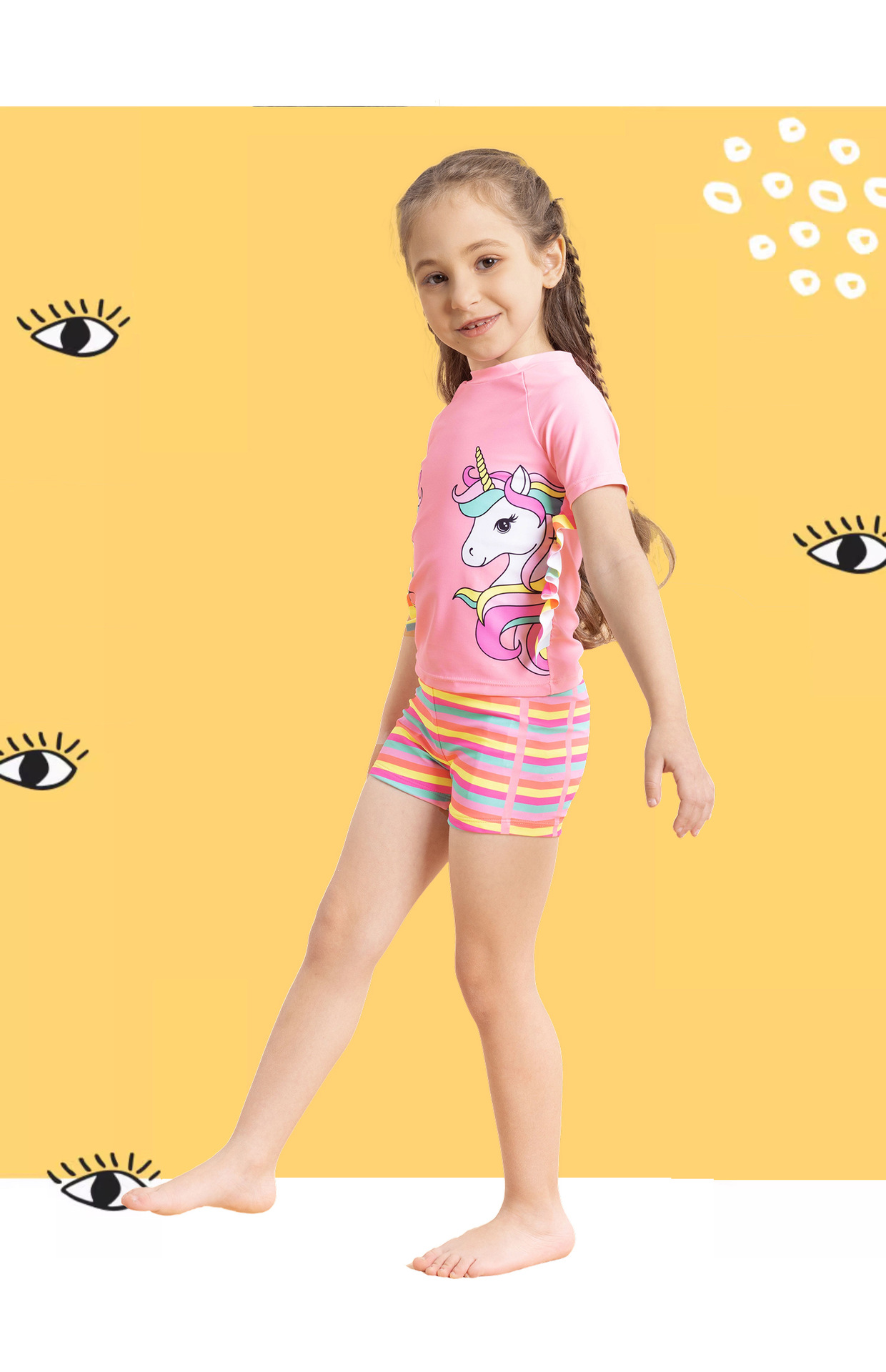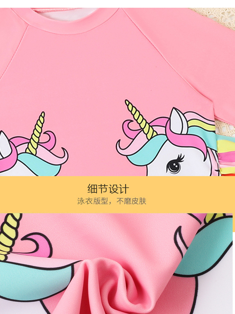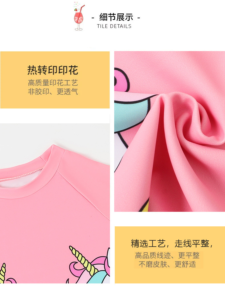 어린이 수영복 여아용 분리형 수영복 2025 반팔 유니콘 무지개 줄무늬 반바지 프릴 여아 수영복
