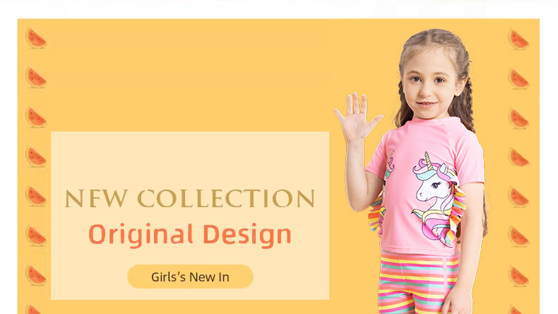 어린이 수영복 여아용 분리형 수영복 2025 반팔 유니콘 무지개 줄무늬 반바지 프릴 여아 수영복스토어 가기