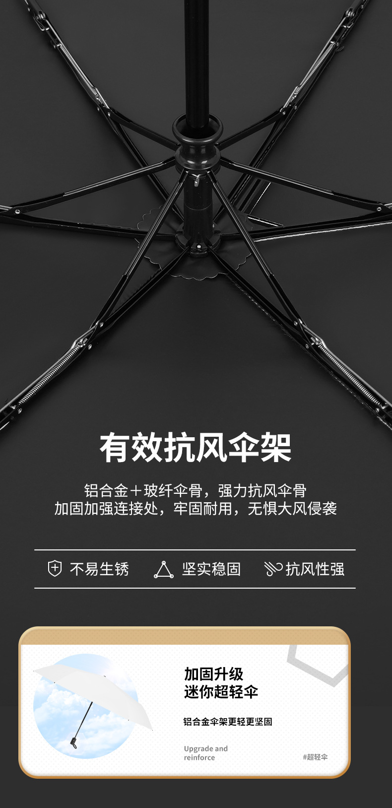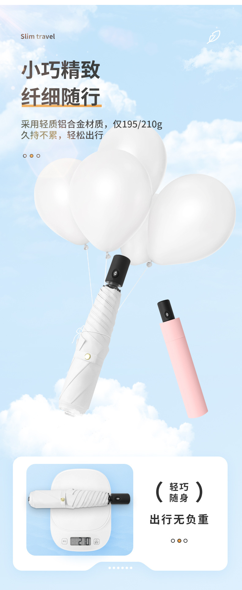 초경량 자동 우산, 가볍고 70% off 방향으로 사용 가능, 비와 햇빛 모두에 적합, 블랙 코팅으로 자외선 차단, 높은 차양력, 방수 기능