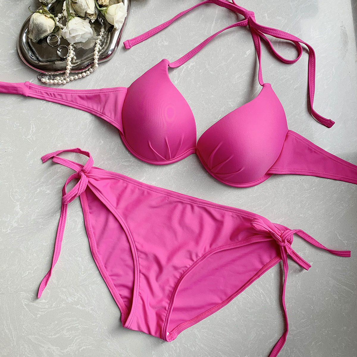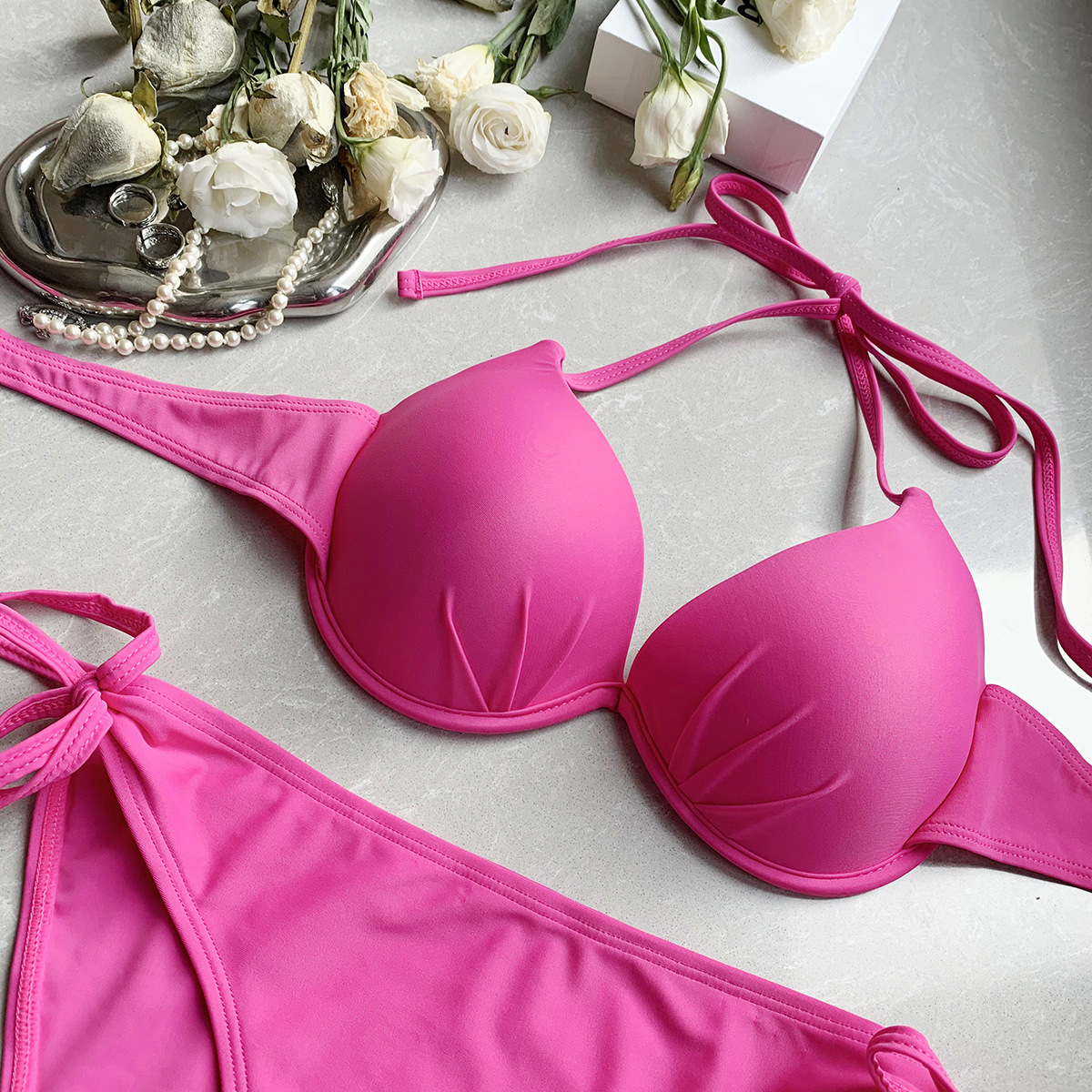 일본과 한국의 INS 블로거들이 인기리에 판매하는 2026년형 섹시한 백리스 스틸토우 푸쉬업 비키니 수영복