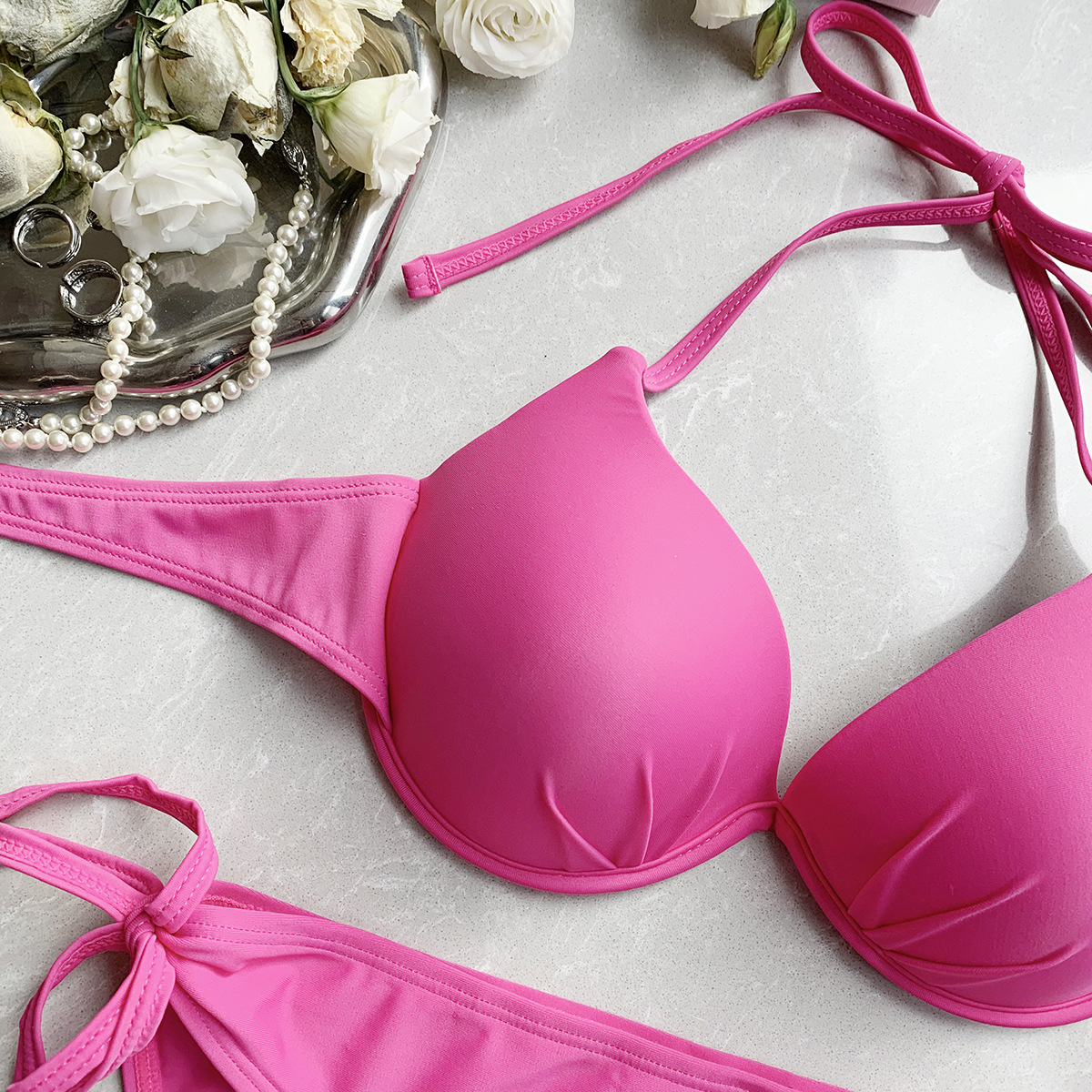 일본과 한국의 INS 블로거들이 인기리에 판매하는 2026년형 섹시한 백리스 스틸토우 푸쉬업 비키니 수영복스토어 가기