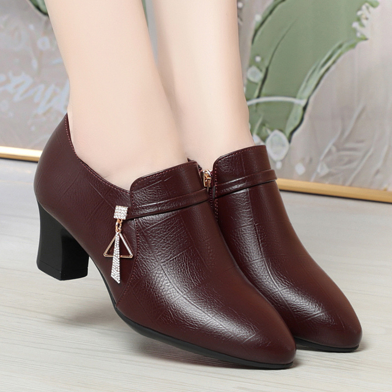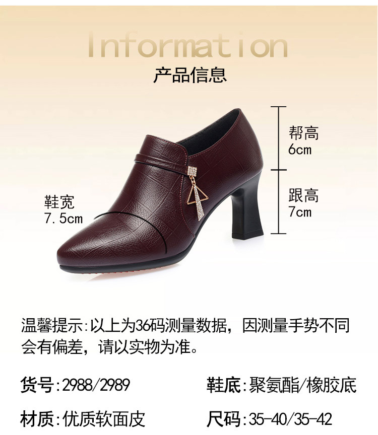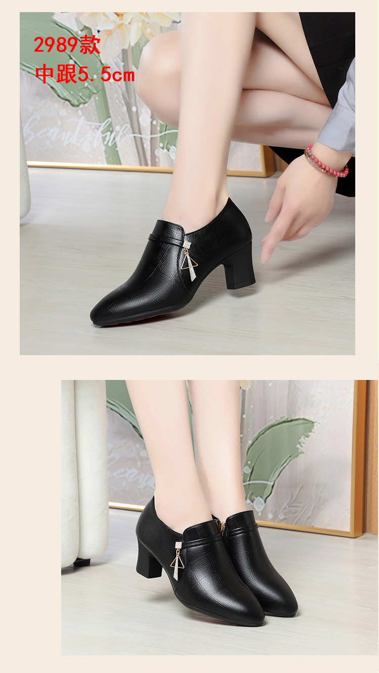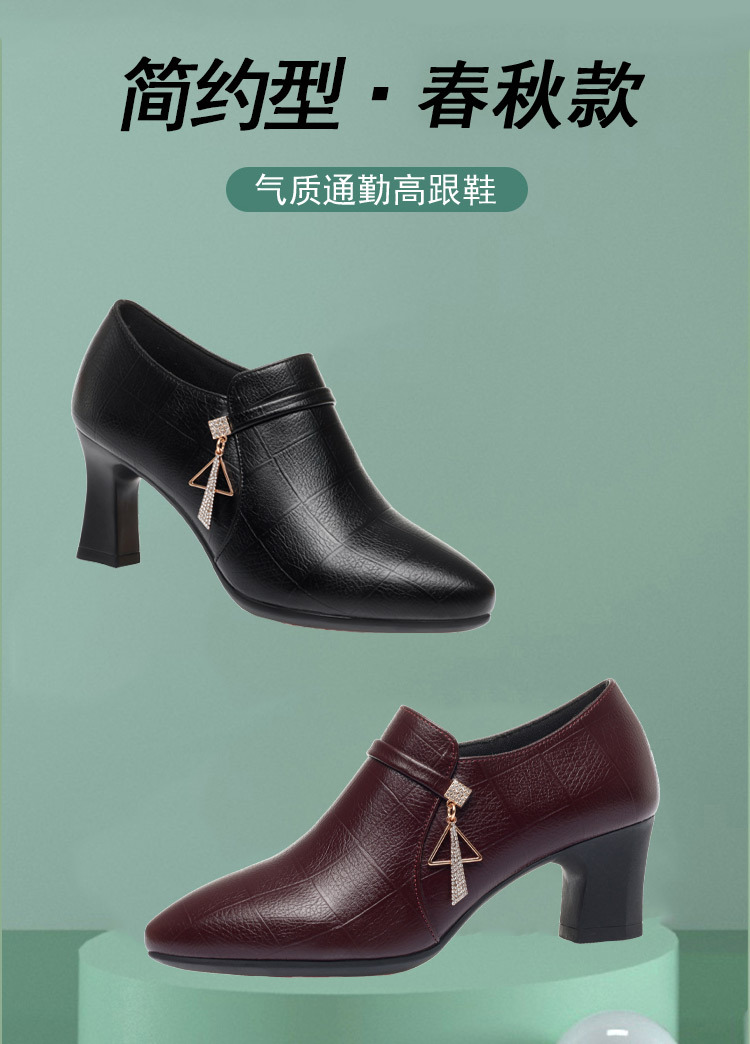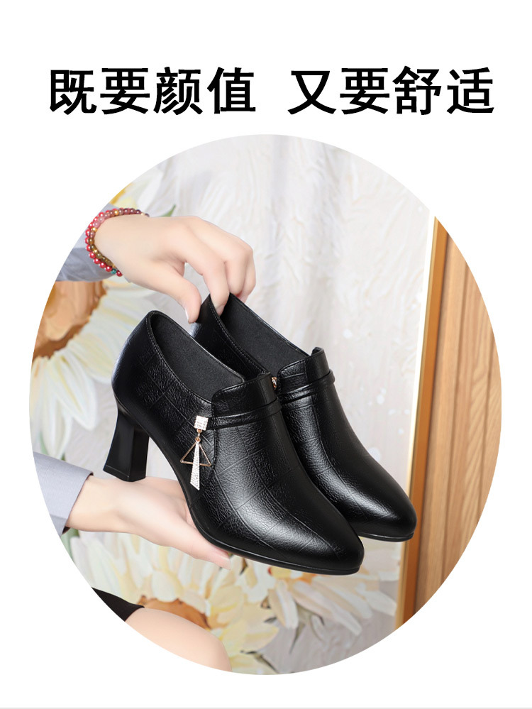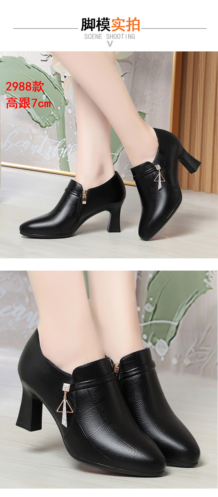 원피스 배달 봄과 가을 가죽 신발 2024 새로운 중년 여성 신발 부드러운 가죽 부드러운 바닥 하이힐 스커트 기질 싱글 신발스토어 가기