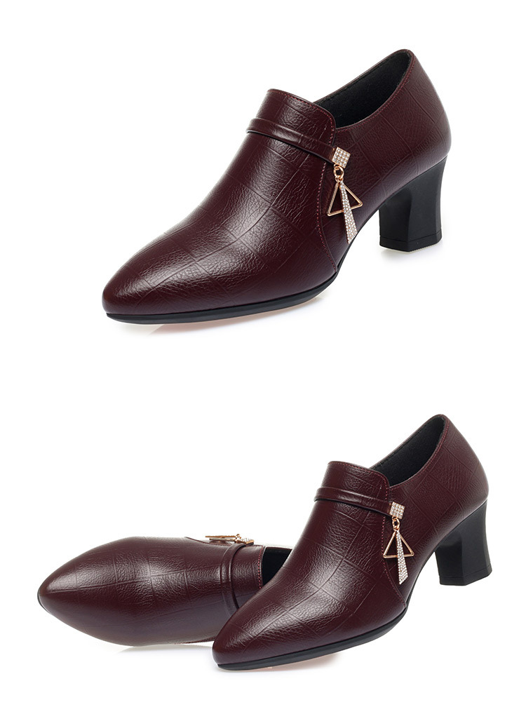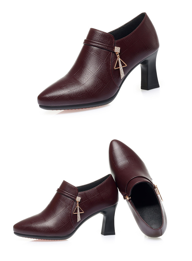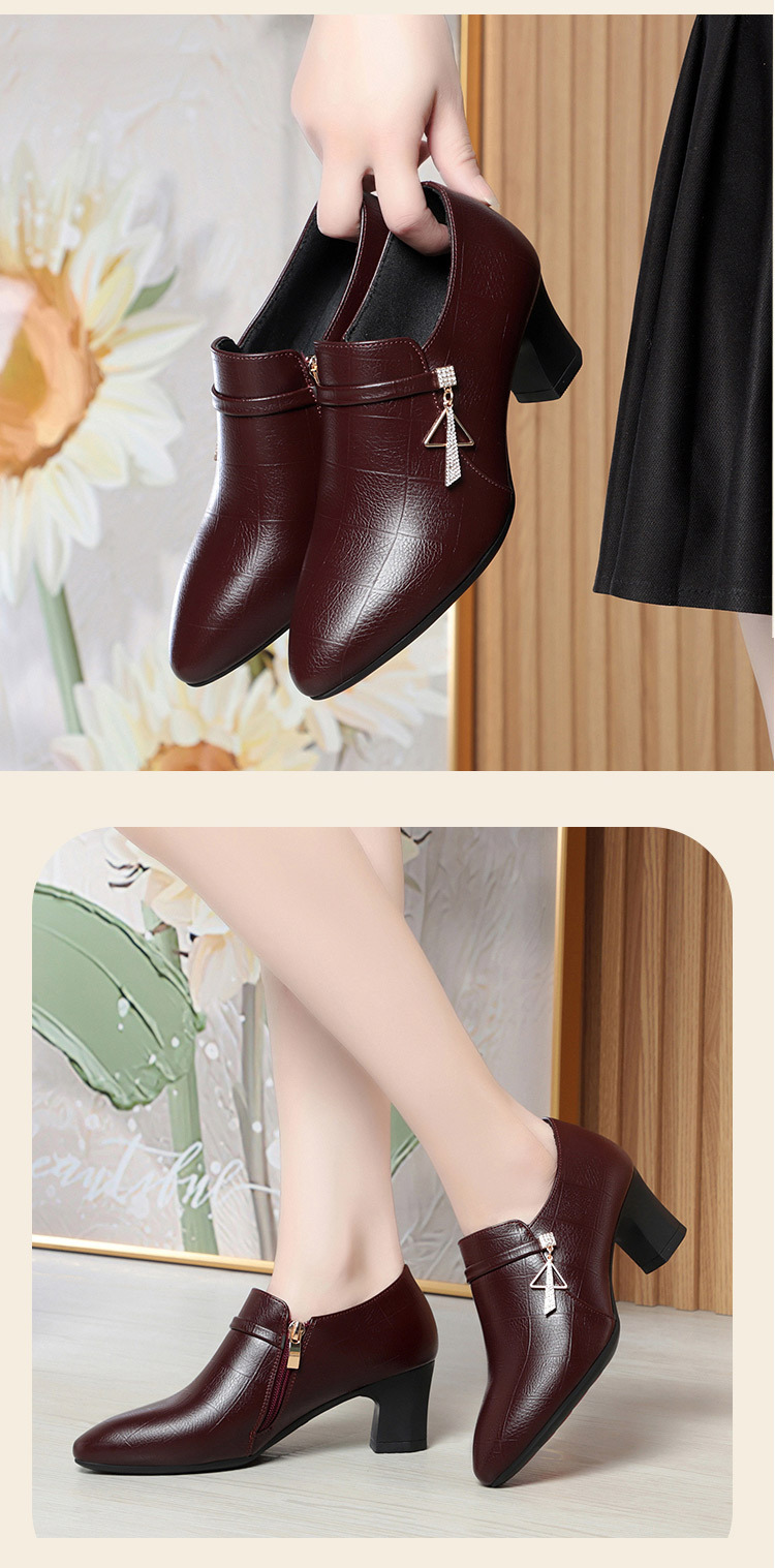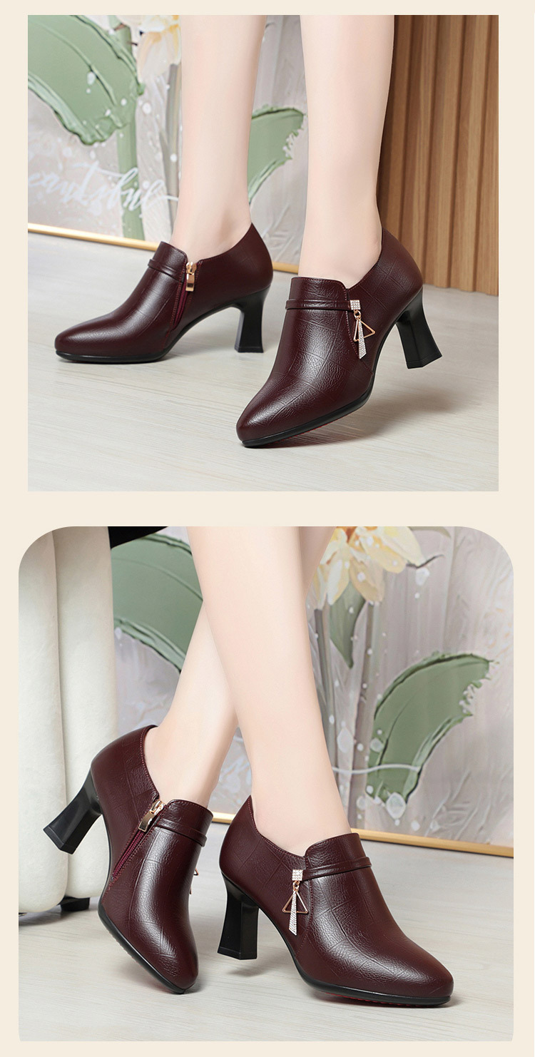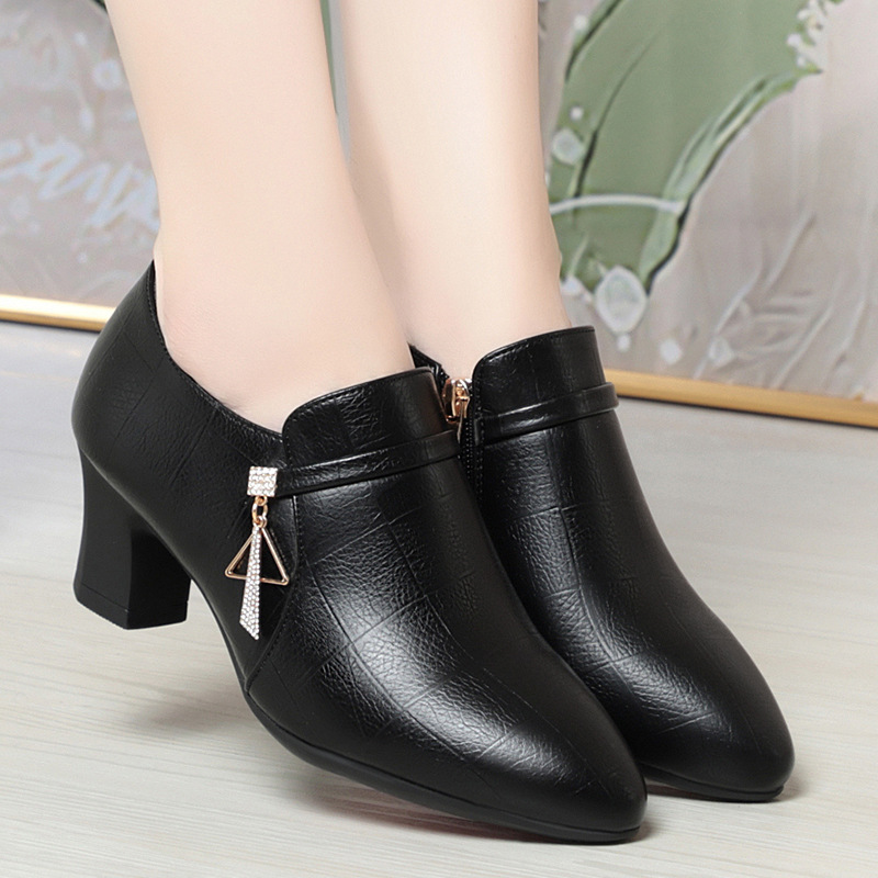 원피스 배달 봄과 가을 가죽 신발 2024 새로운 중년 여성 신발 부드러운 가죽 부드러운 바닥 하이힐 스커트 기질 싱글 신발스토어 가기