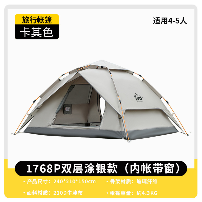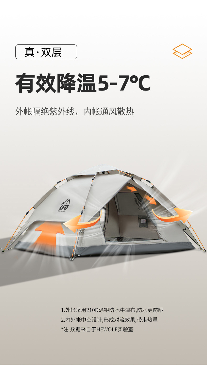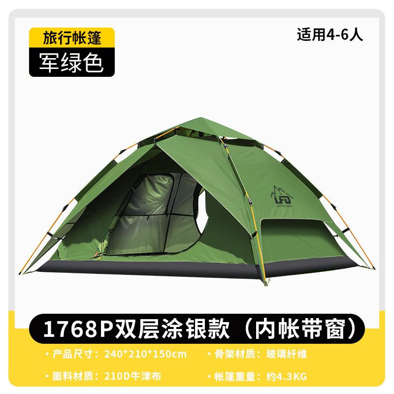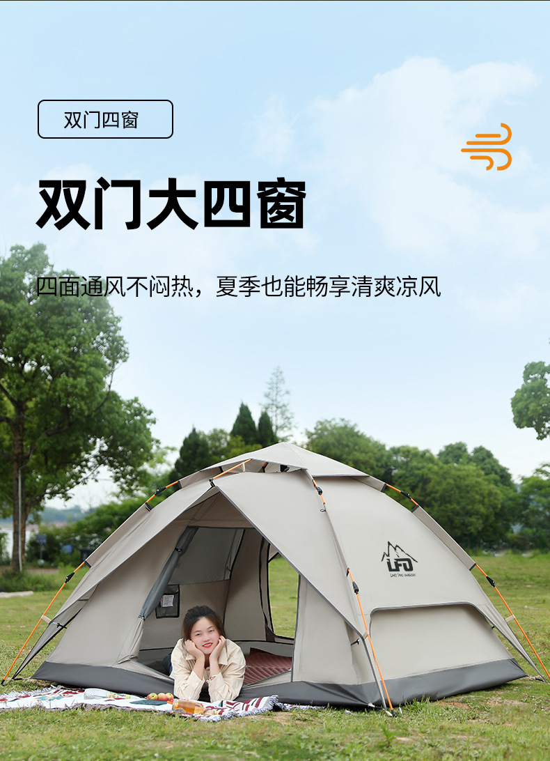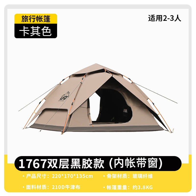 루팡 야외 이중층 캠핑 피크닉 등산 텐트, 자동 개방형 휴대용 방수 및 자외선 차단 캠핑 텐트