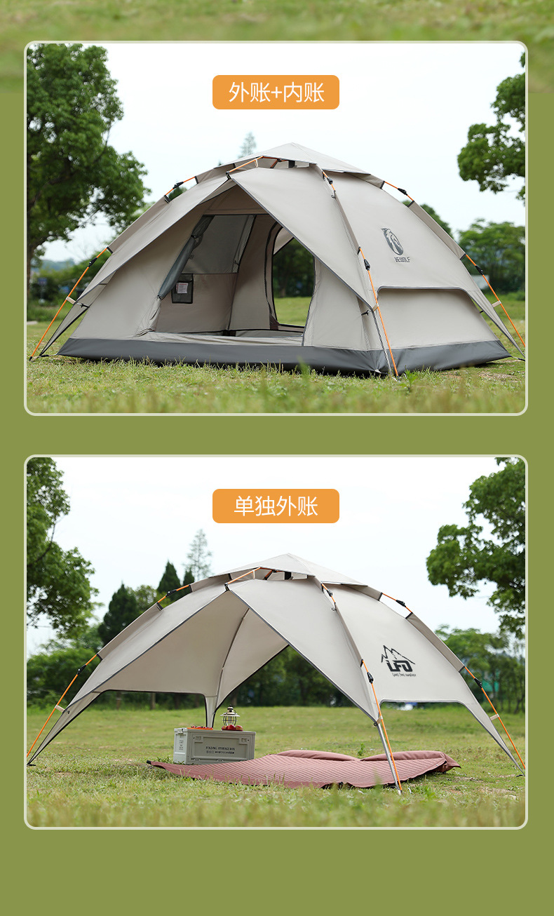 루팡 야외 이중층 캠핑 피크닉 등산 텐트, 자동 개방형 휴대용 방수 및 자외선 차단 캠핑 텐트스토어 가기
